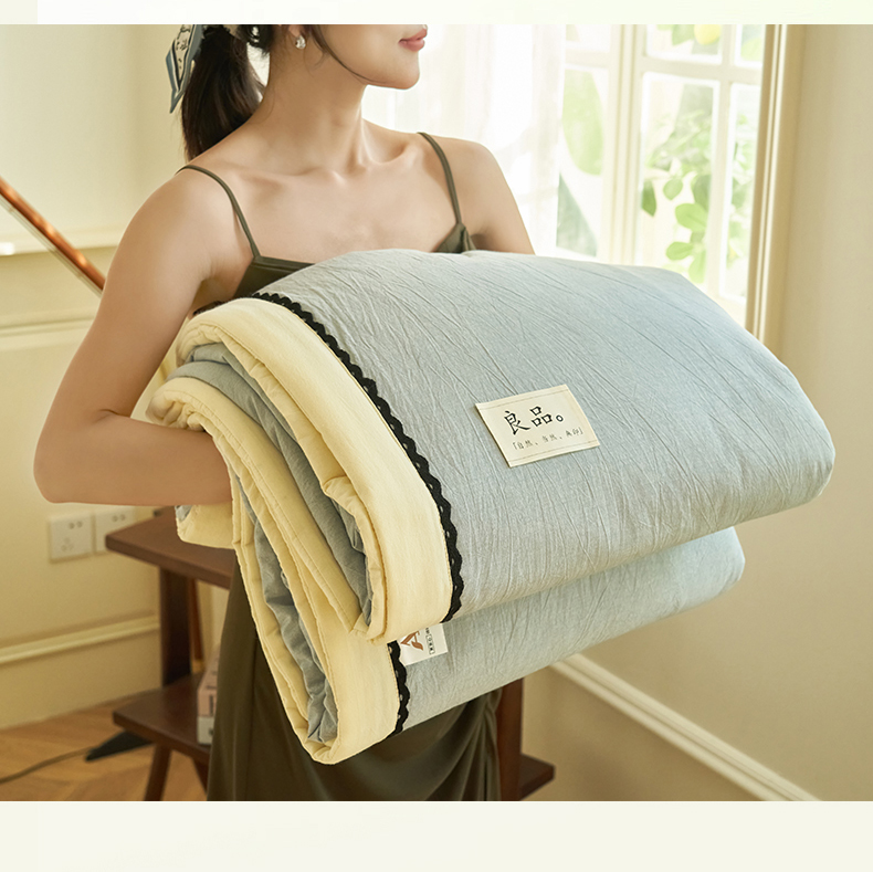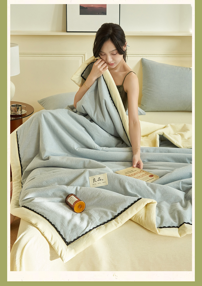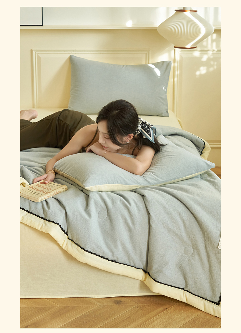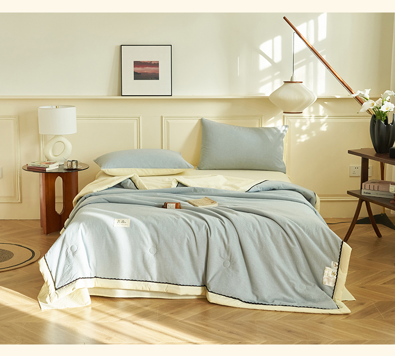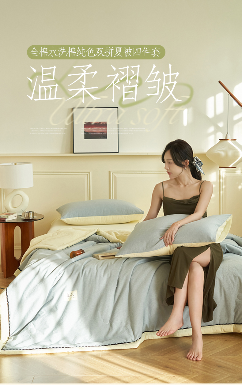 • 91家纺网 家纺一手货源 找家纺 (总)恒爱家纺 2026新款全棉纯棉纯色双拼夏被四件套夏凉被空调被,佛手黄,美人玉,抹茶绿,绅士灰,深情灰,香妃粉,象牙白,组合图仅供展示-不可下单