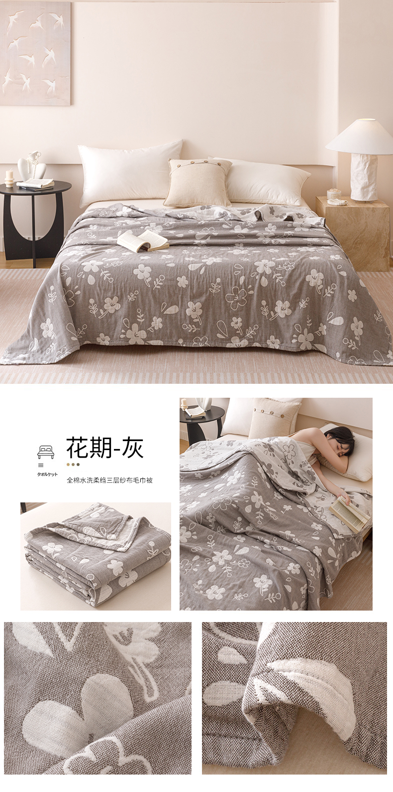 2026新款全棉纯棉水洗柔绉三层纱布毛巾被 组合图仅供展示