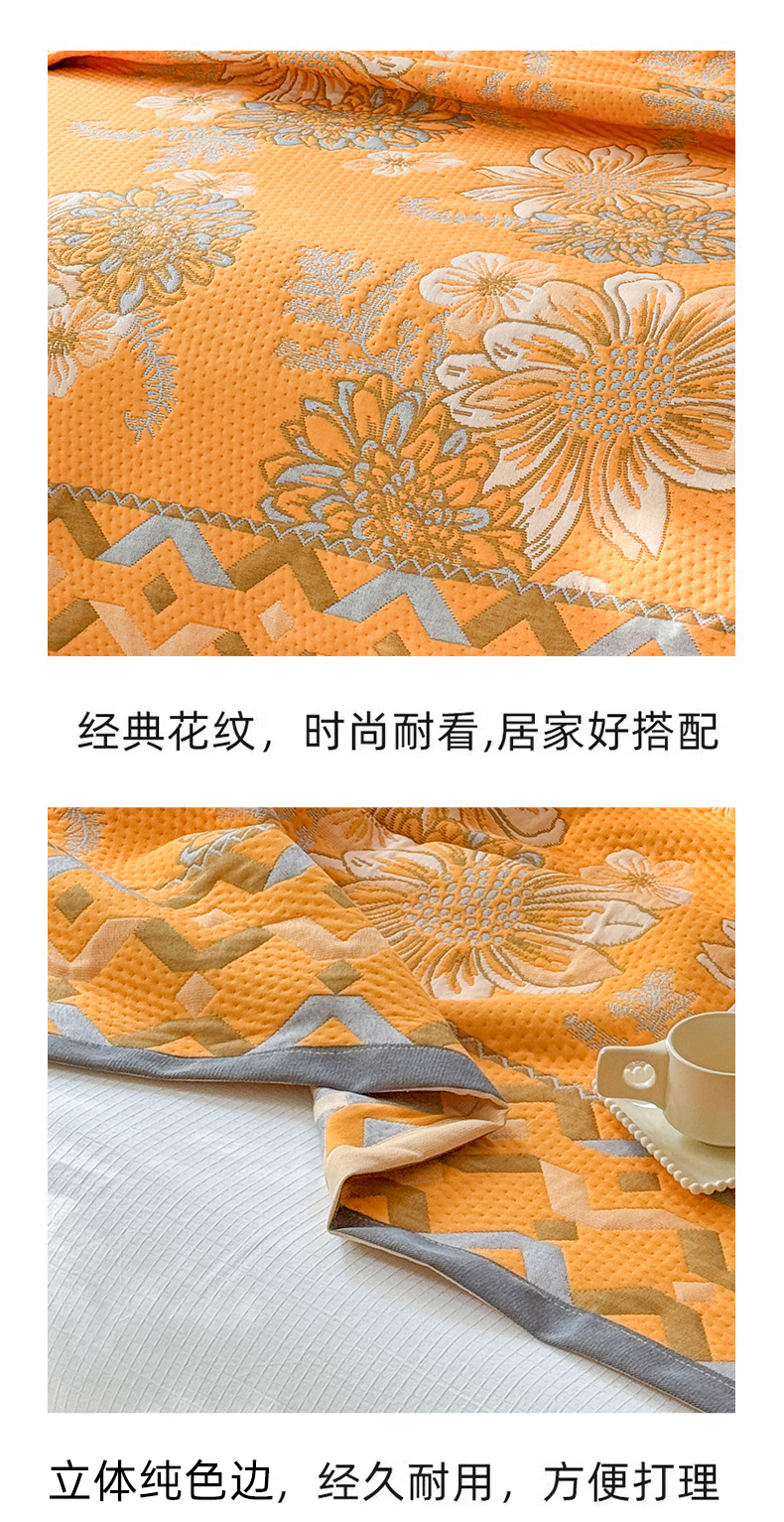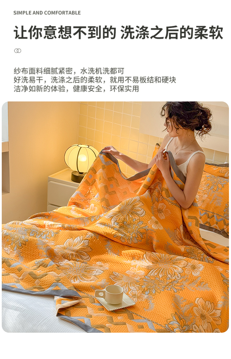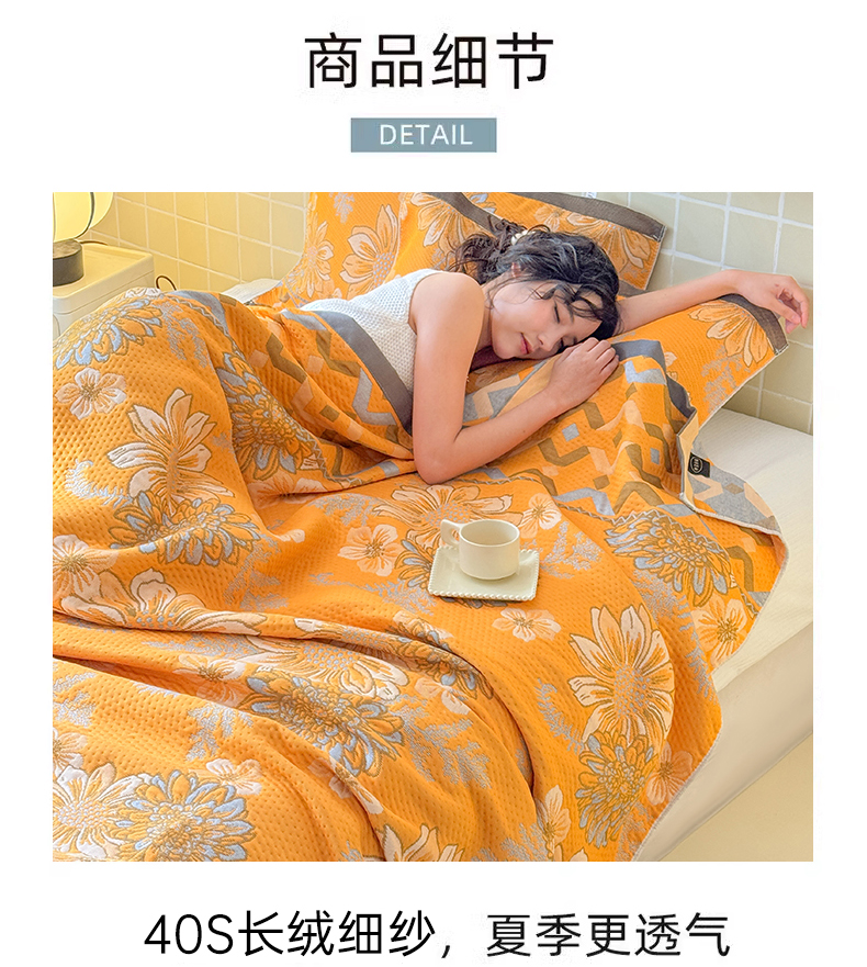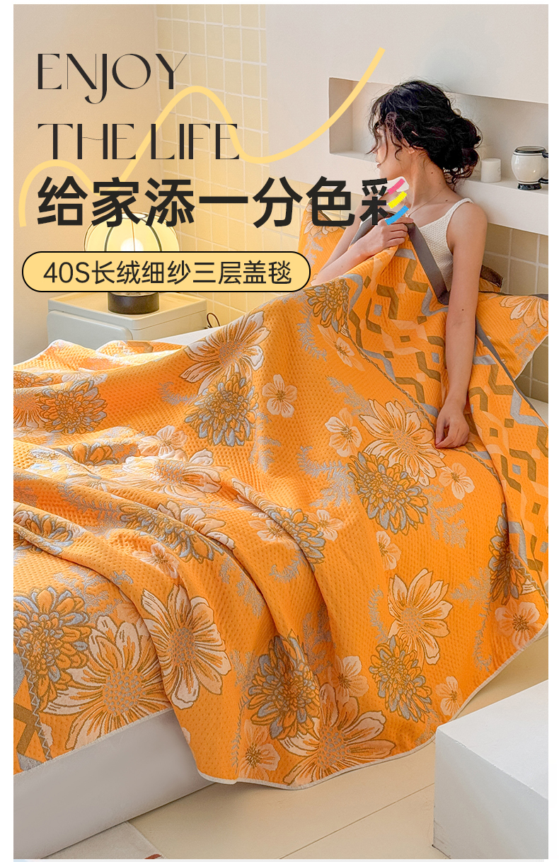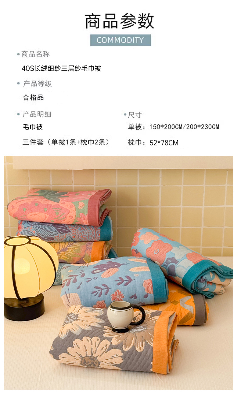 商品名称:朴尔家纺-毛巾被 2026新款彩棉云柔三层纱布毛巾被三件套盖毯 满庭芳华