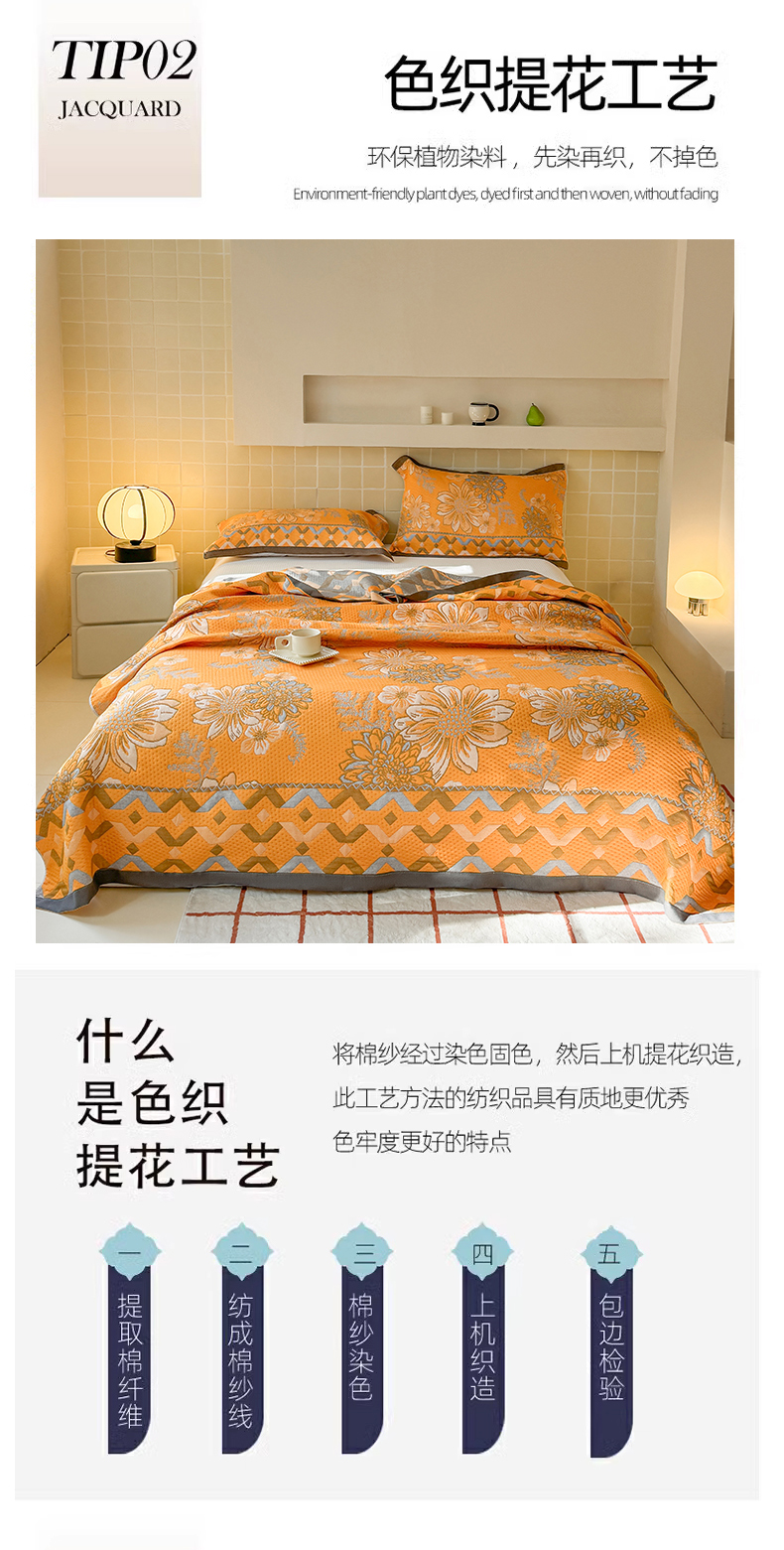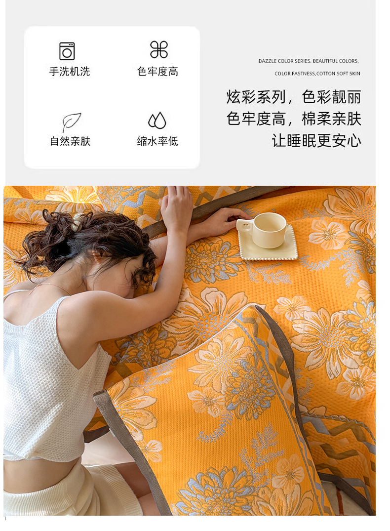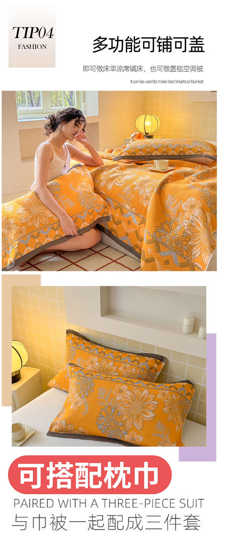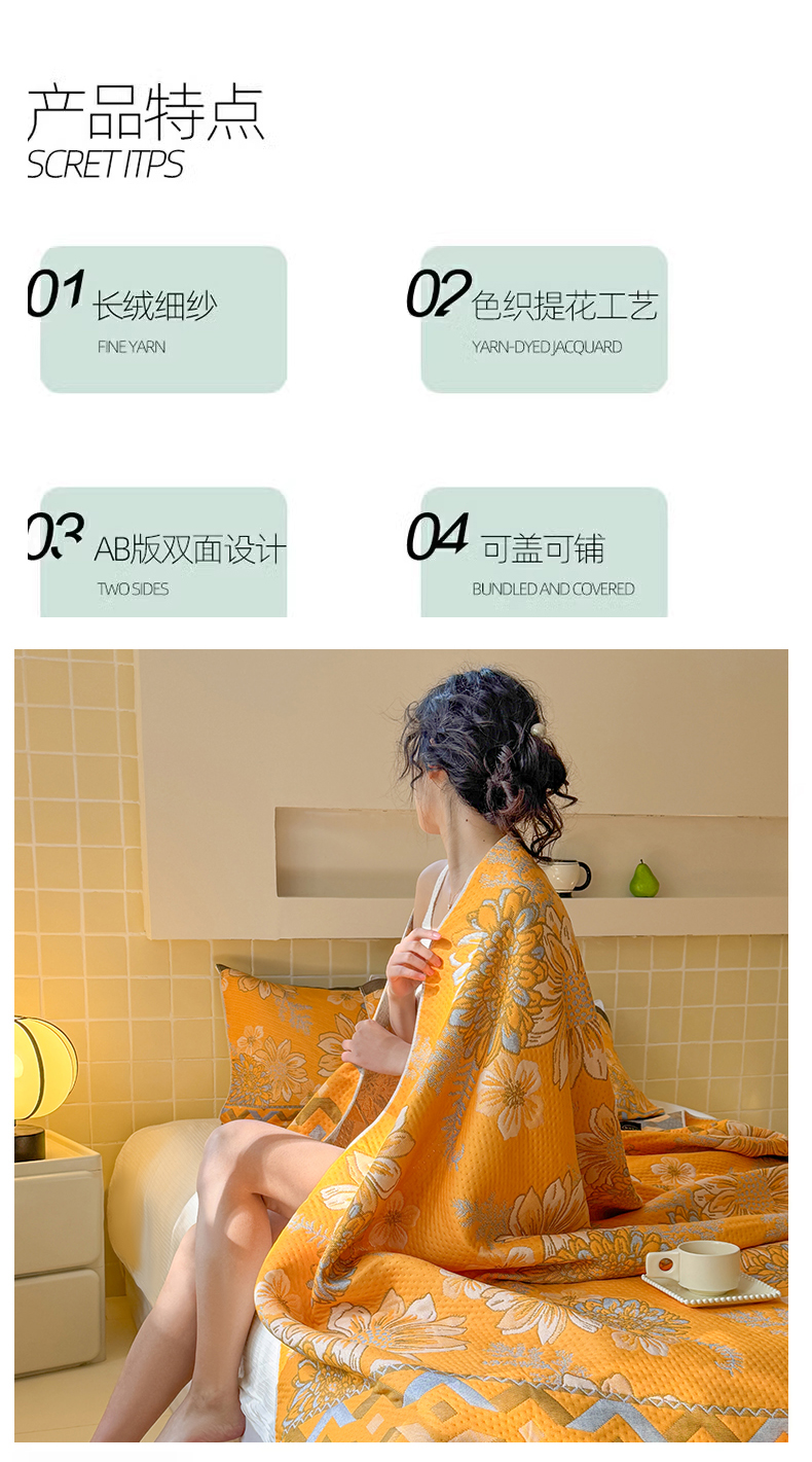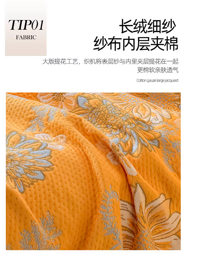 商品名称:朴尔家纺-毛巾被 2026新款彩棉云柔三层纱布毛巾被三件套盖毯 满庭芳华