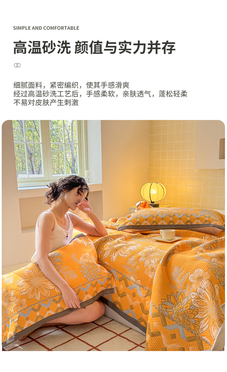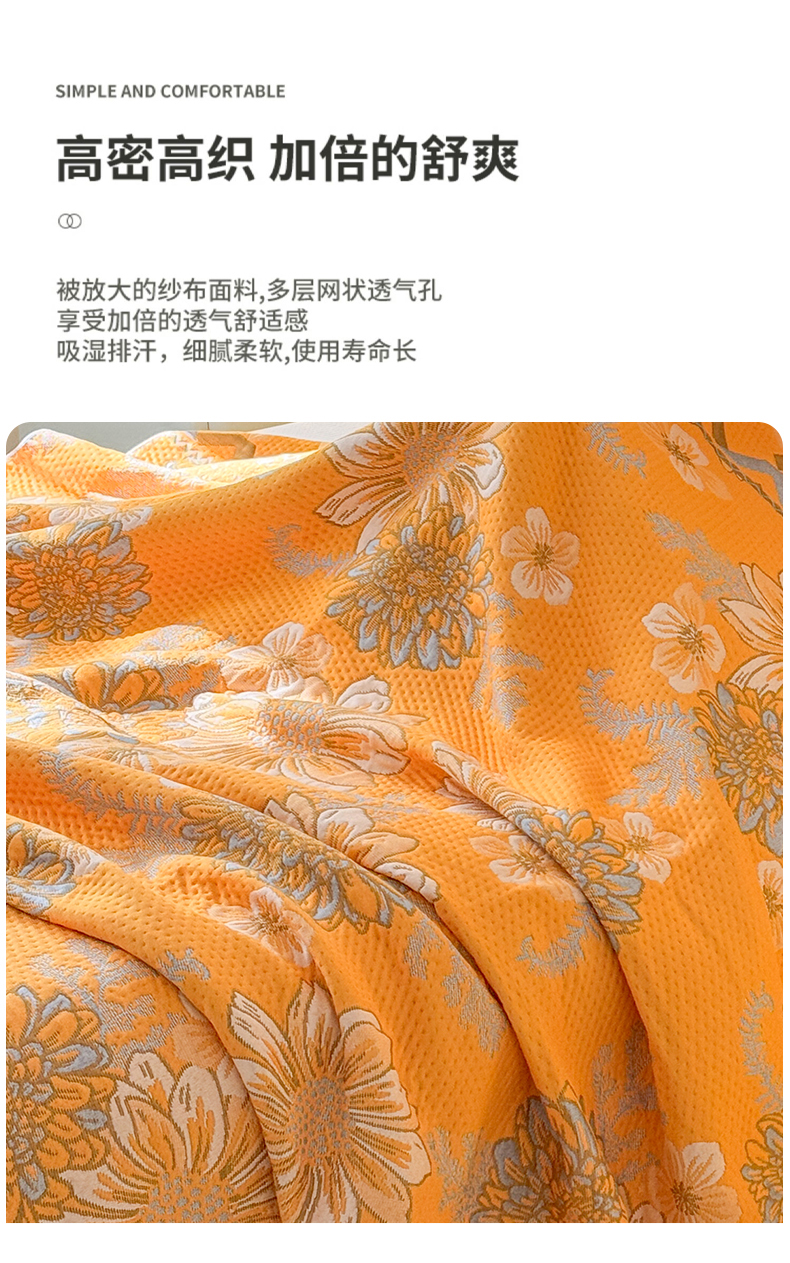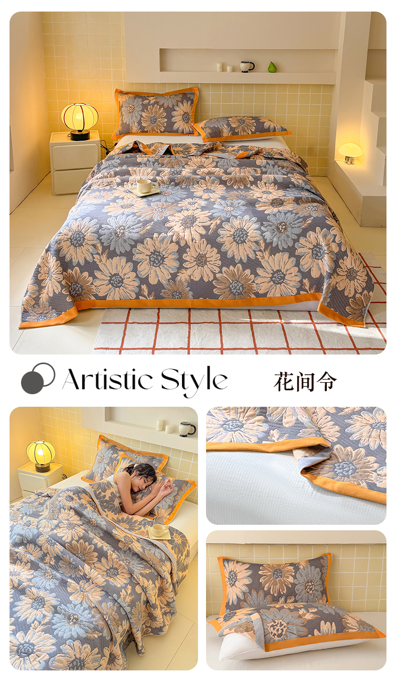 朴尔家纺-毛巾被 2026新款彩棉云柔三层纱布毛巾被三件套盖毯 满庭芳华