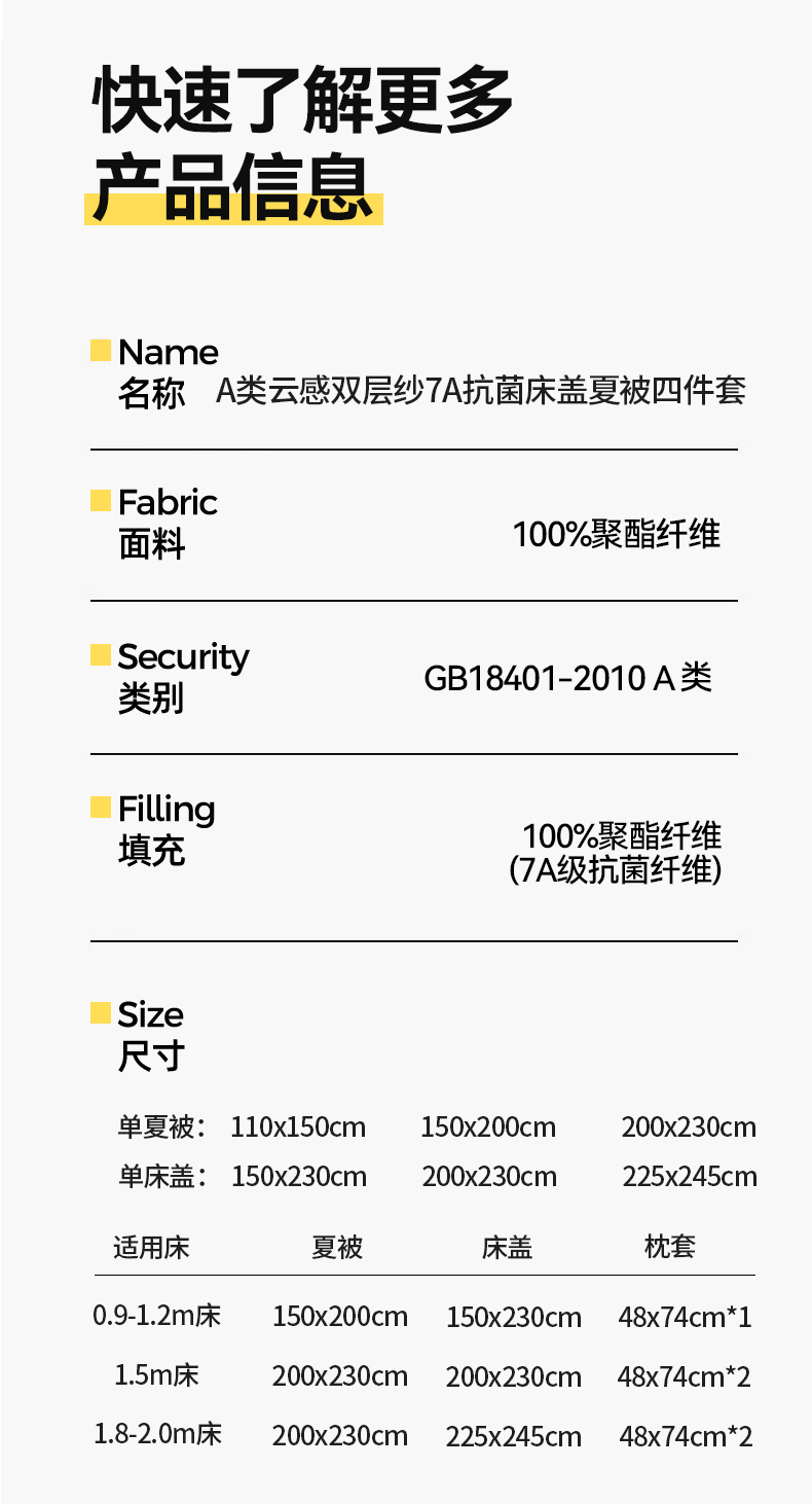 商品名称:(总)老帅的工厂店 2026新款A类云感双层纱7A抗菌单品床盖系列