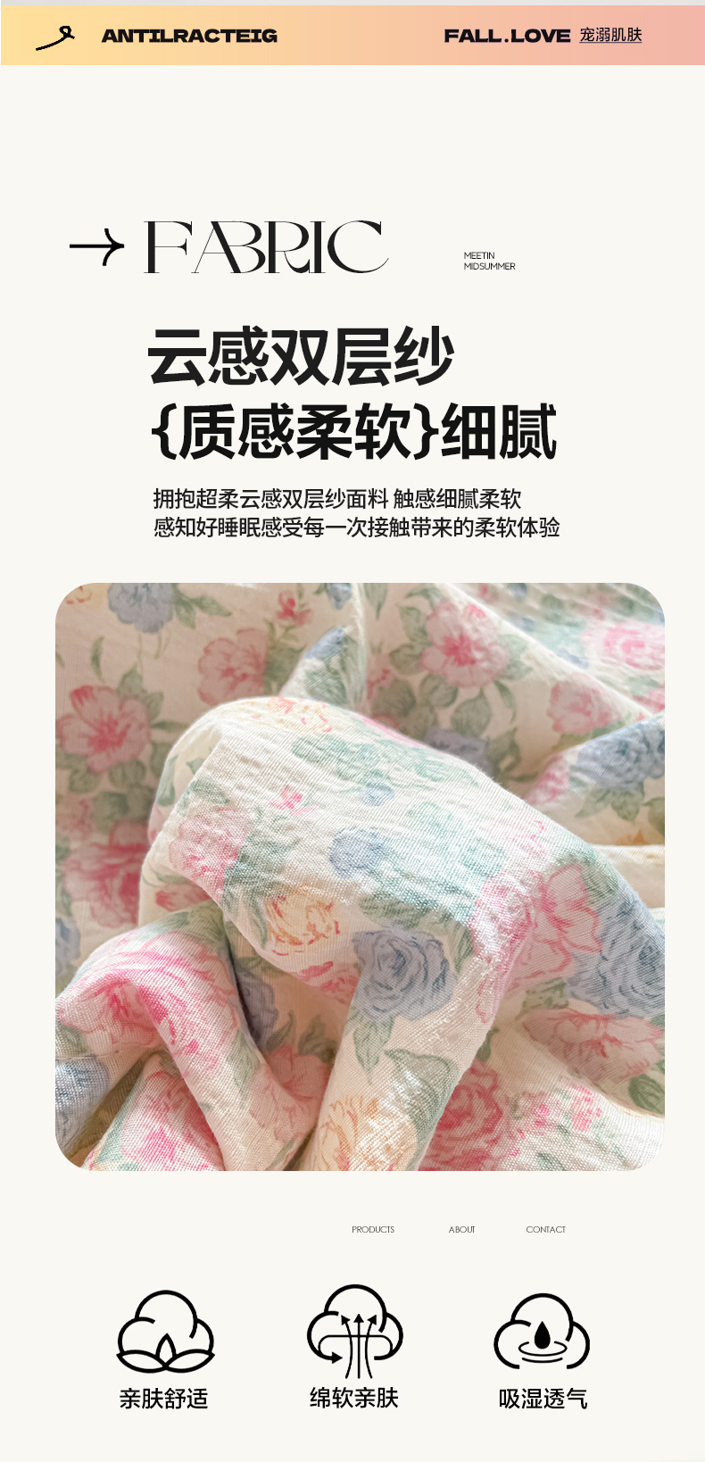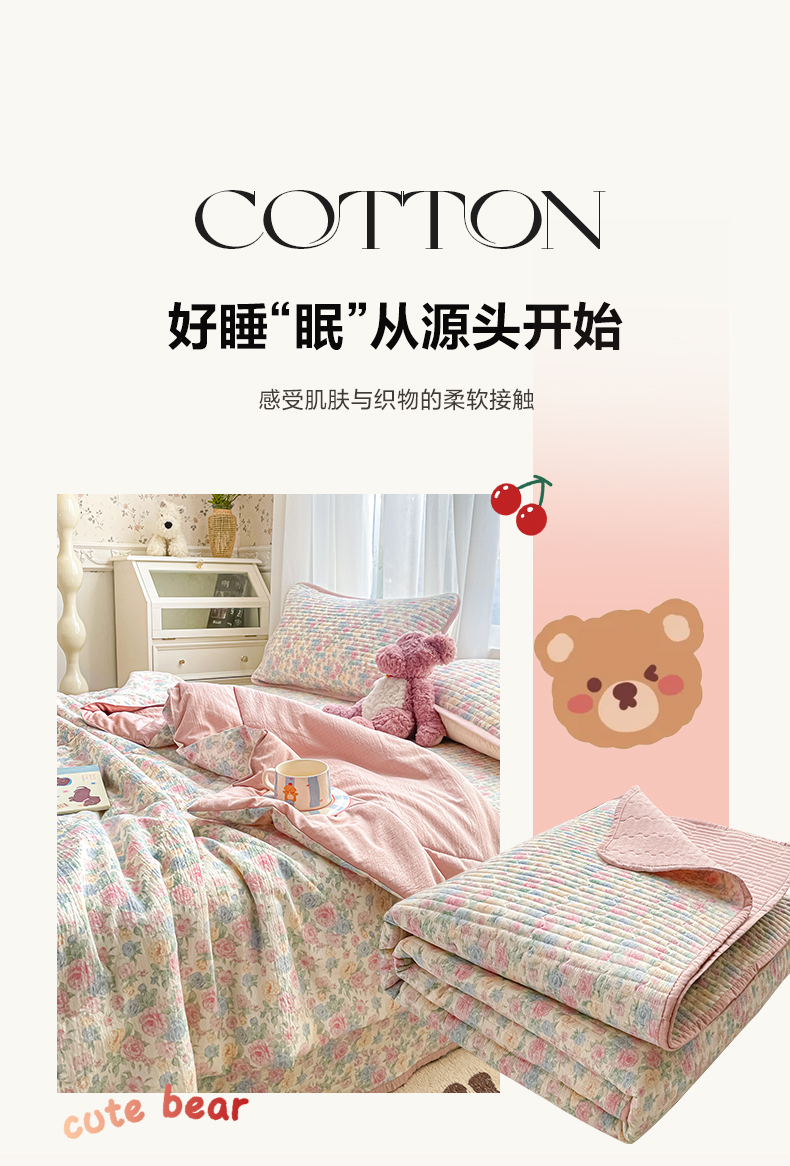 (总)老帅的工厂店 2026新款A类云感双层纱7A抗菌床盖夏被四件套系列,芋泥小兔,草莓格,春野粉调,点点碟序,碟织,粉波Kitty梦,海盐波波,海盐花田,花开漫漫,花蔓,花漾,蓝格萌狗,暖花,浅野小猫,倾结,甜心兔,兔眠,兔兔密语,雾棕花影,小狗笔记,织梦