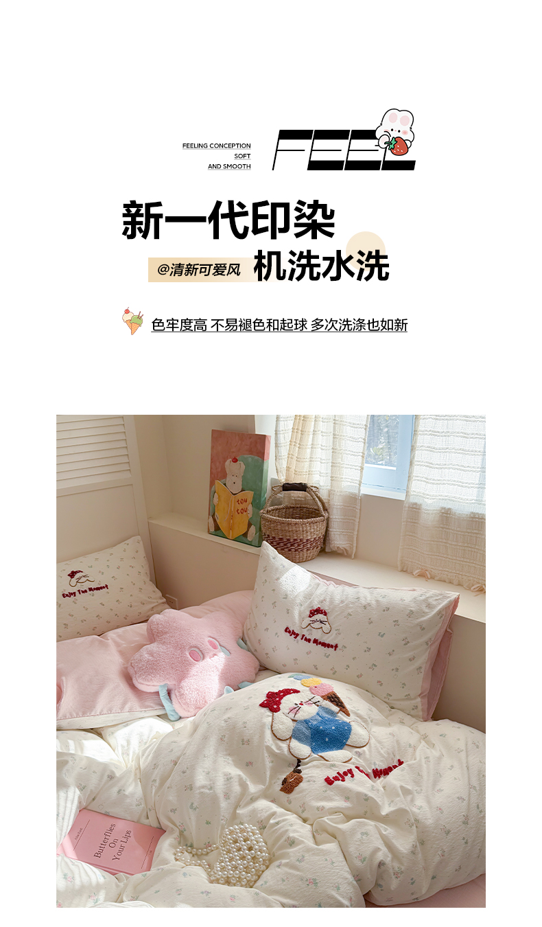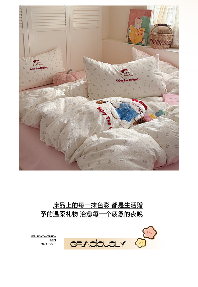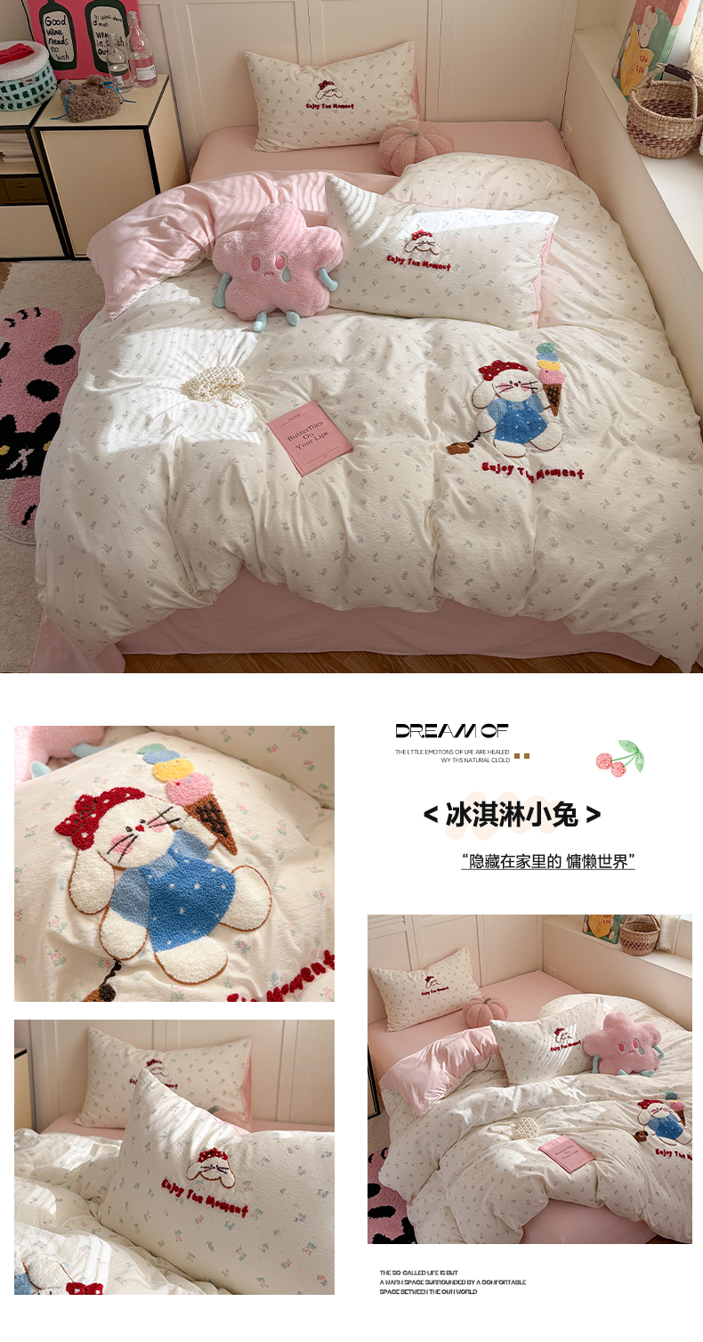 当前位置: 91家纺网 > 商品网购 > 床品套件 > 四件套 > 毛巾绣四件套 > 美乐迪家纺 2026新款云感双层纱毛巾绣四件套(会员-2) 冰淇淋小兔