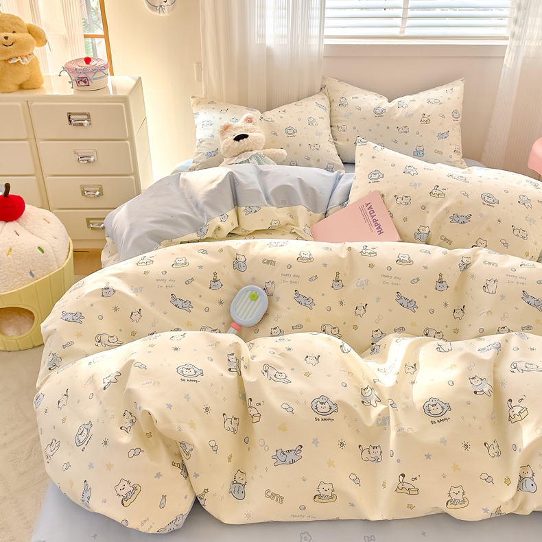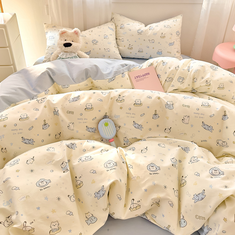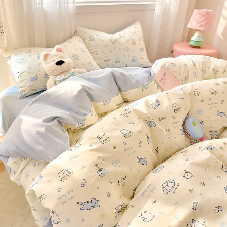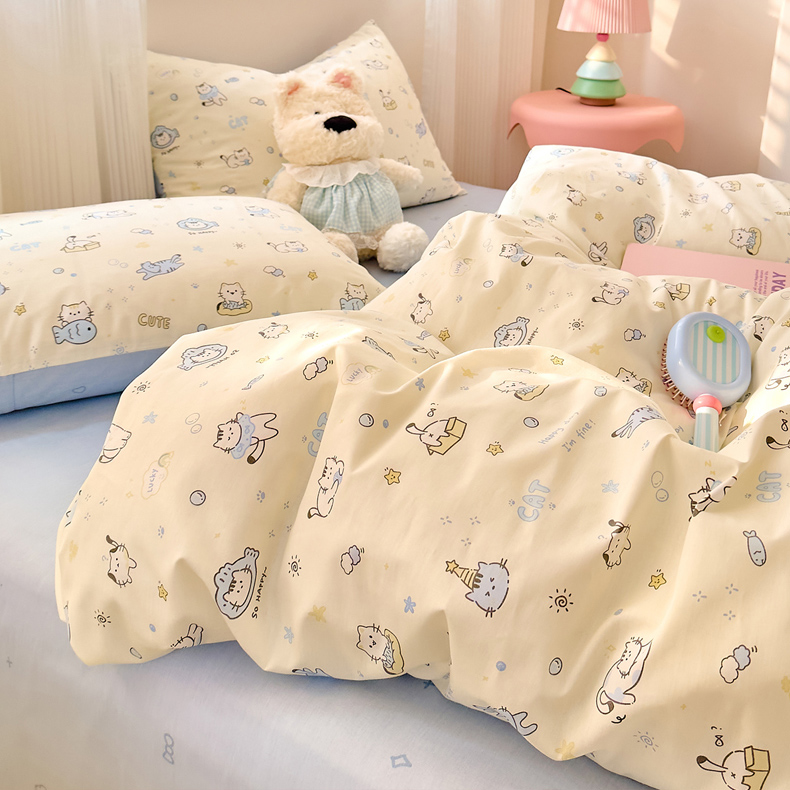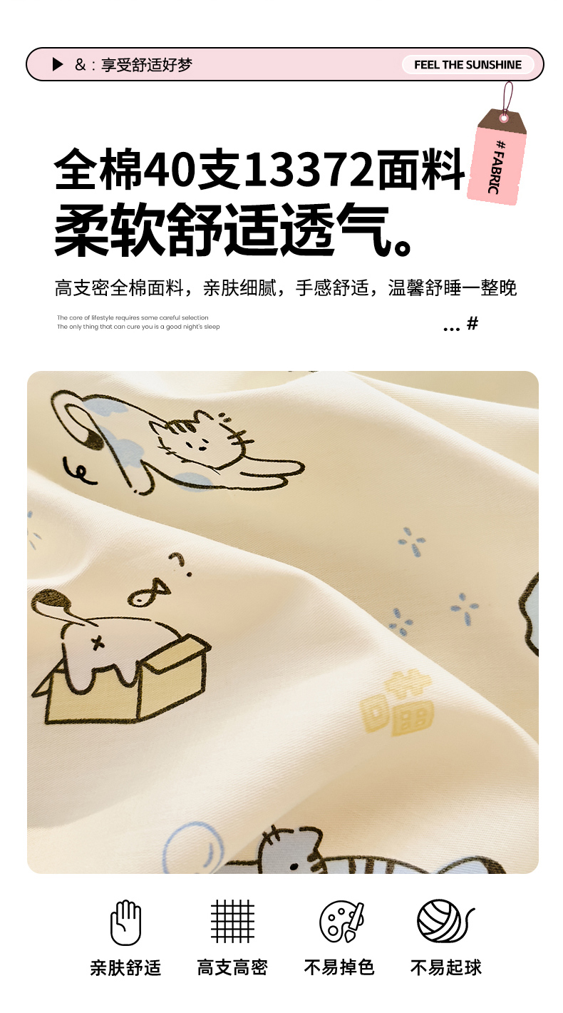 当前位置: 91家纺网 > 商品网购 > 床品套件 > 四件套 > 全棉普通四件套 > DoDo 兜兜 2026春夏新款全棉纯棉可爱卡通四件套 机灵猫
