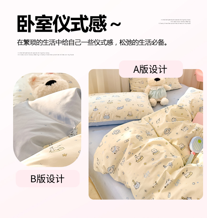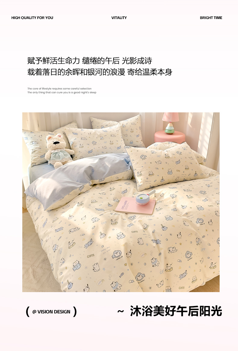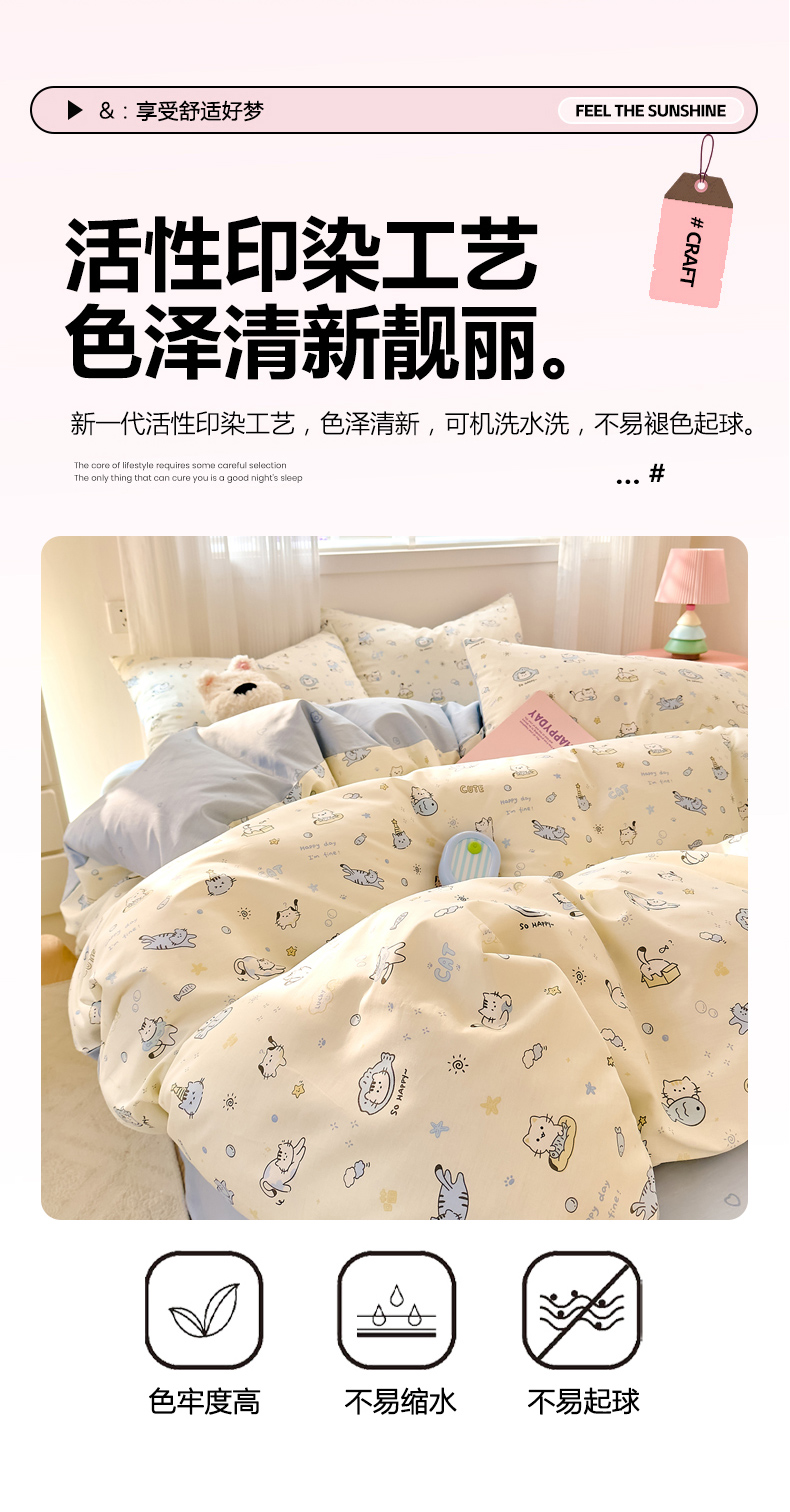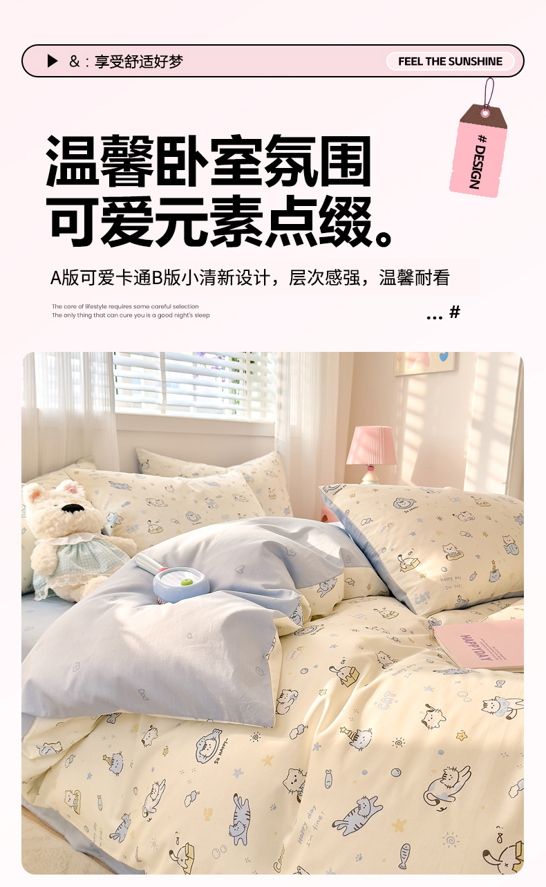 当前位置: 91家纺网 > 商品网购 > 床品套件 > 四件套 > 全棉普通四件套 > DoDo 兜兜 2026春夏新款全棉纯棉可爱卡通四件套 机灵猫
