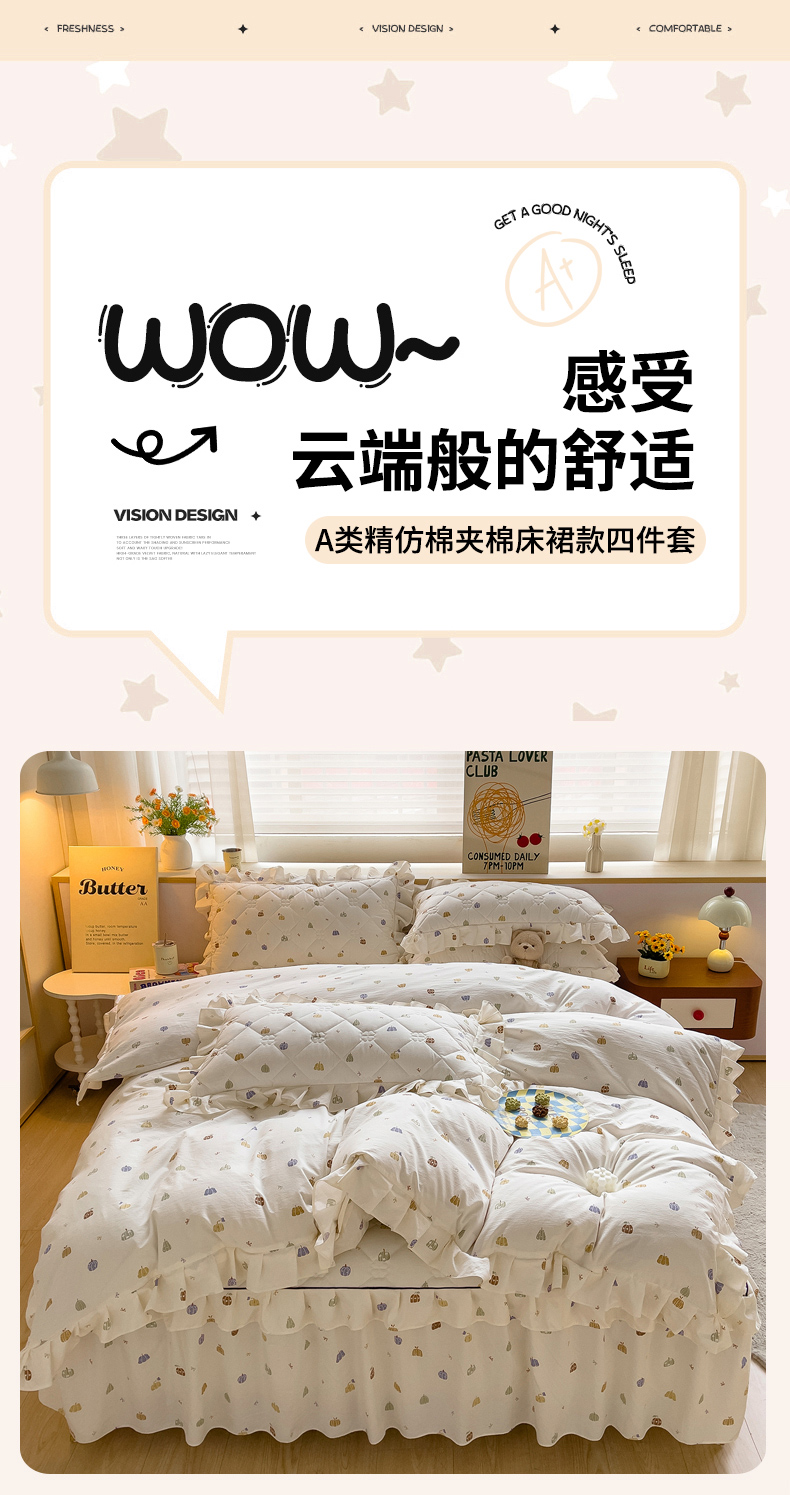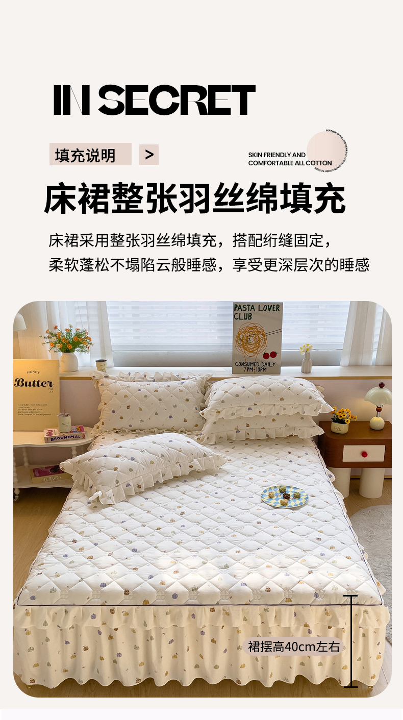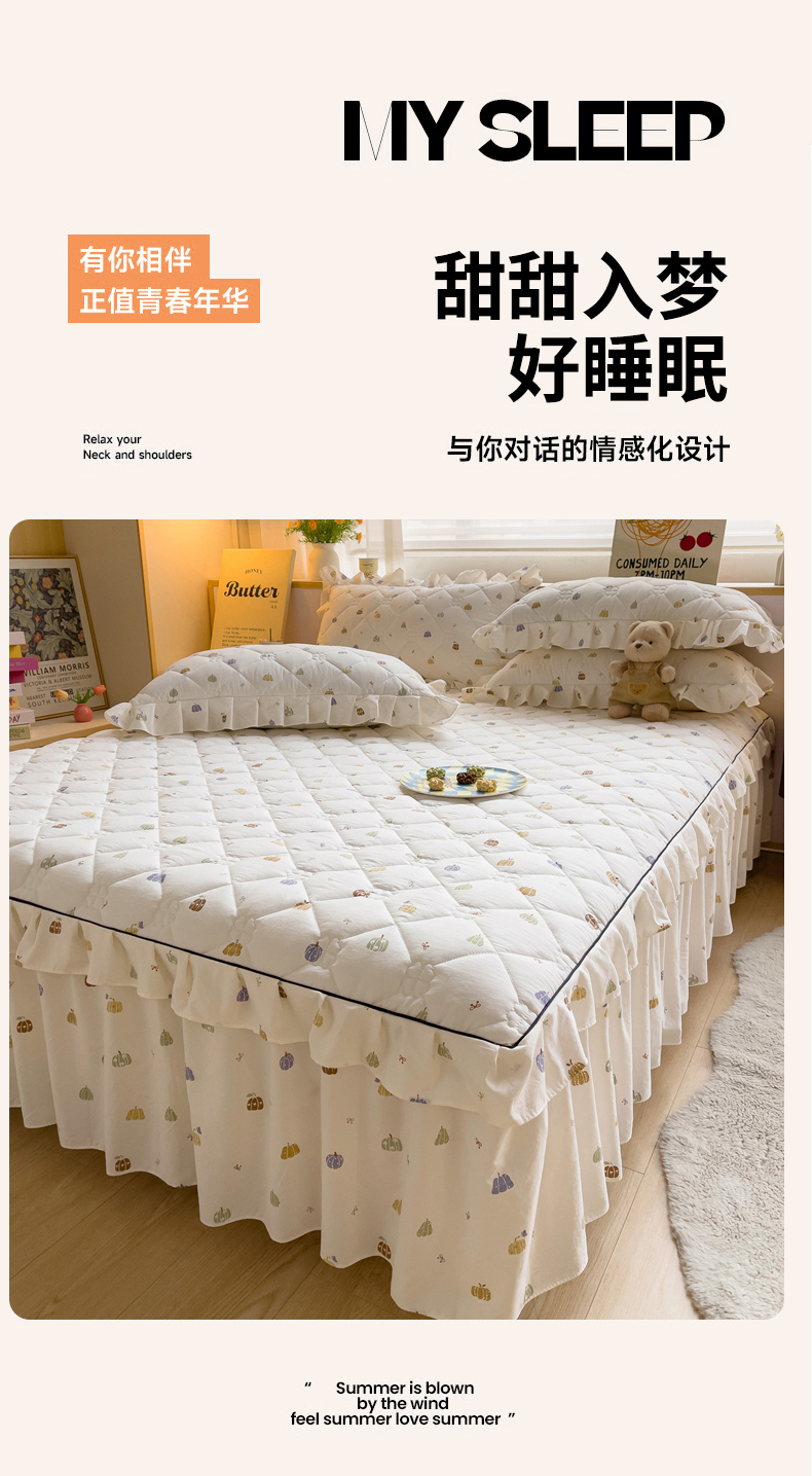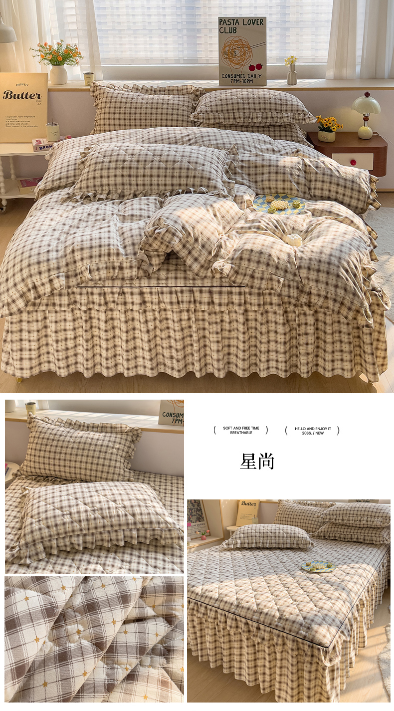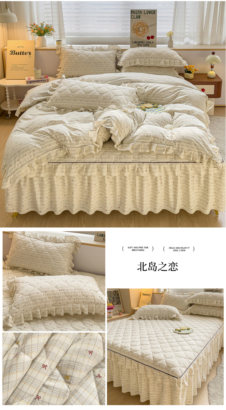 当前位置: 91家纺网 > 商品网购 > 床品套件 > 四件套 > 其它四件套 > 优家居工厂店 2026新款精仿棉夹棉床裙四件套水洗棉韩版公主风花边床裙被套直播外贸定制 贝贝南瓜