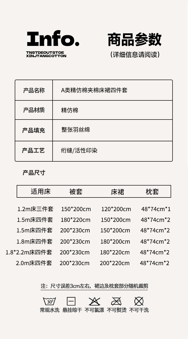 【夹棉床裙款】1.2x2.0三件套-被套150x200 | ¥66.00 |