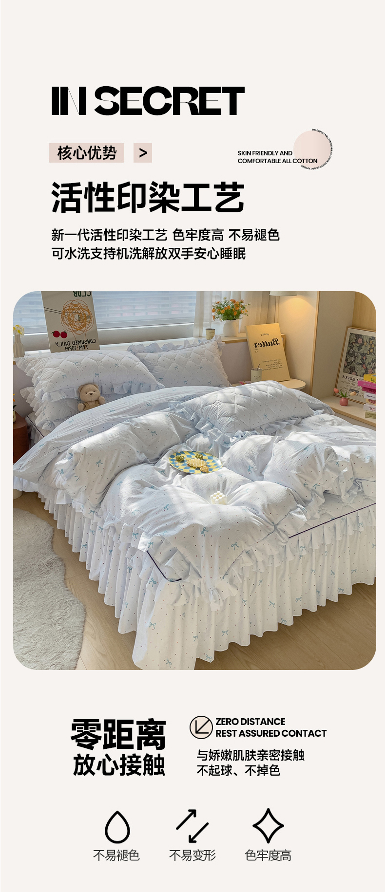 当前位置: 91家纺网 > 商品网购 > 床品套件 > 四件套 > 其它四件套 > 优家居工厂店 2026新款精仿棉夹棉床裙四件套水洗棉韩版公主风花边床裙被套直播外贸定制 潘多拉-兰