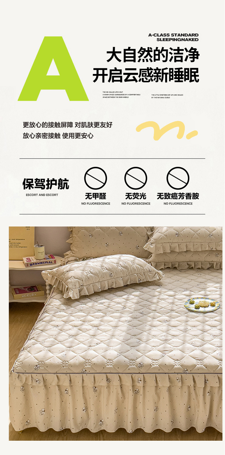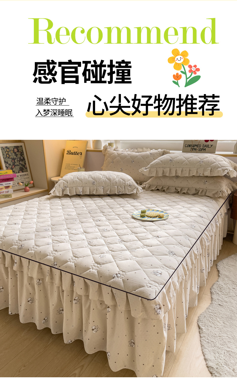 当前位置: 91家纺网 > 商品网购 > 床上用品 > 床裙 > 优家居工厂店 2026新款精仿棉夹棉床裙三件套水洗棉韩版公主风花边床裙直播外贸定制 星星熊