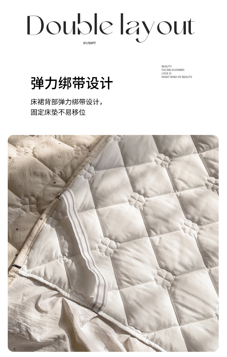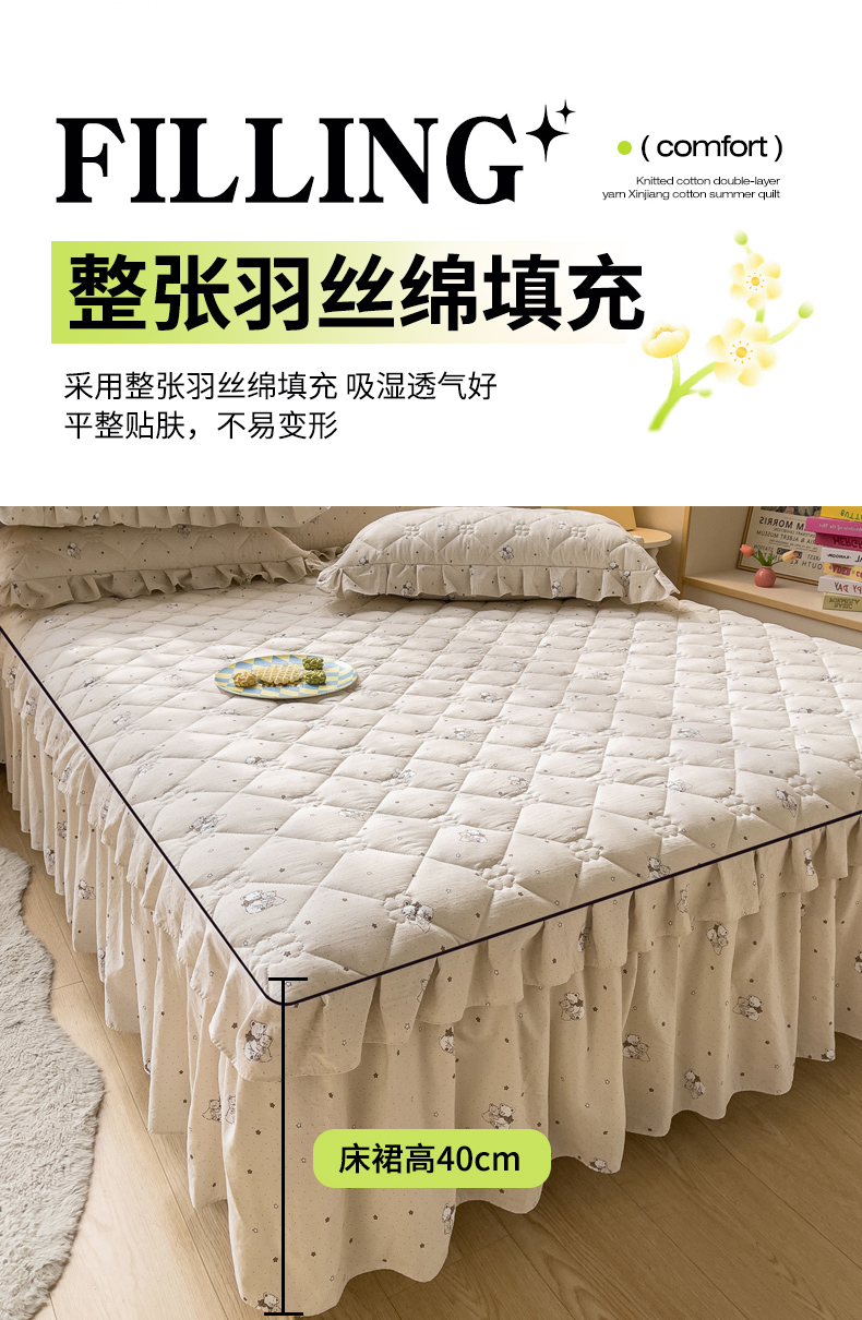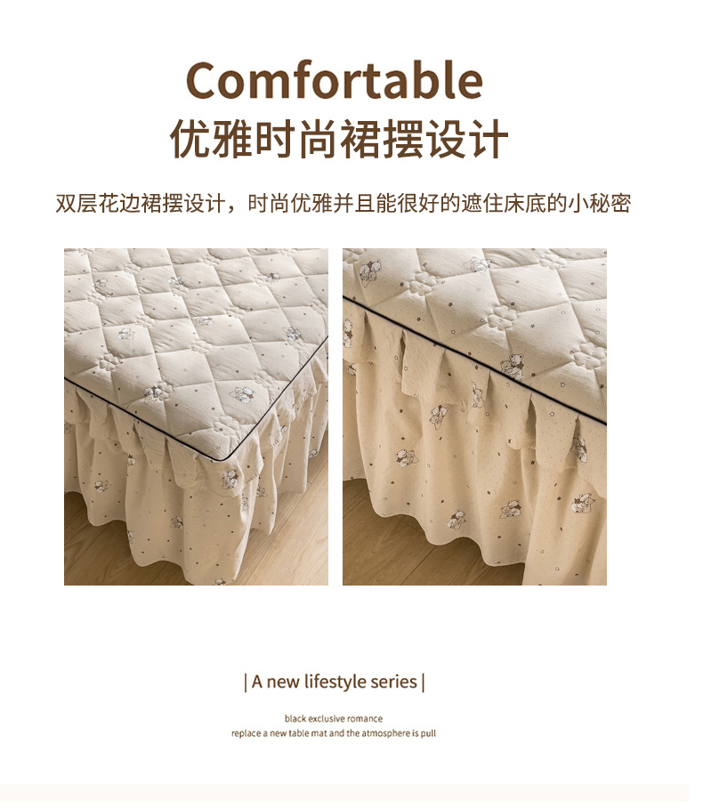 • 91家纺网 家纺一手货源 找家纺 优家居工厂店 2026新款精仿棉夹棉床裙三件套水洗棉韩版公主风花边床裙直播外贸定制 星星熊