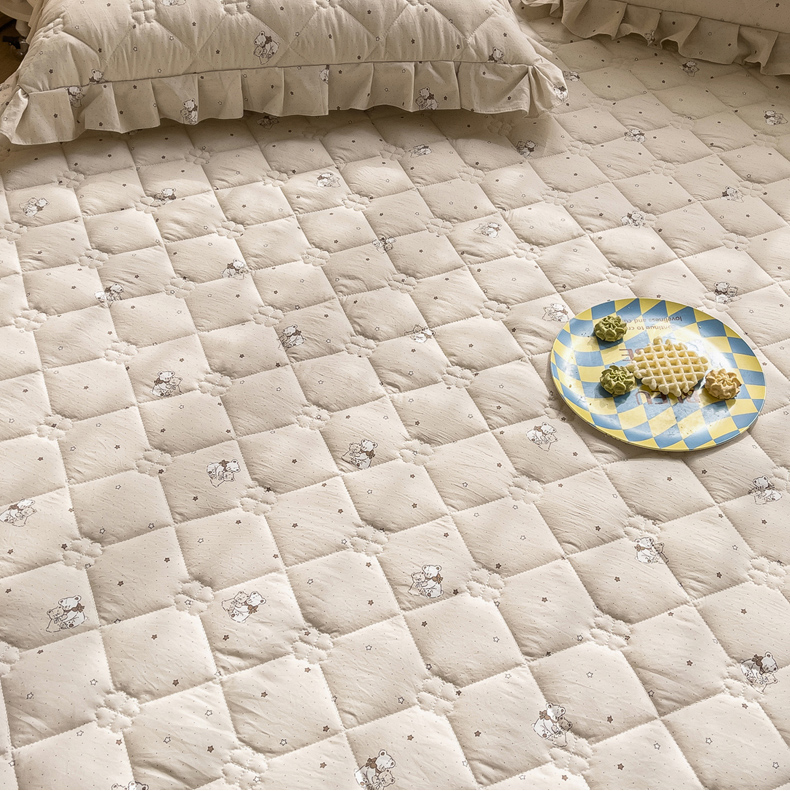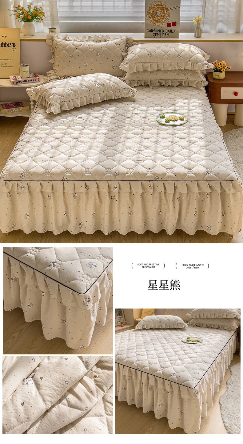 优家居工厂店 2026新款精仿棉夹棉床裙三件套水洗棉韩版公主风花边床裙直播外贸定制 星星熊