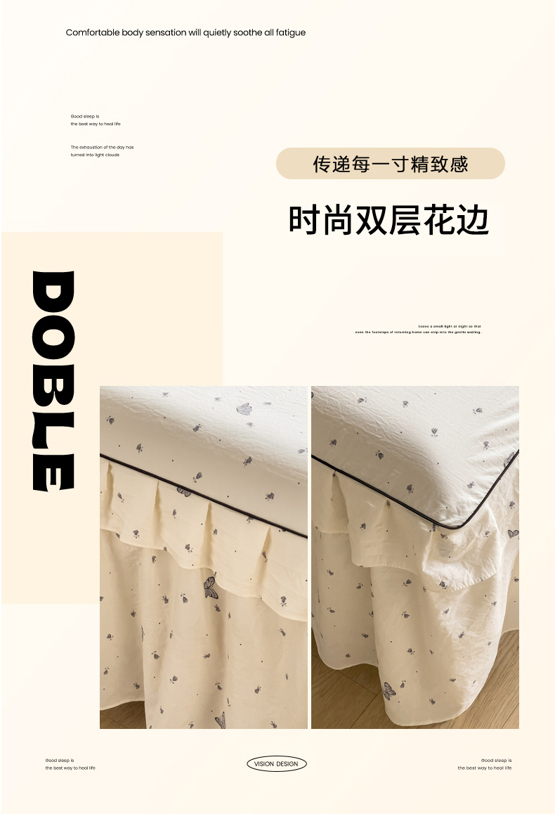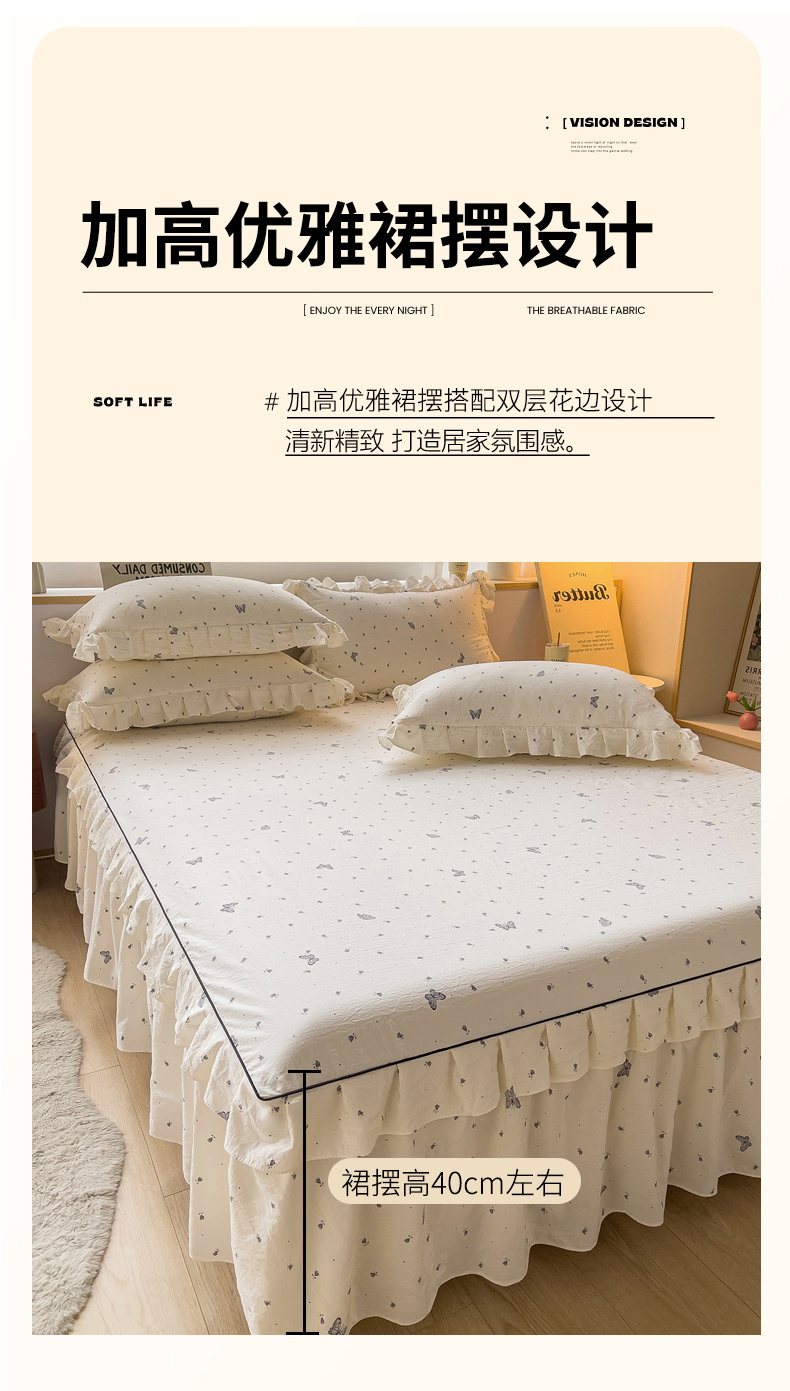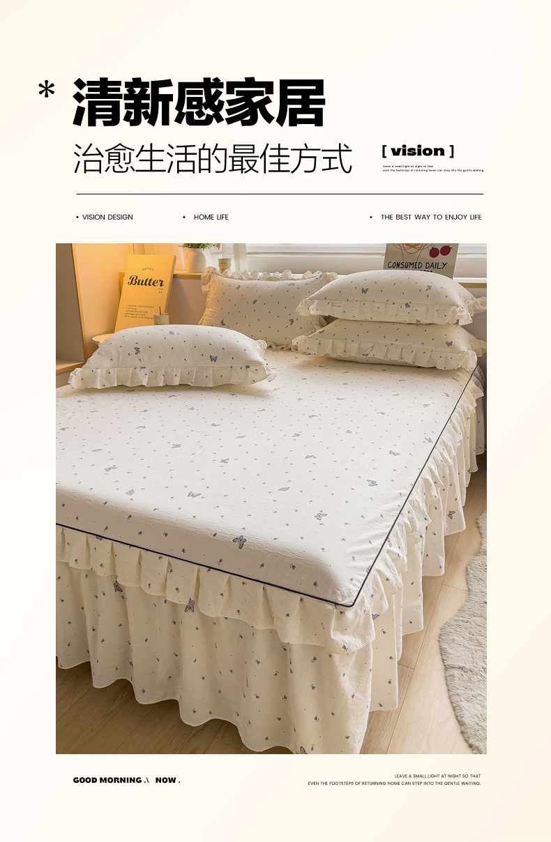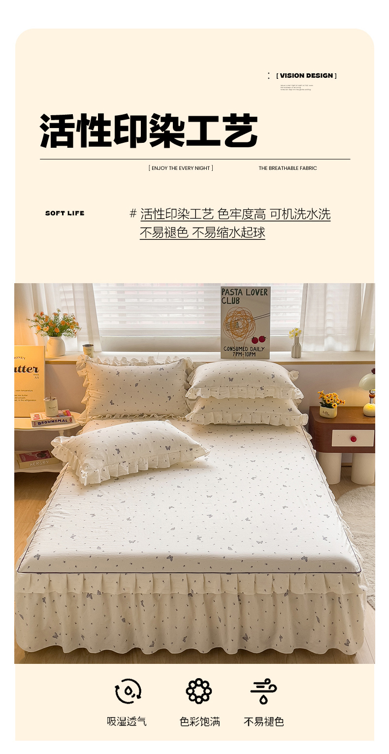优家居工厂店 2026新款精仿棉床裙三件套水洗棉韩版公主风花边床裙直播外贸定制 蝶舞翩翩