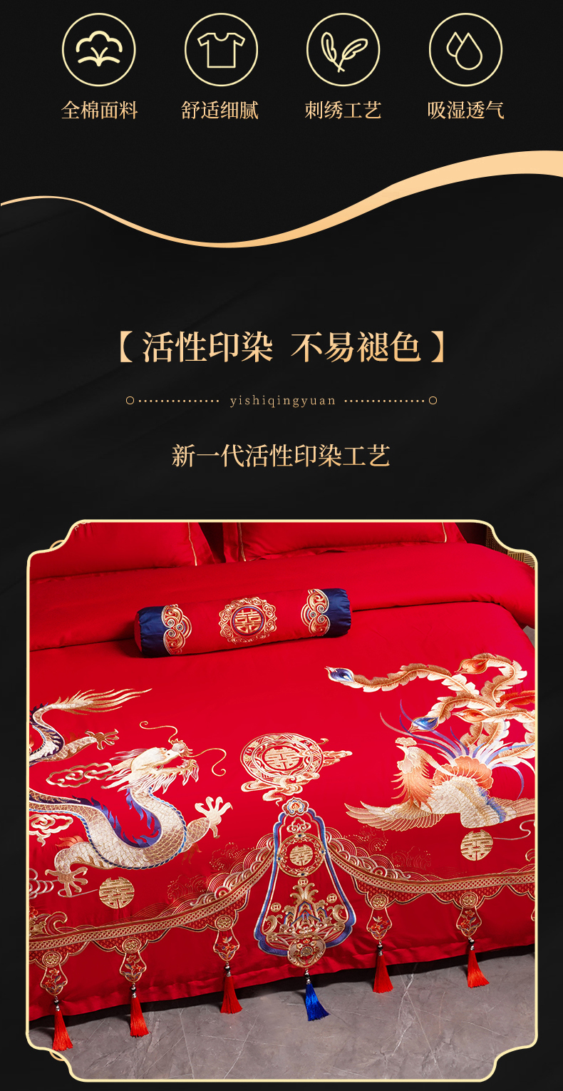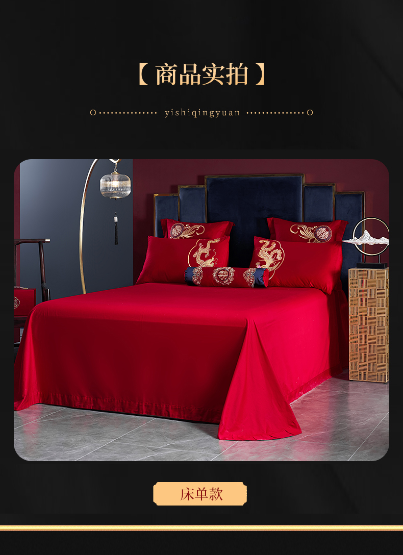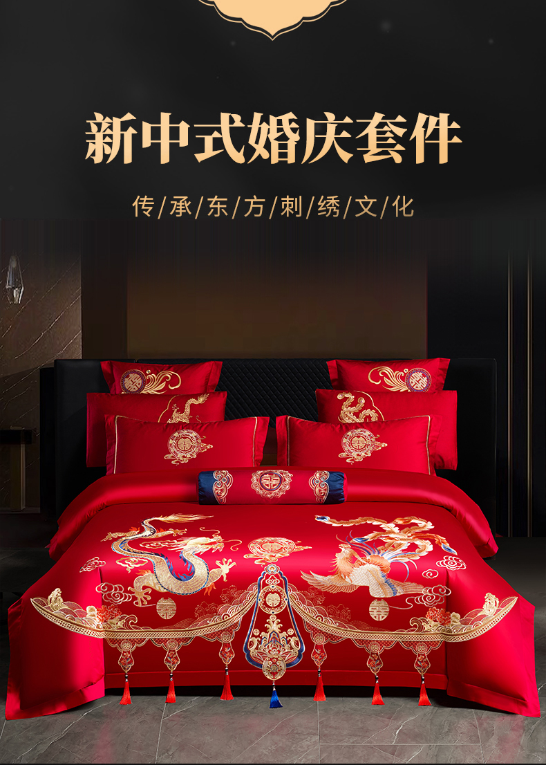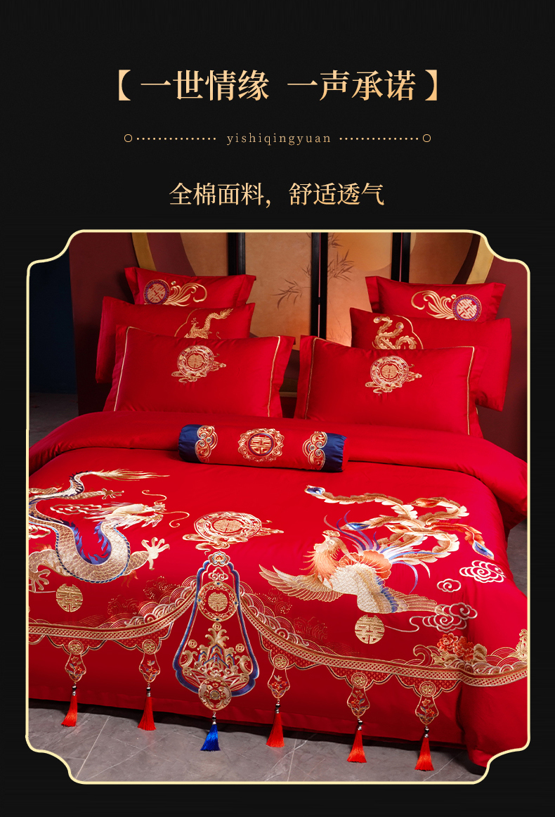 当前位置: 91家纺网 > 商品网购 > 床品套件 > 四件套 > 婚庆四件套 > 慕她家纺 2026年全棉纯棉婚庆四件套大红色刺绣结床上用品 金尊龙凤