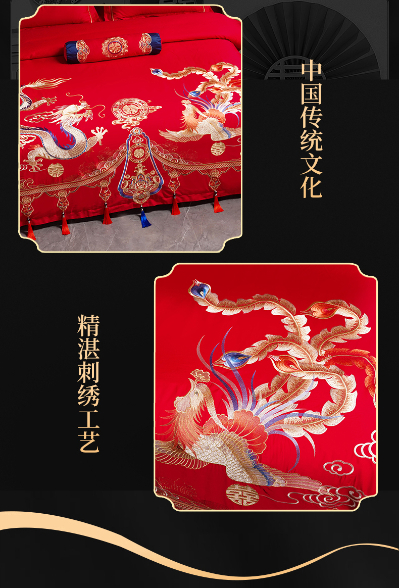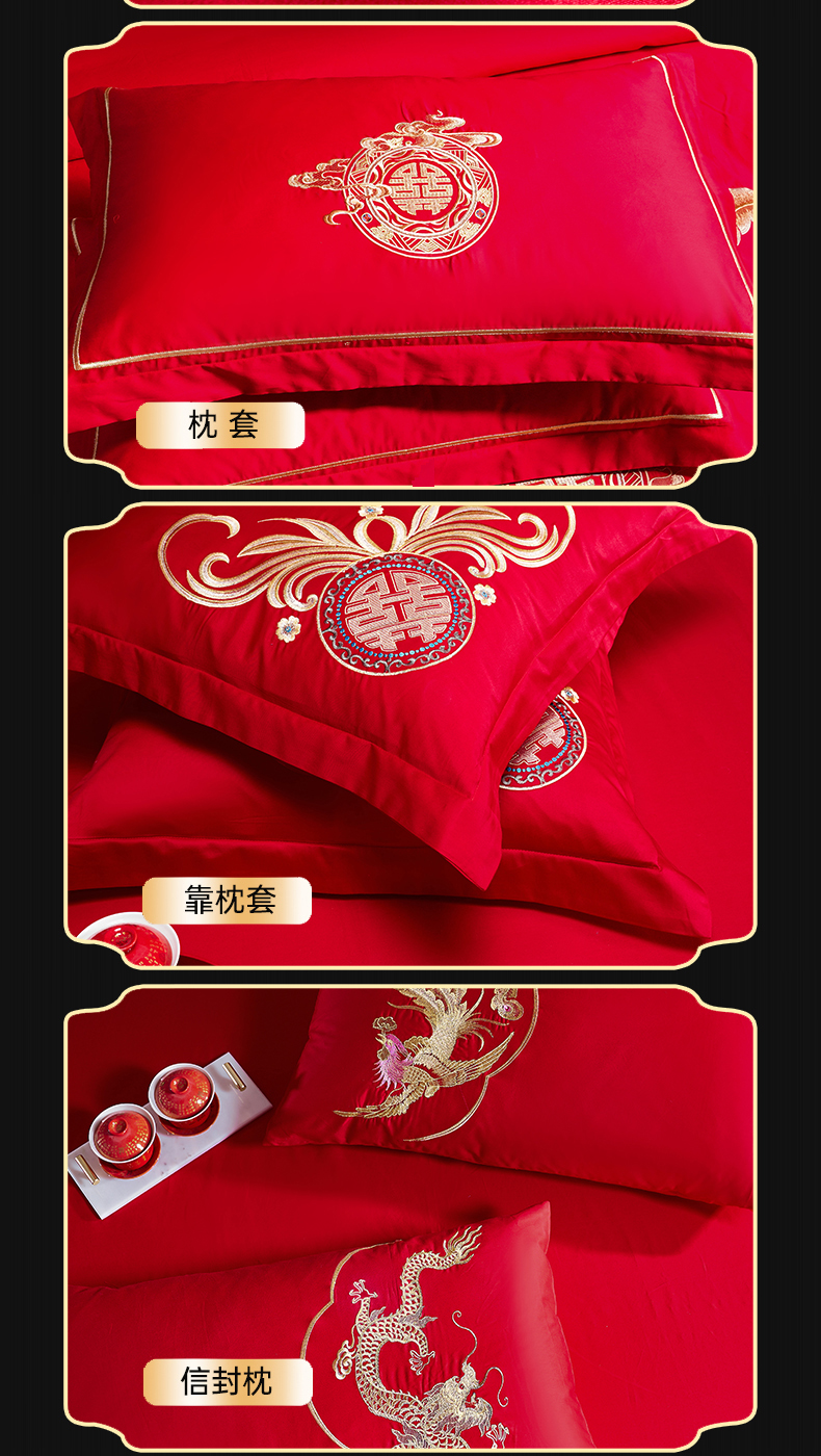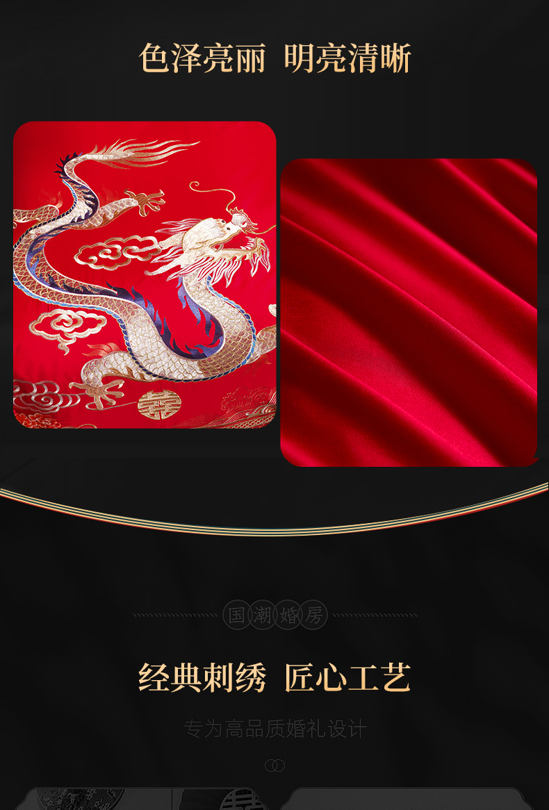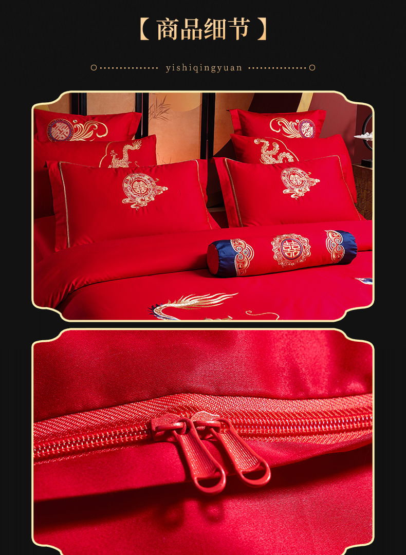 当前位置: 91家纺网 > 商品网购 > 床品套件 > 四件套 > 婚庆四件套 > 慕她家纺 2026年全棉纯棉婚庆四件套大红色刺绣结床上用品 金尊龙凤