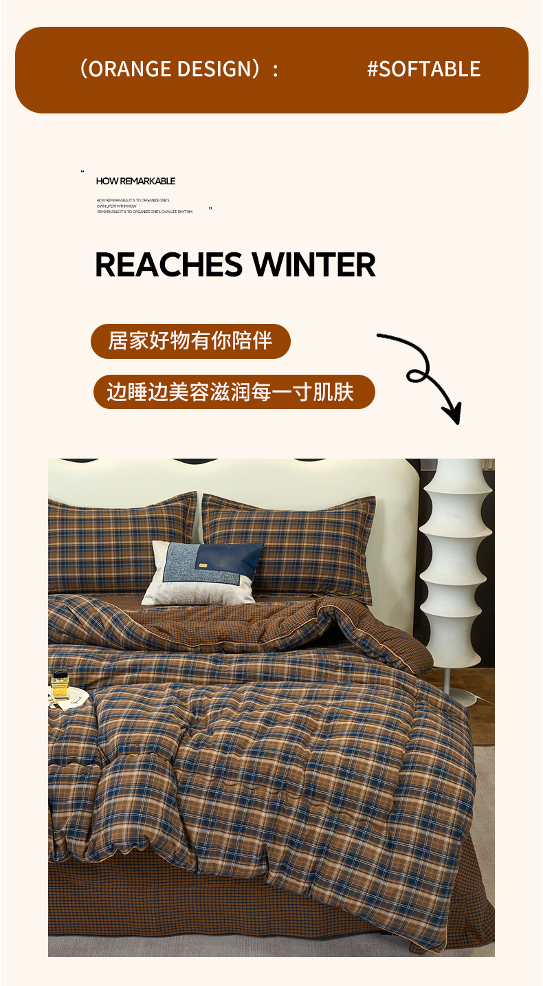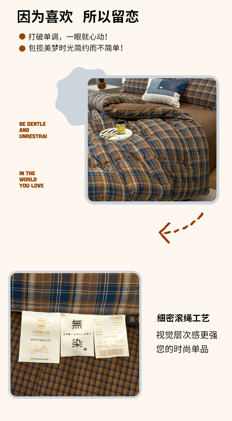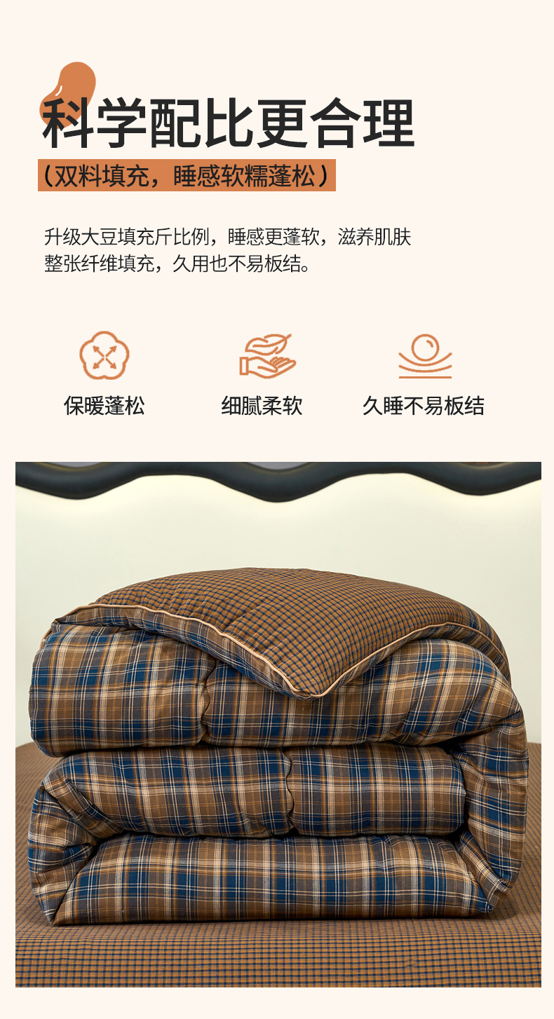 商品名称:三沁家居 2025新款全棉色织水洗棉大豆被冬被被子被芯 苏格兰咖