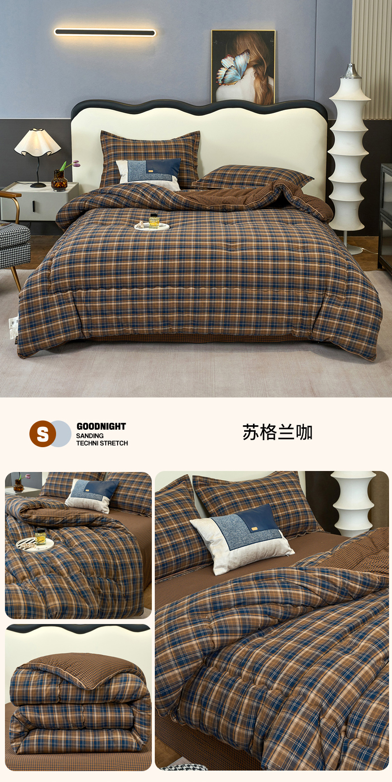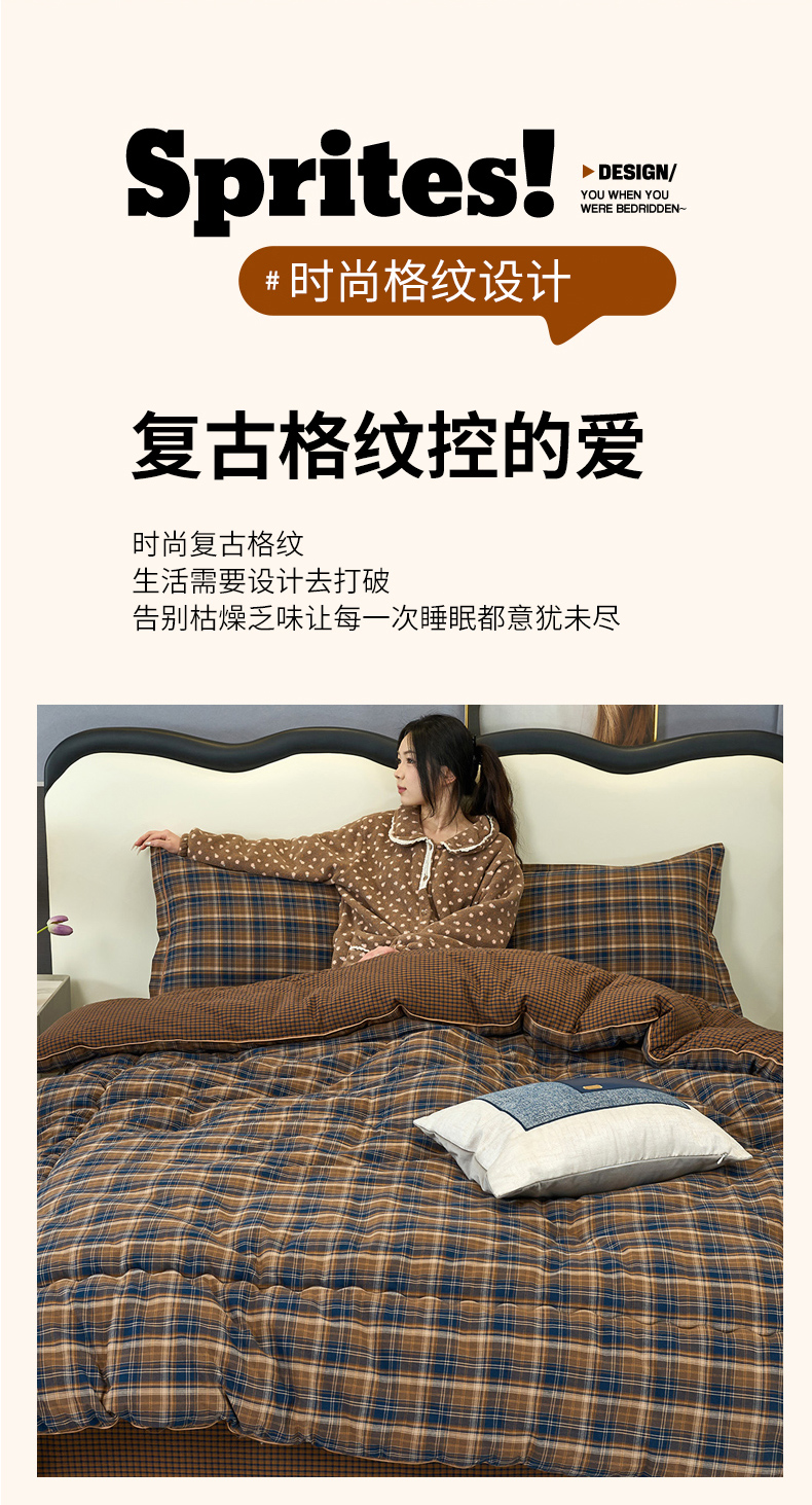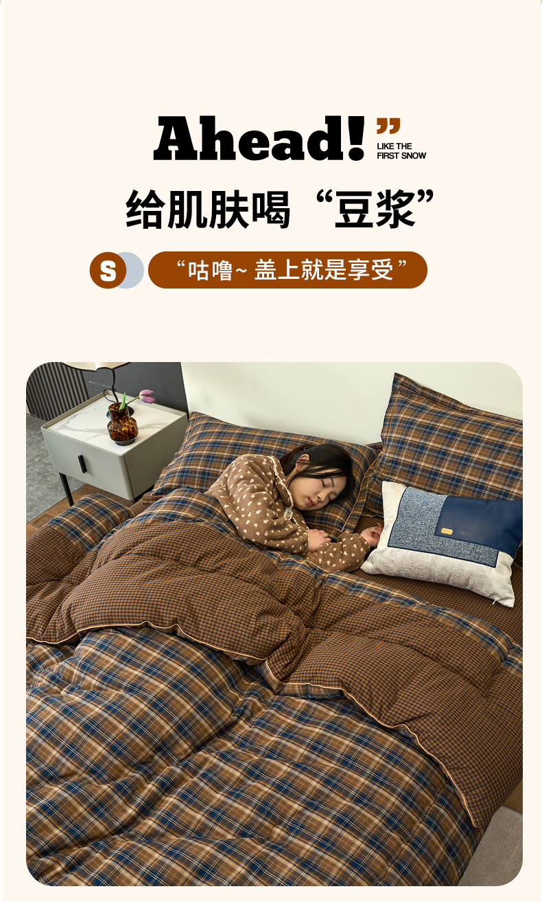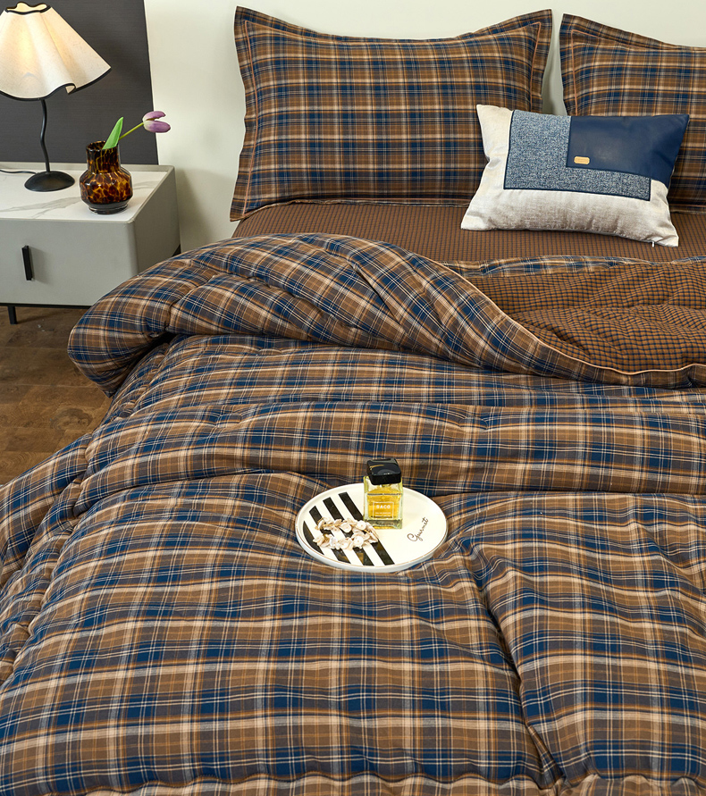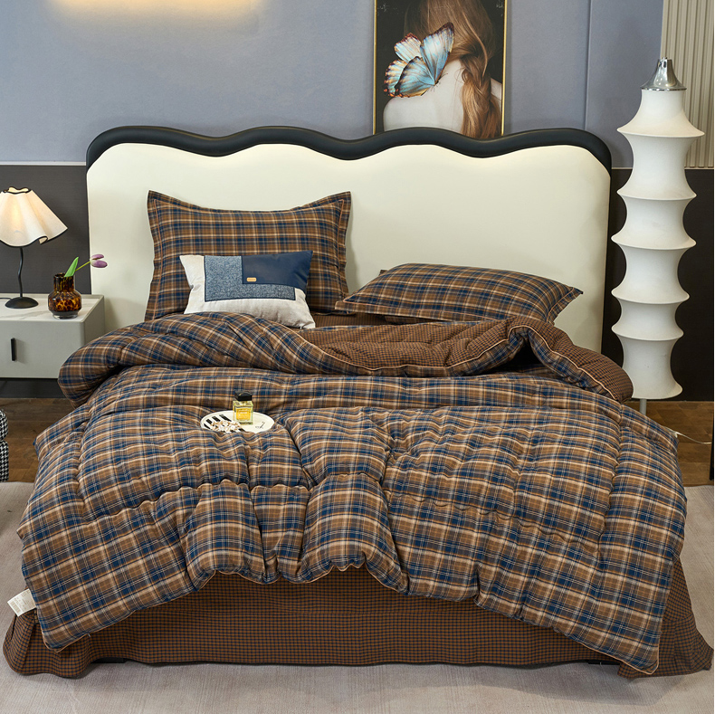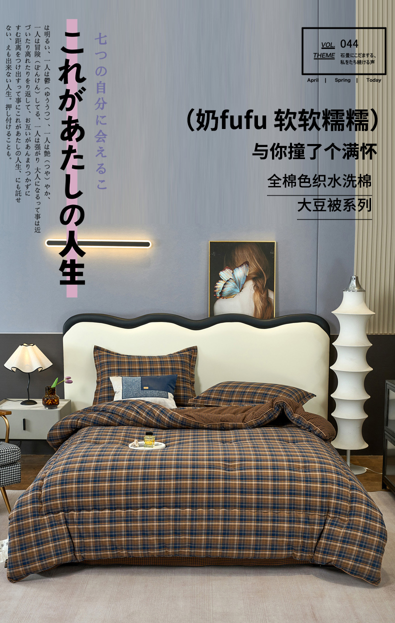 三沁家居 2025新款全棉色织水洗棉大豆被冬被被子被芯 苏格兰咖