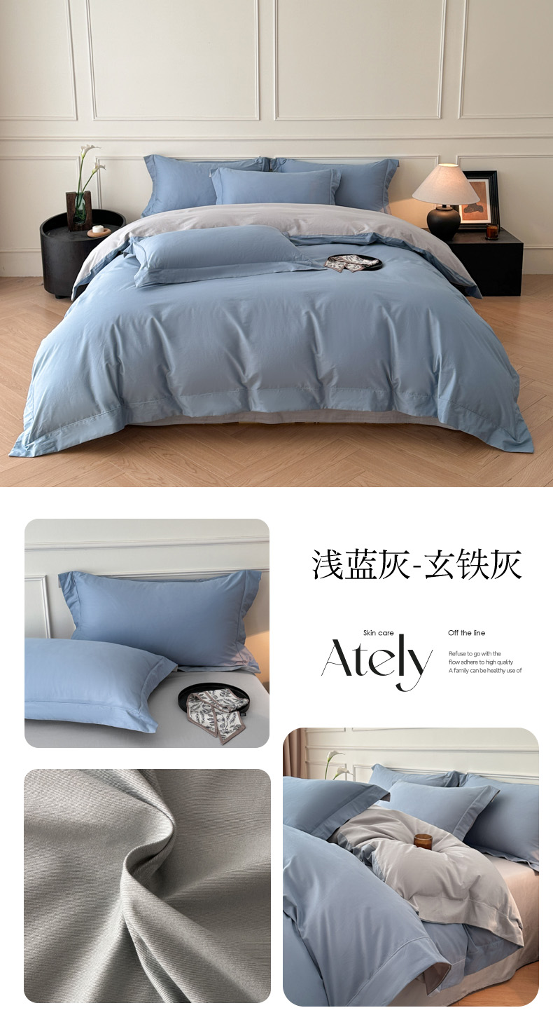 (总)万盛家纺 2025新款全棉水洗棉拼色四件套,宾利蓝拼淡咖,灰拼浅咖,抹茶绿拼淡咖,浅咖拼软桃,浅紫拼灰,软桃拼冰心,烟粉拼灰,夜色灰拼军绿