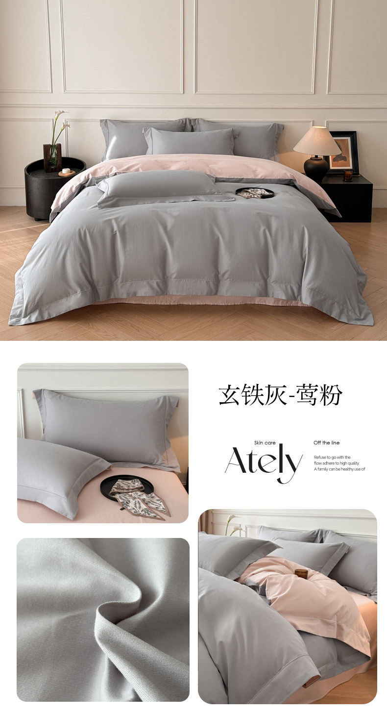 (总)万盛家纺 2026新款全棉40支极简风拼色四件套(居家风格),精致奶油-蜜糖粉,净蓝-蓝夕,蜜糖粉-冰河灰,浅灰-蜜糖粉