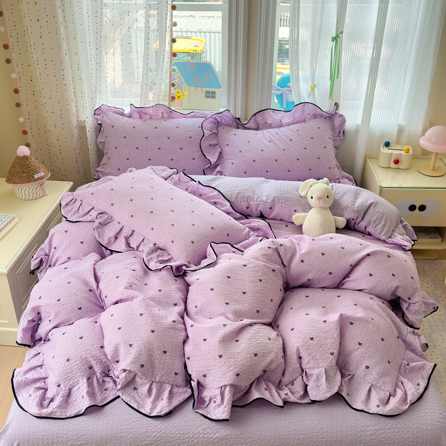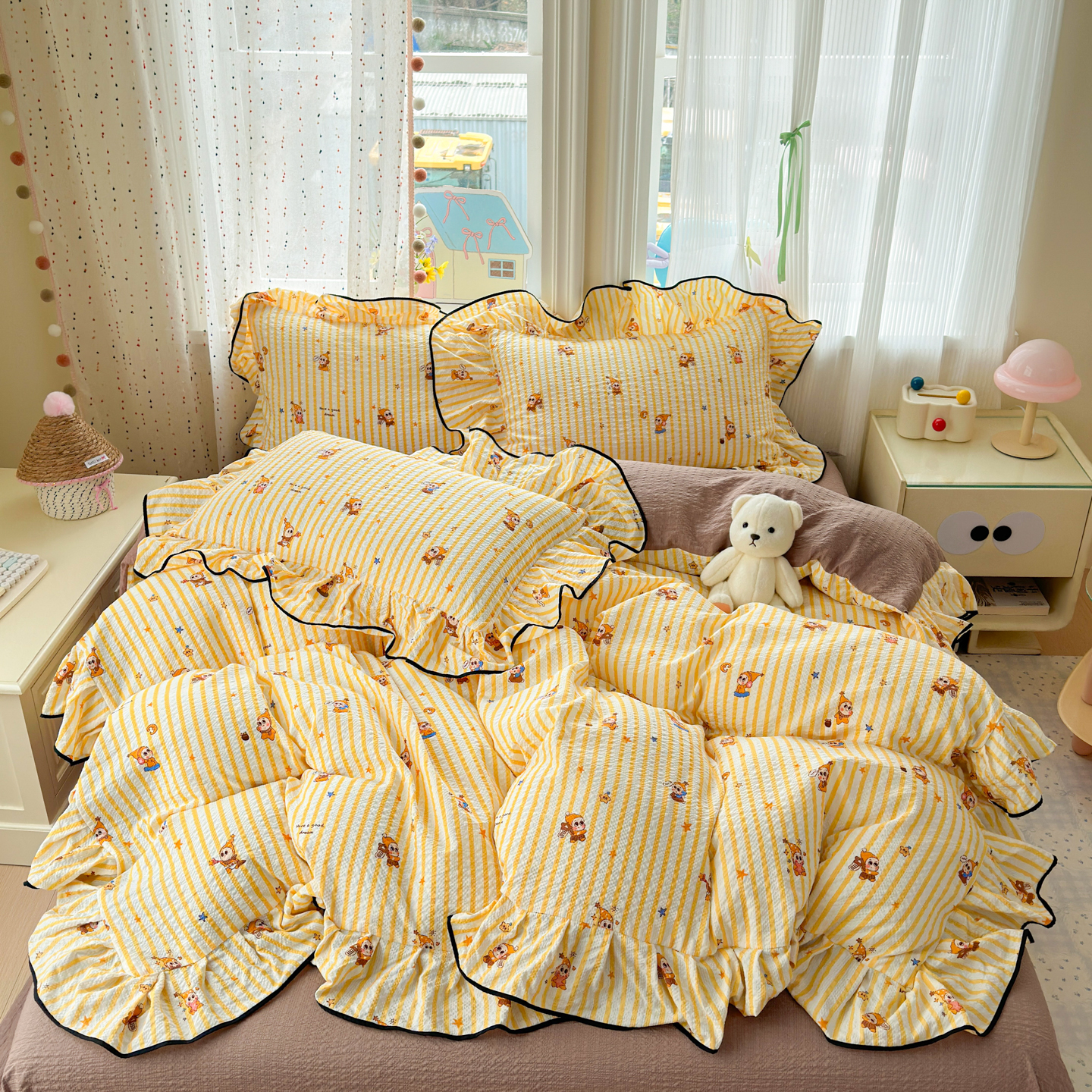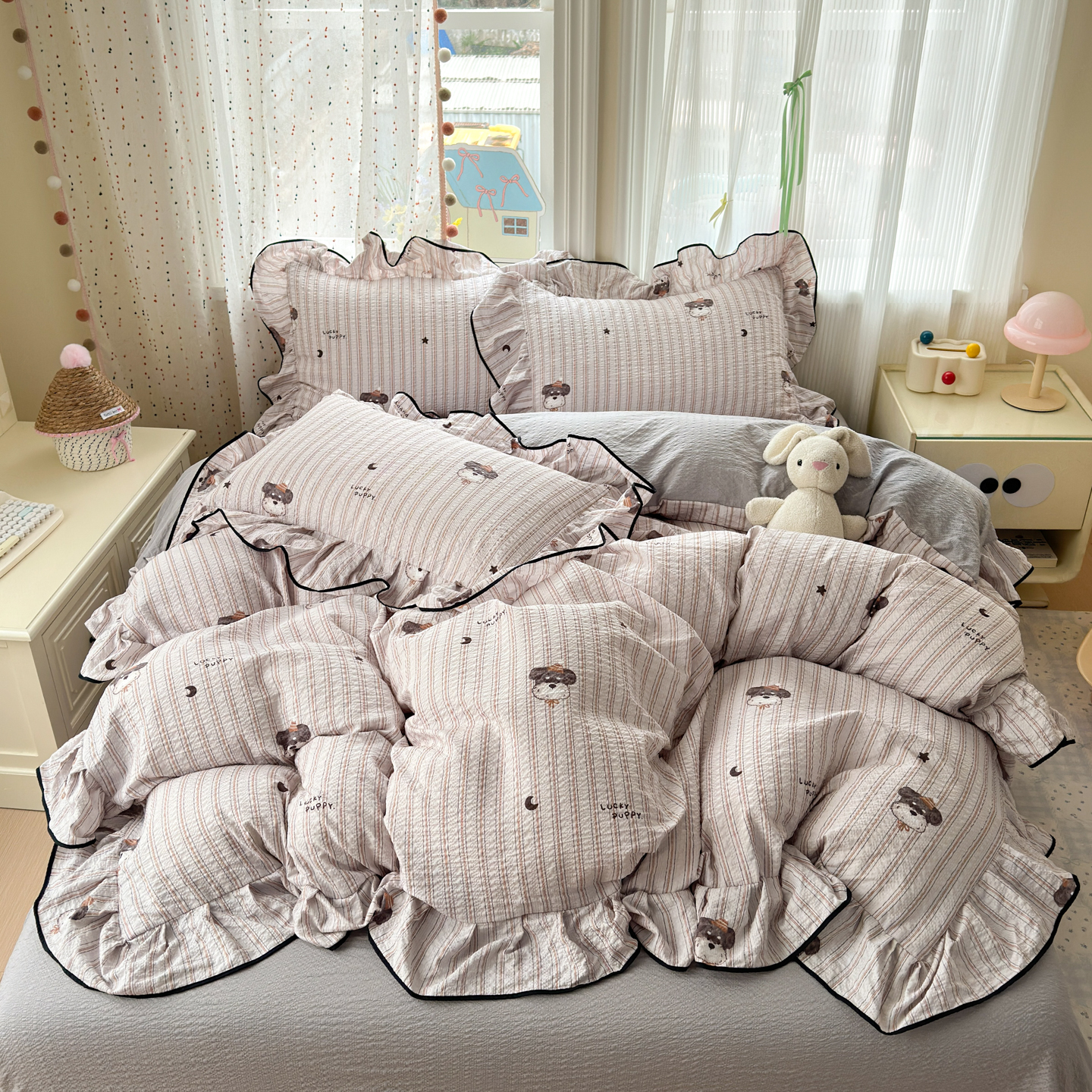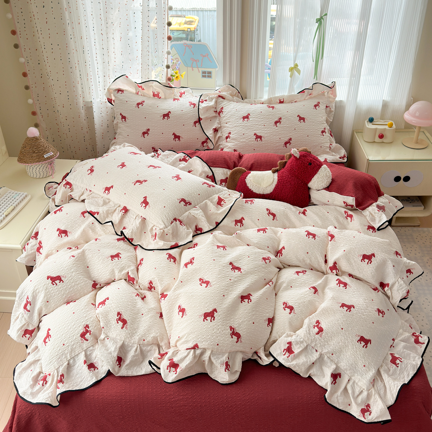 (总)德比尔斯 2026新款小清新110g高品质直播热卖款A类木耳花边泡芙棉四件套,爱心草莓,安妮小兔,鸿运小马,蝴蝶,浆果,可爱熊猫,马上有钱,奶酪星宝,轻蕊,手绘草莓,条纹狗,小马派对,樱桃小猫,云朵