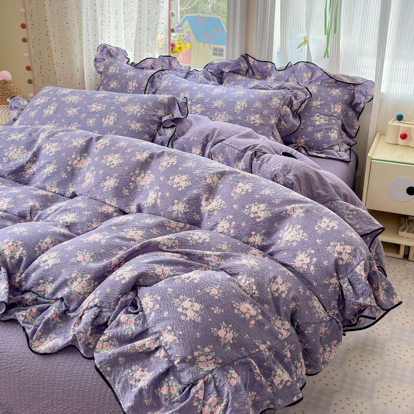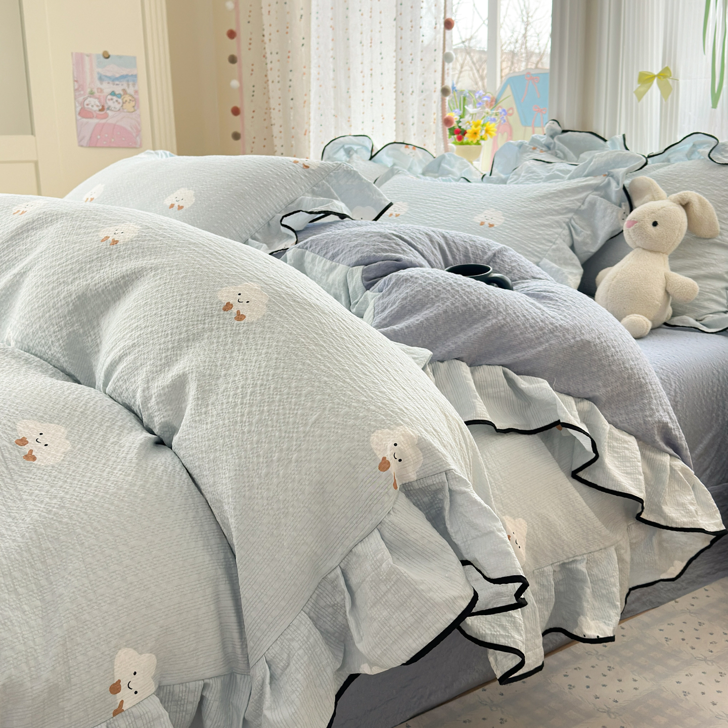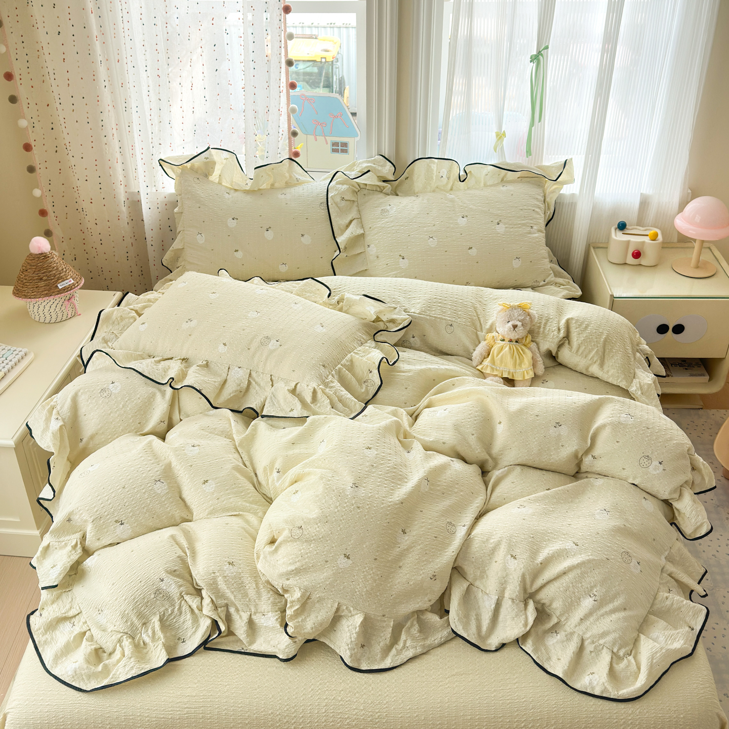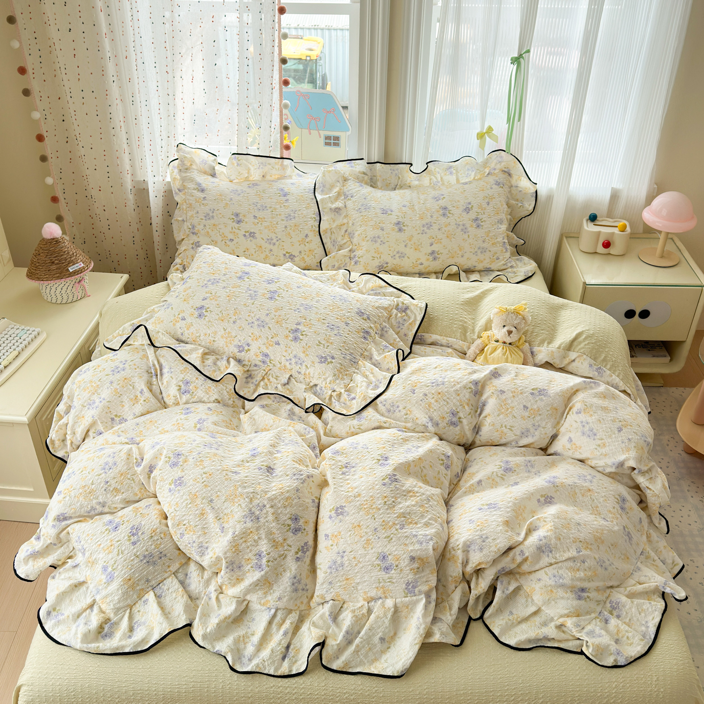 商品名称:(总)德比尔斯 2026新款小清新110g高品质直播热卖款A类木耳花边泡芙棉四件套