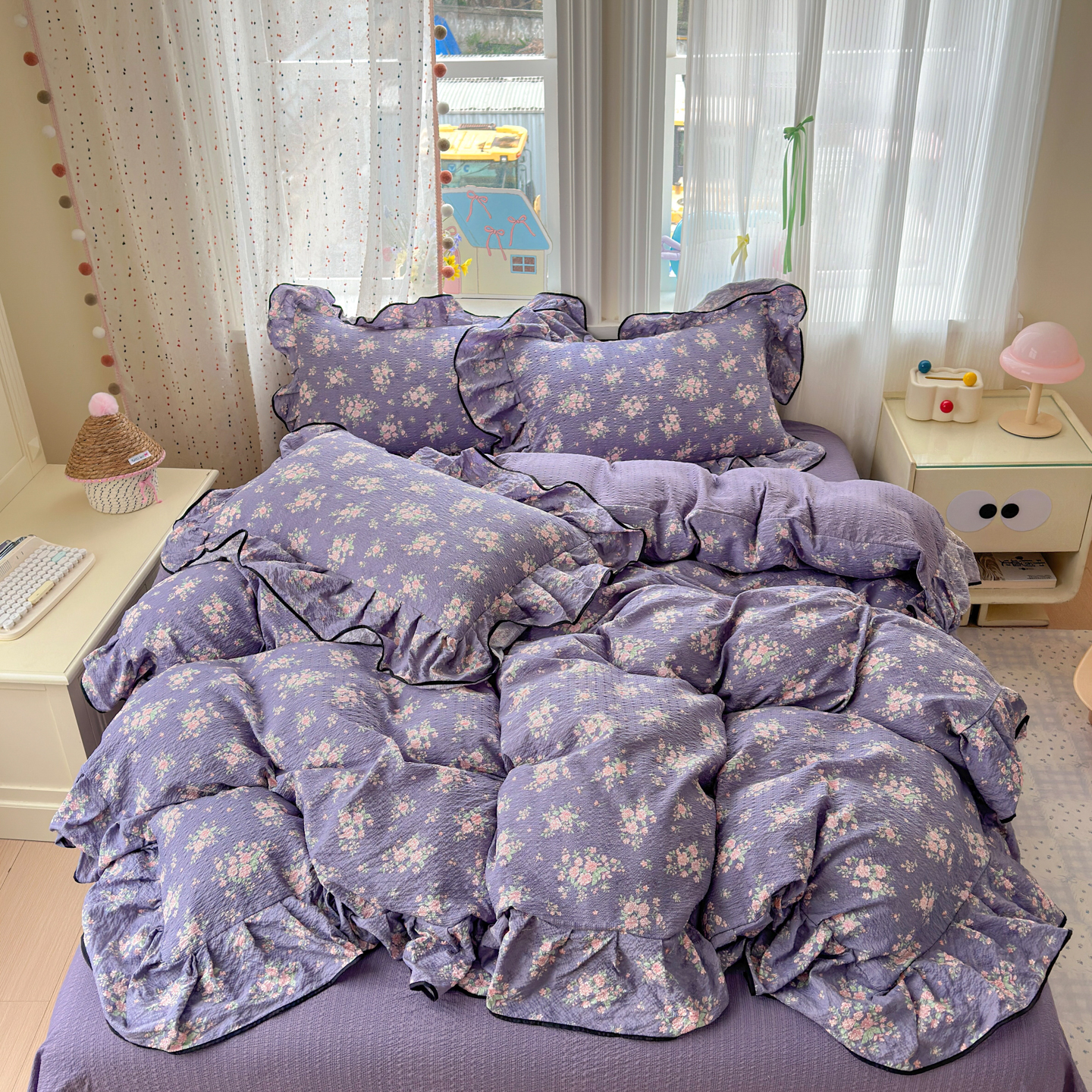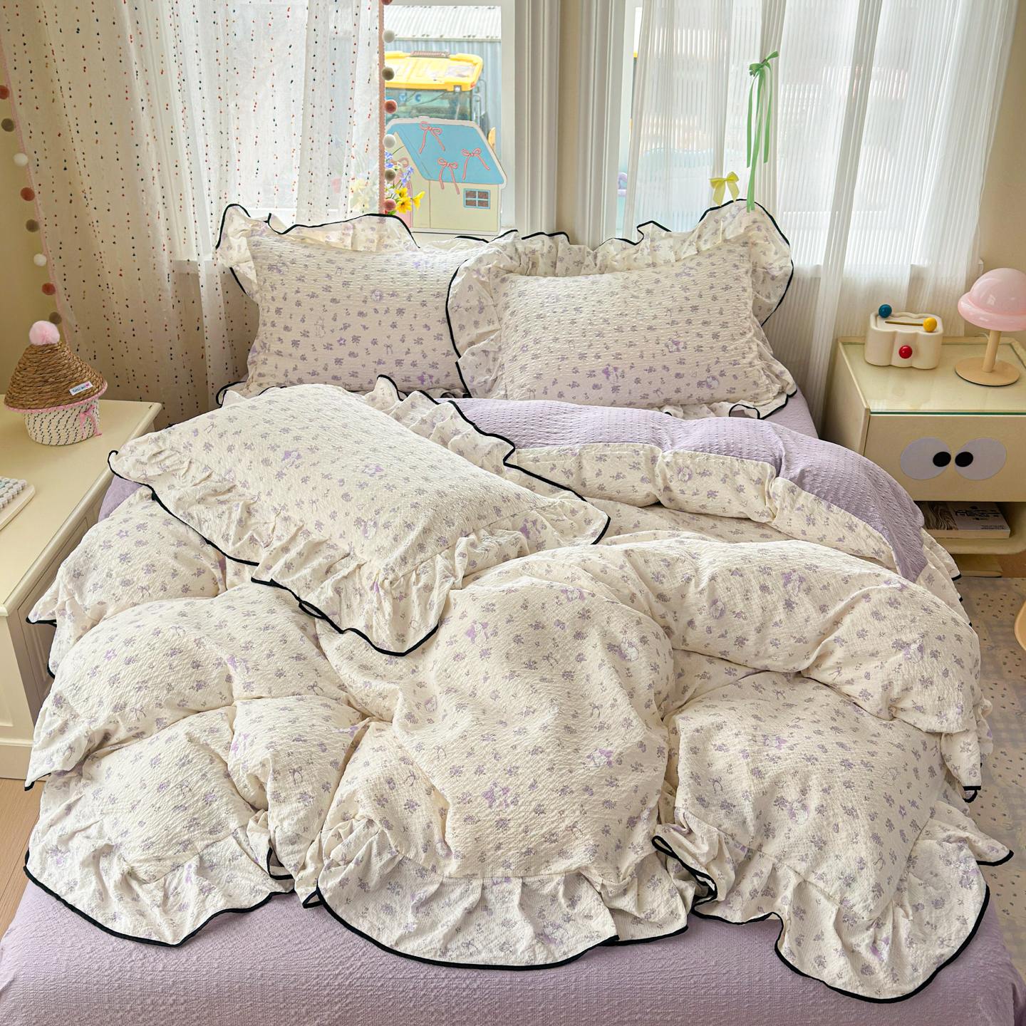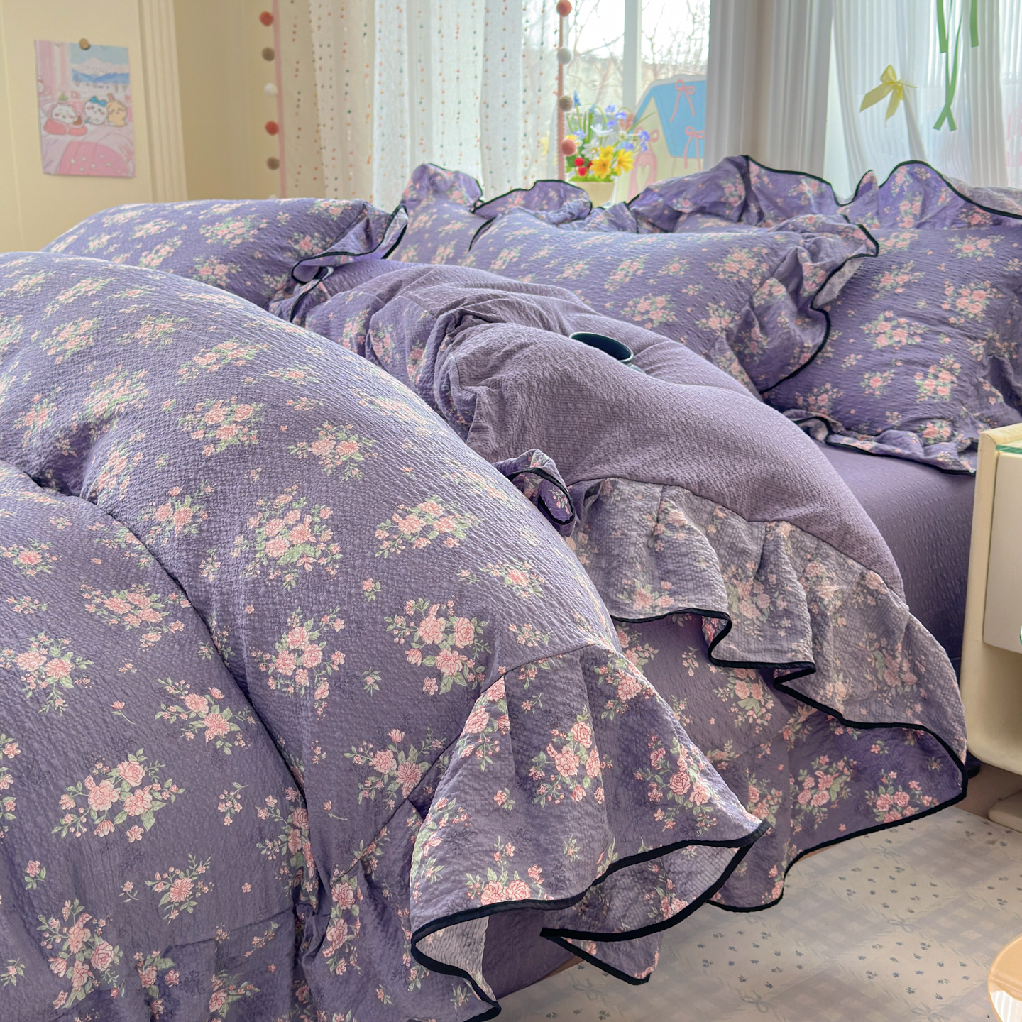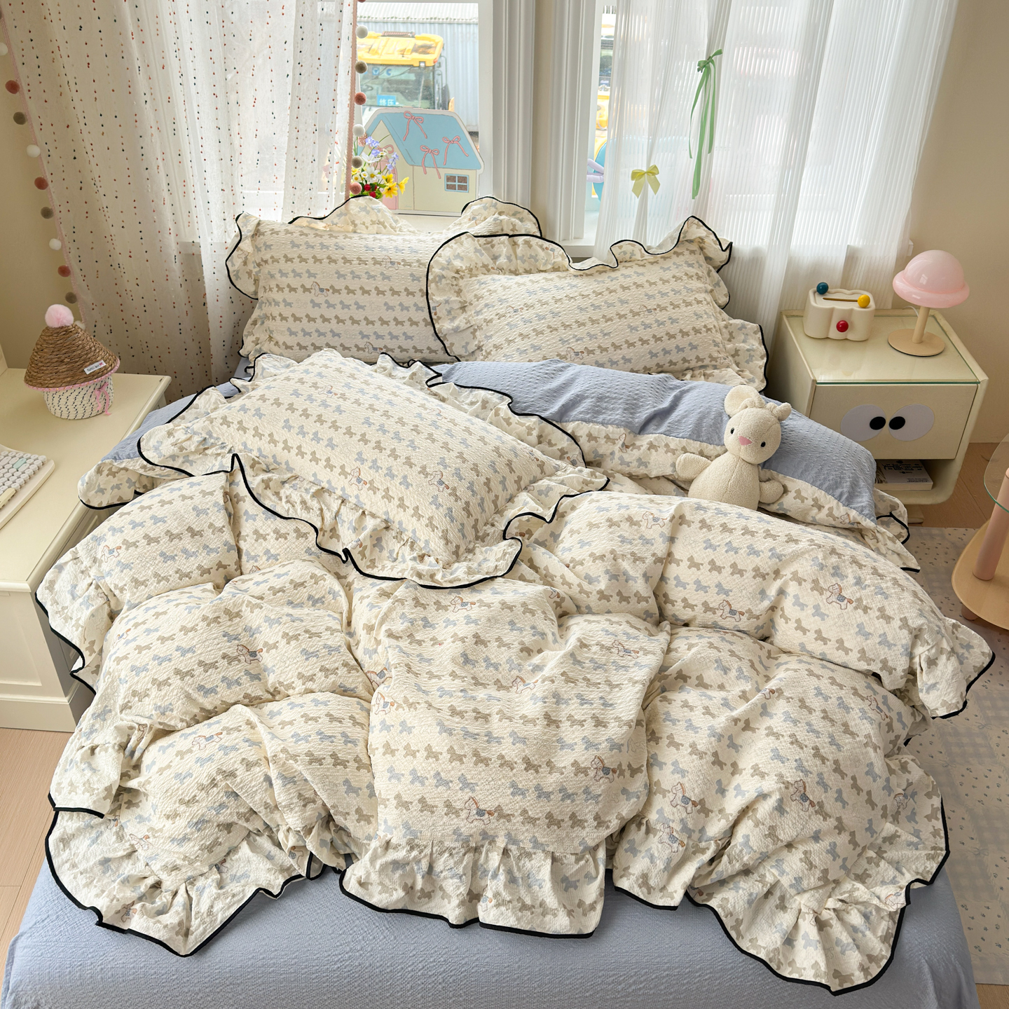 商品名称:(总)德比尔斯 2026新款小清新110g高品质直播热卖款A类木耳花边泡芙棉四件套