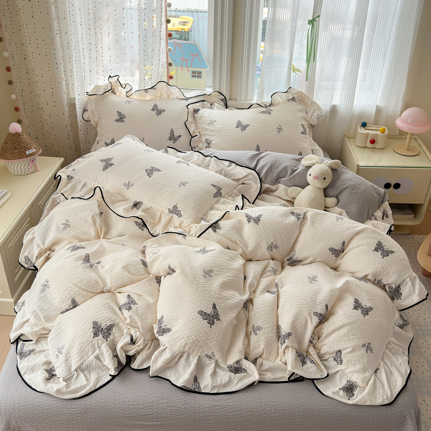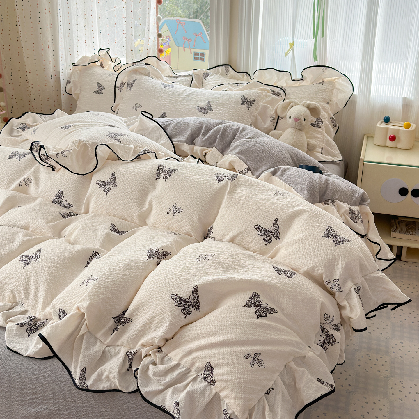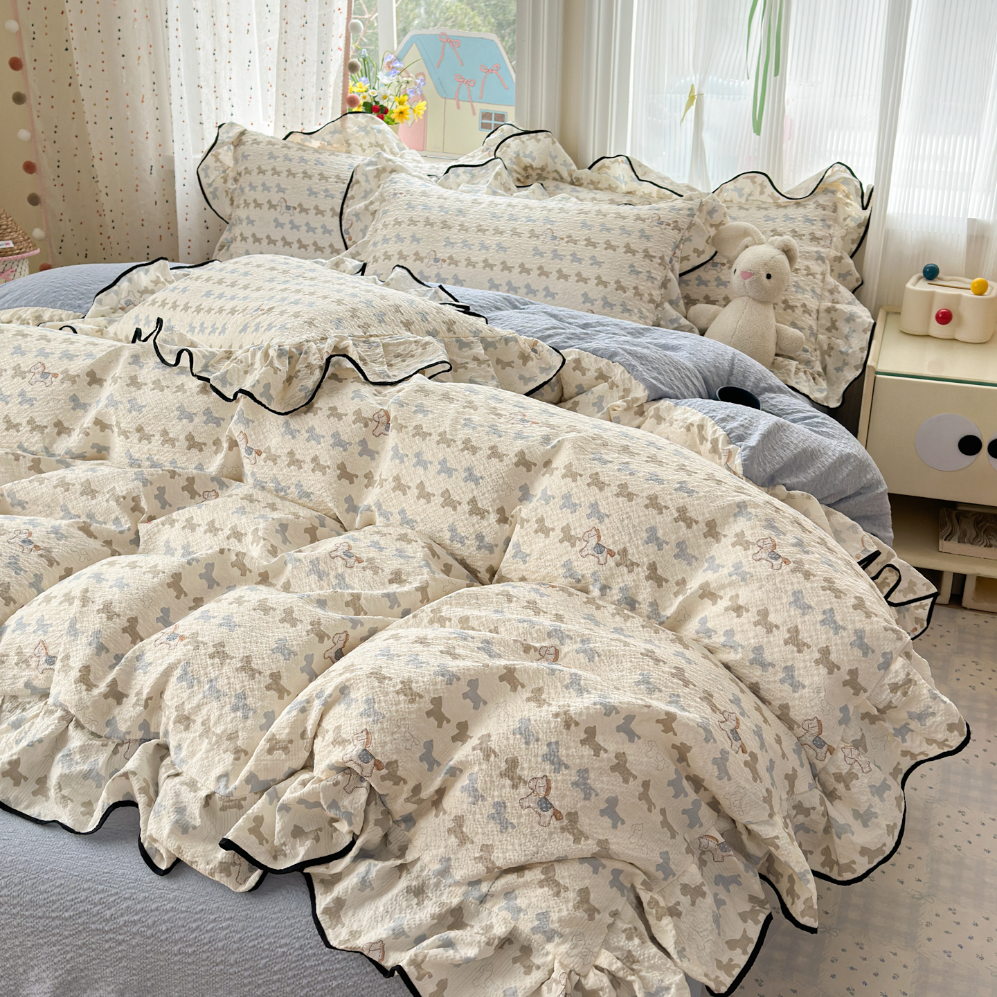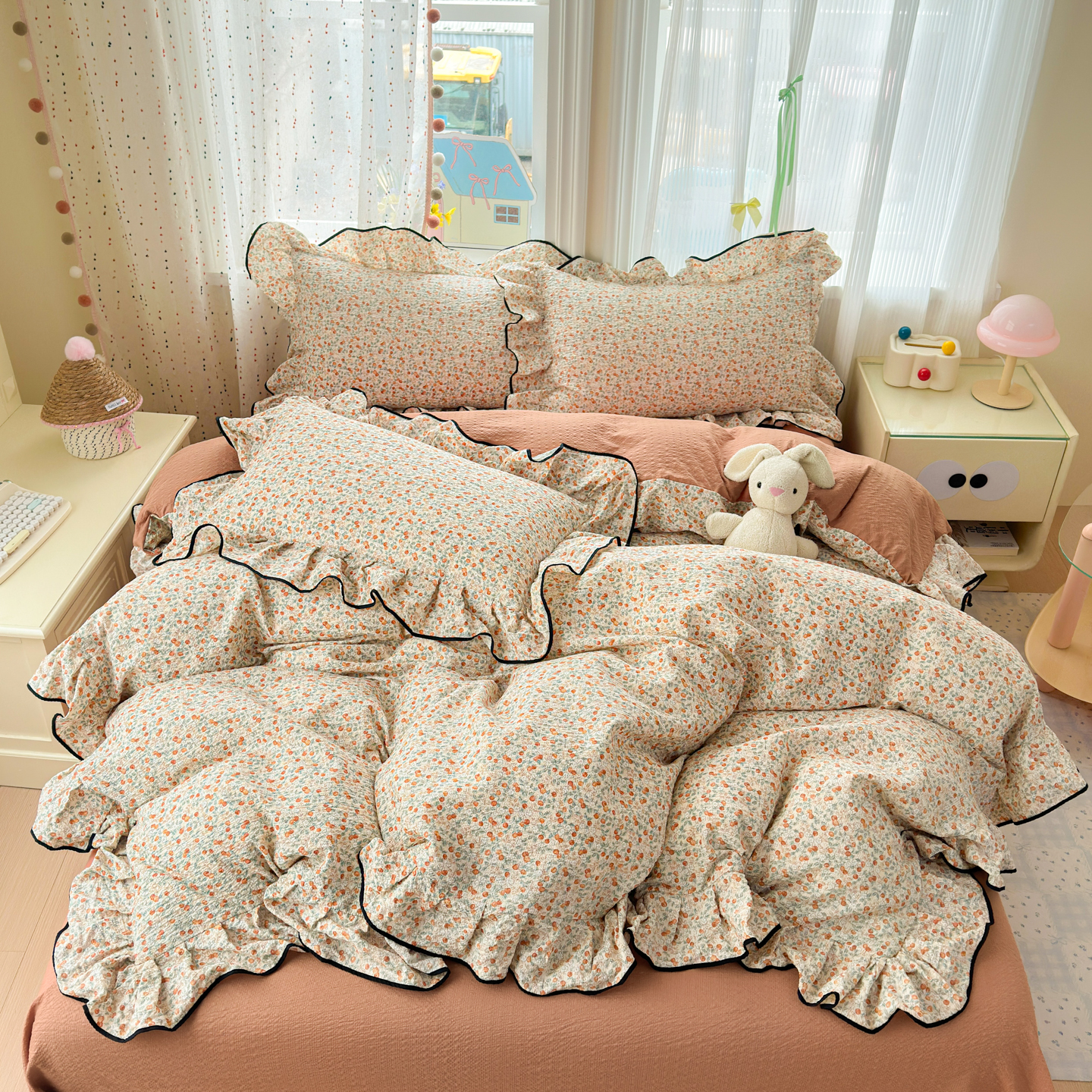 商品名称:(总)德比尔斯 2026新款小清新110g高品质直播热卖款A类木耳花边泡芙棉四件套