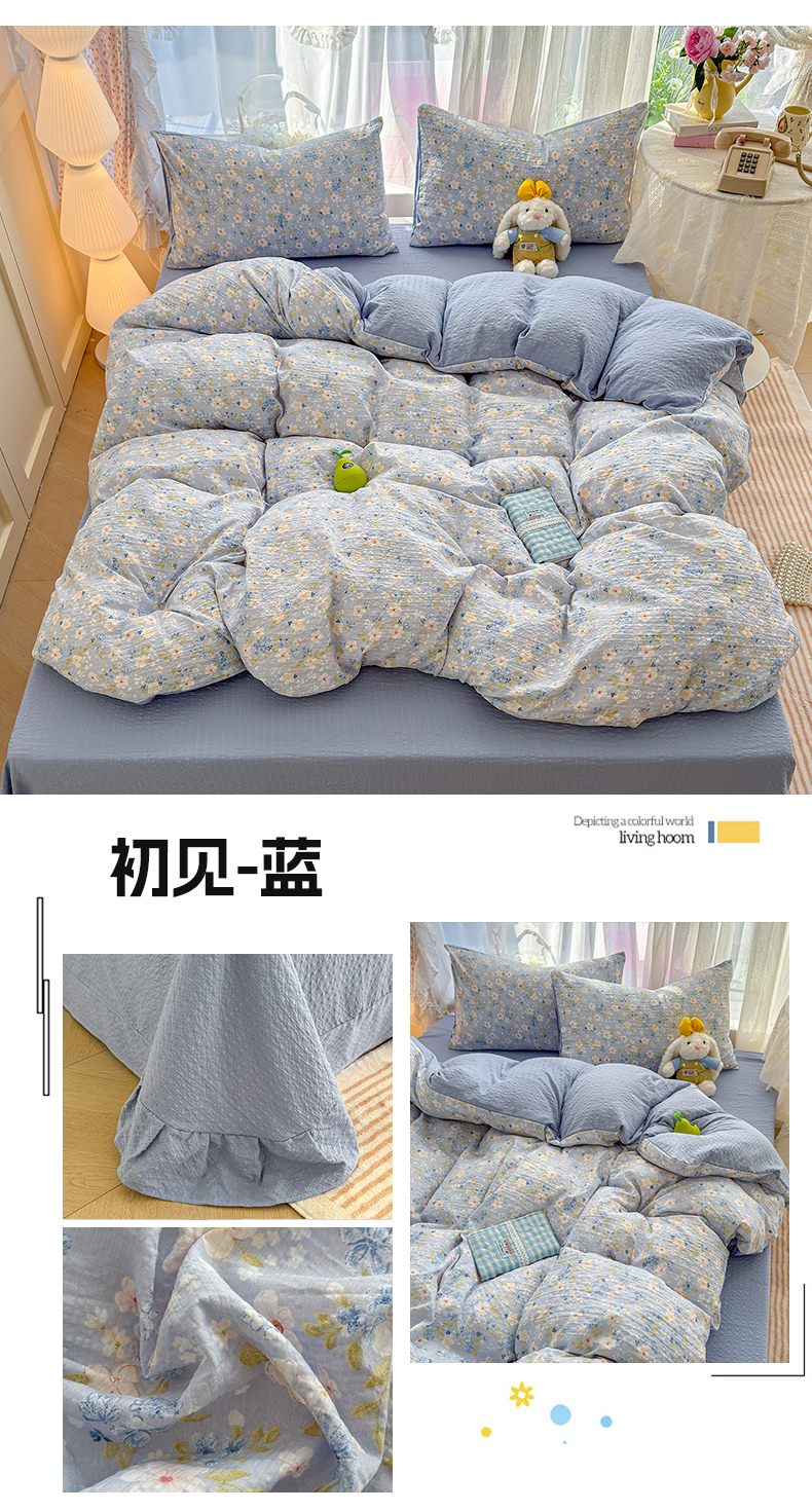 铺尚美家纺 2026春夏新品高克重A类泡芙纱泡泡皱皱纱四件套 紫色花园