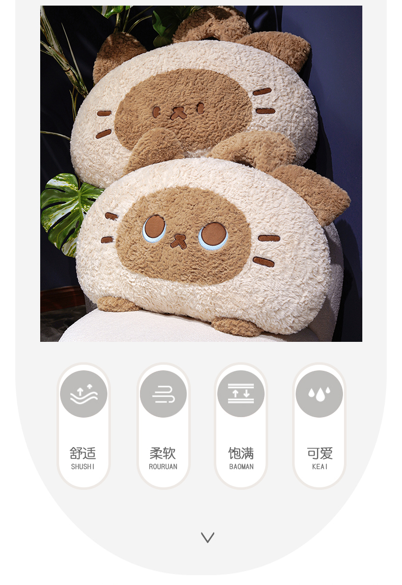 (总)仟亿莱 2026新款面包歪耳暹罗猫拥抱式腰靠,豆眼暹罗,大眼暹罗