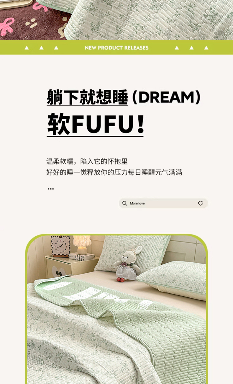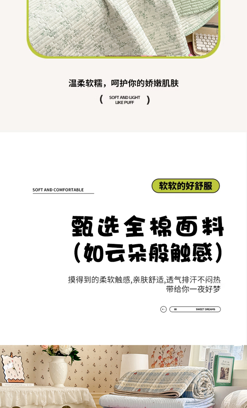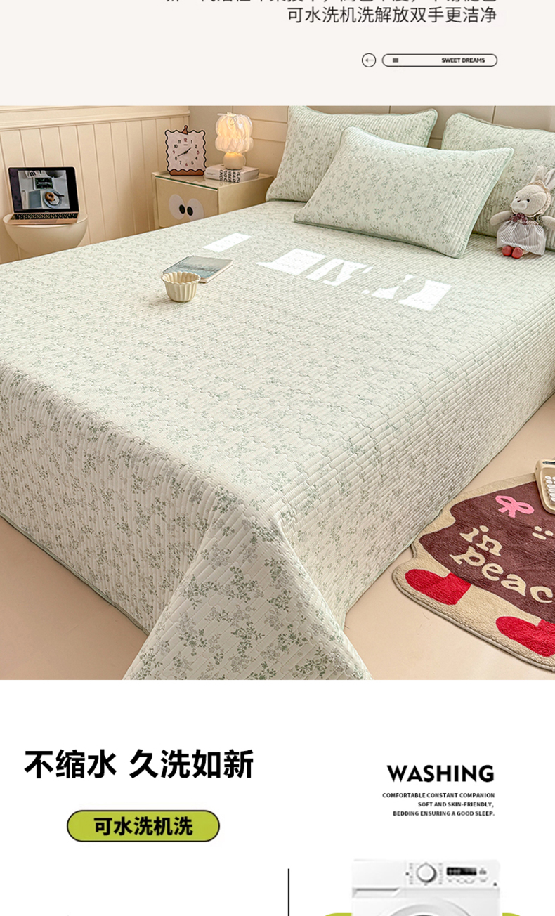 • 91家纺网 家纺一手货源 找家纺 康纳利 2026新款全棉床盖学生夹棉薄款床盖床垫三件套四季通用 春天里