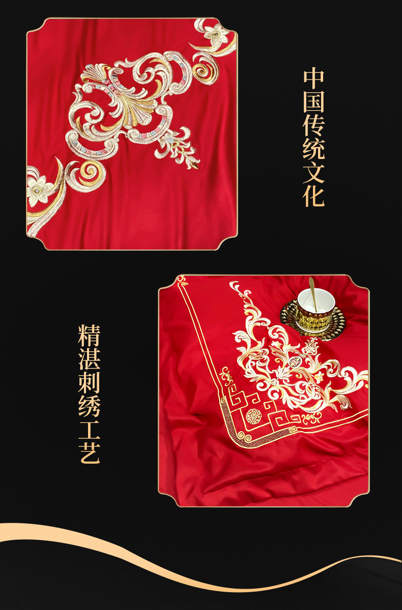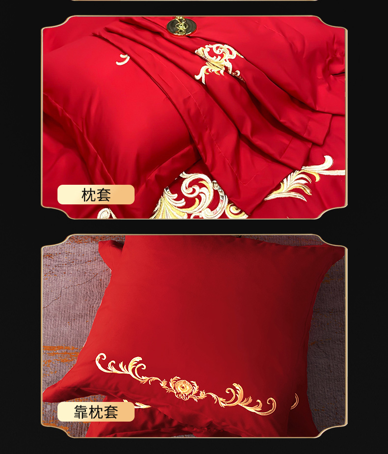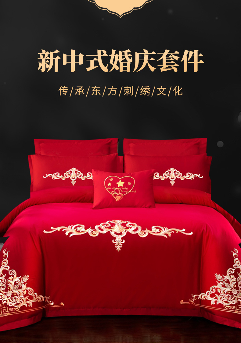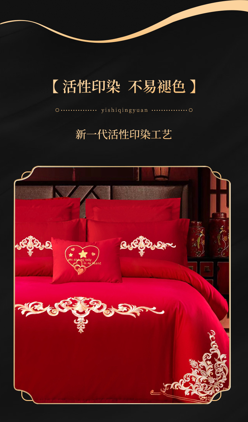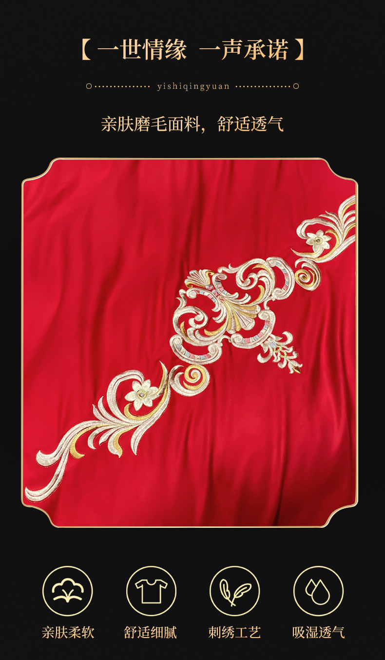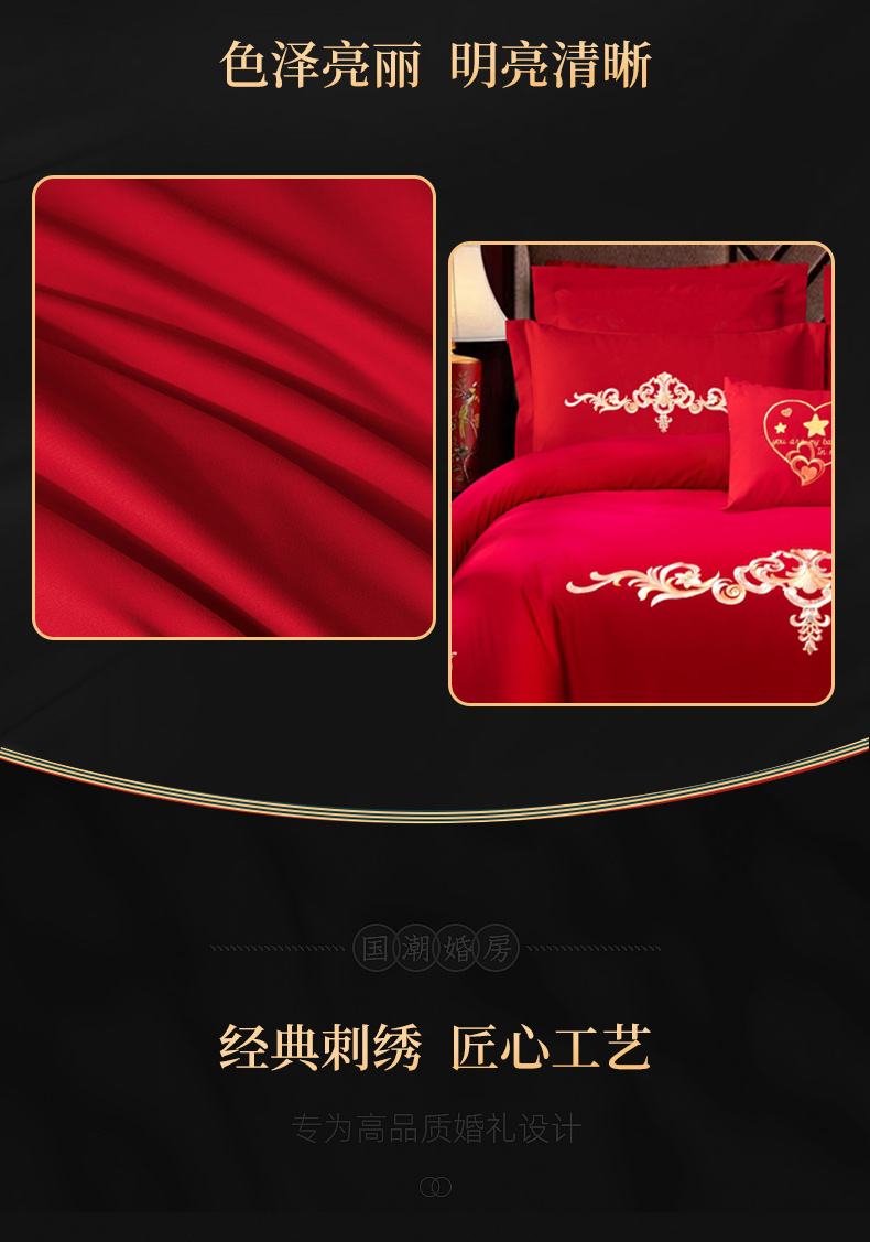 当前位置: 91家纺网 > 商品网购 > 床品套件 > 四件套 > 婚庆四件套 > 慕她家纺 2026年磨毛亲肤棉婚庆四件套大红色刺绣结床上用品 米兰风情