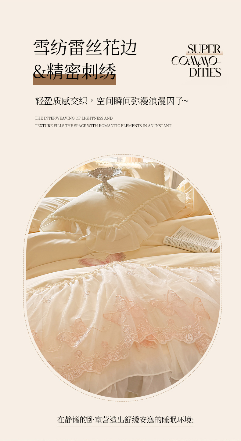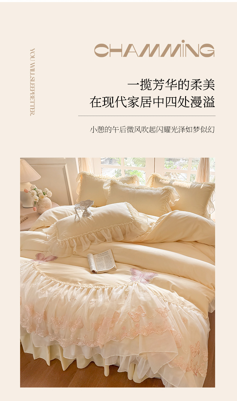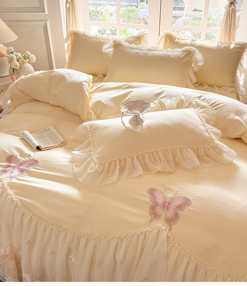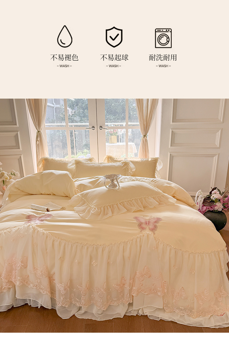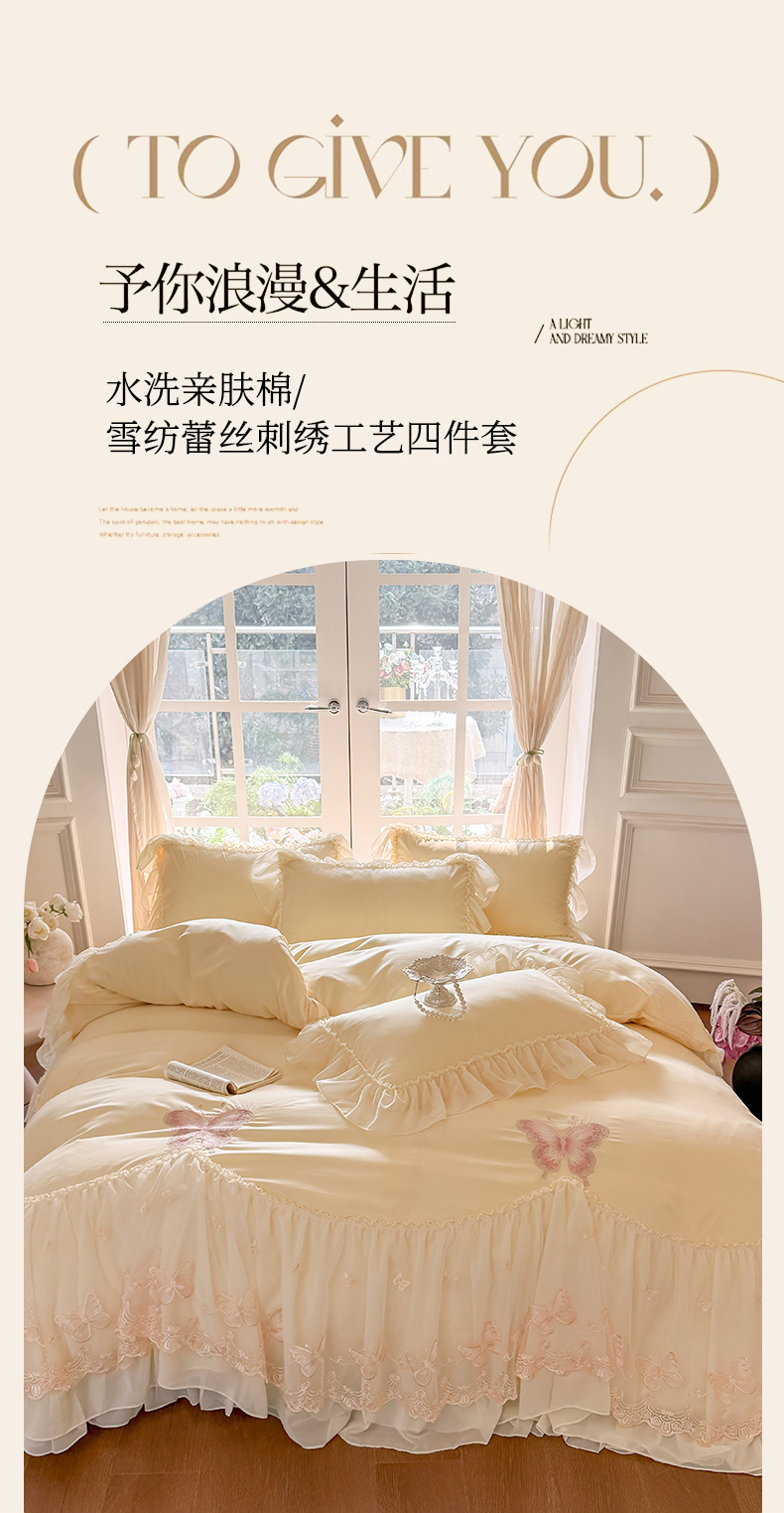 当前位置: 91家纺网 > 商品网购 > 床品套件 > 四件套 > 水洗棉四件套 > 富盛家纺 2026新款水洗亲肤棉雪纺蕾丝刺绣公主风韩版四件套-迷迭香 迷迭香—黄
