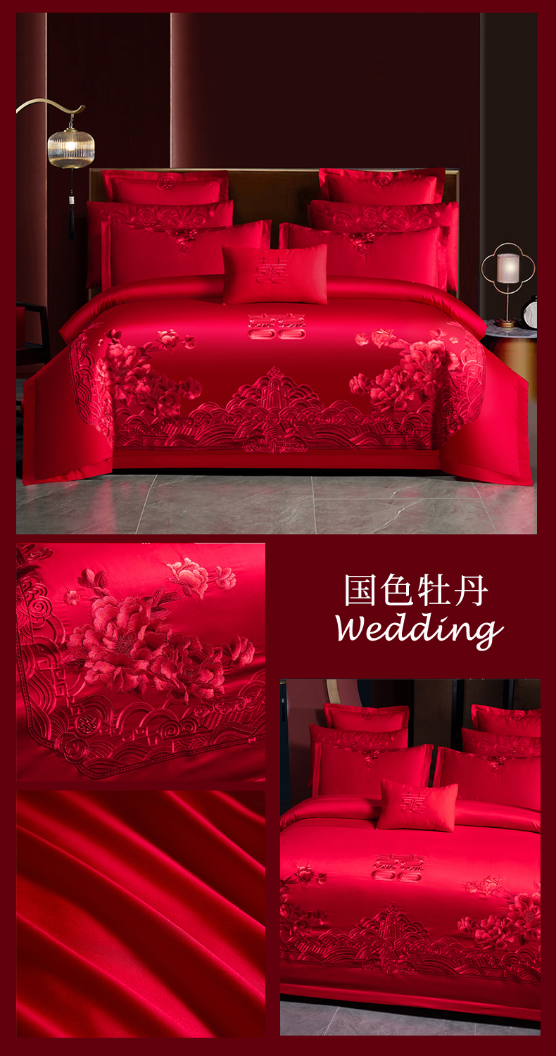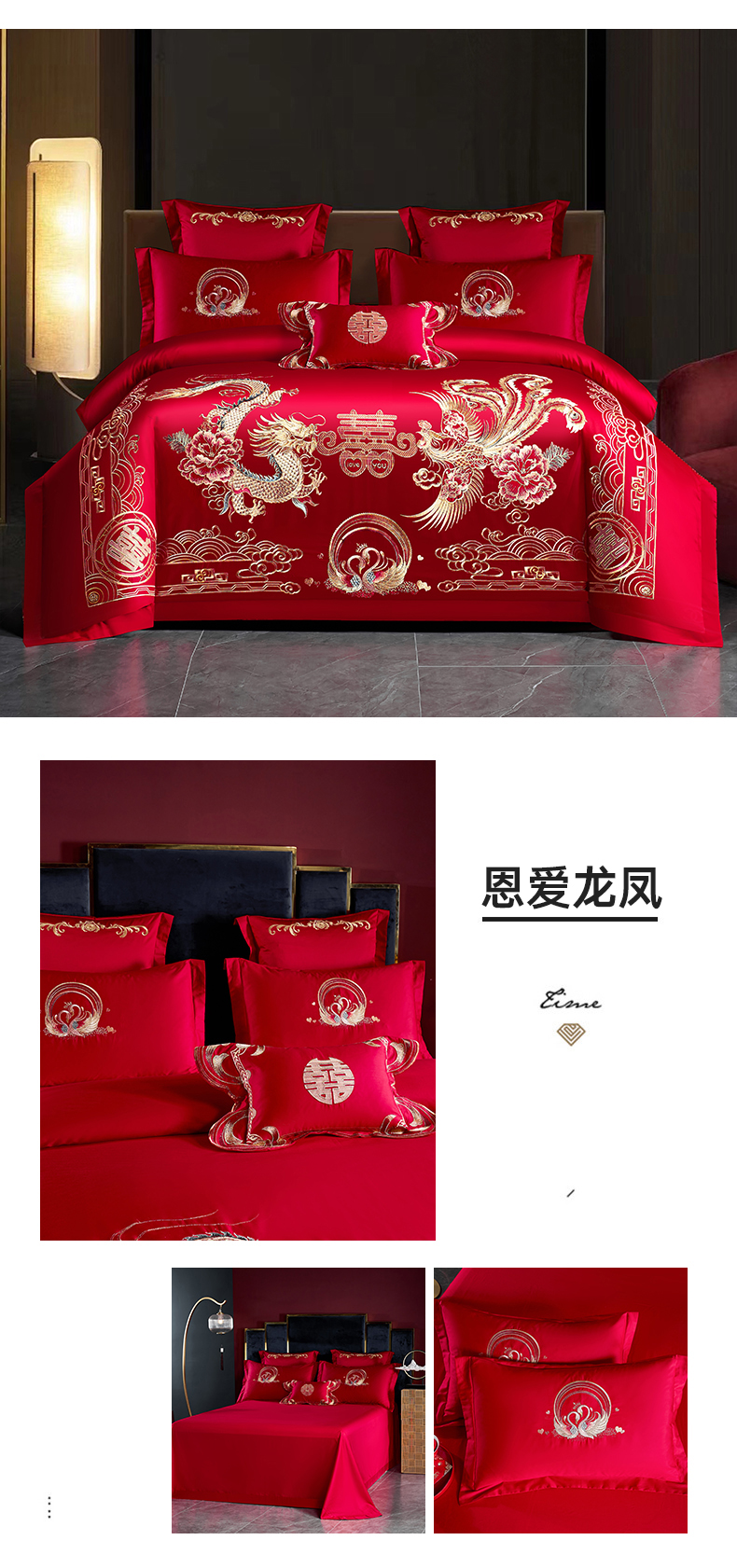 当前位置: 91家纺网 > 商品网购 > 床品套件 > 四件套 > 婚庆四件套 > 慕她家纺 2026年磨毛亲肤棉婚庆四件套大红色刺绣结床上用品 龙凤喝彩