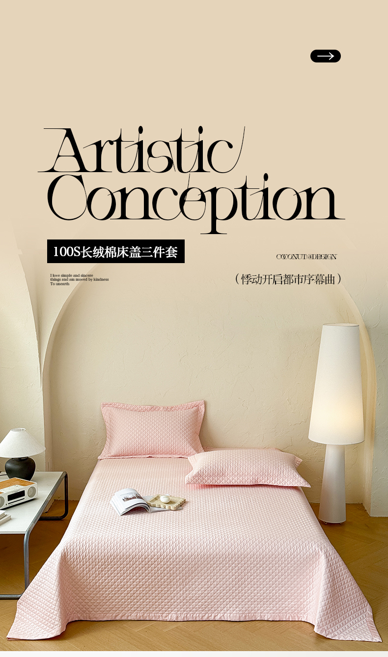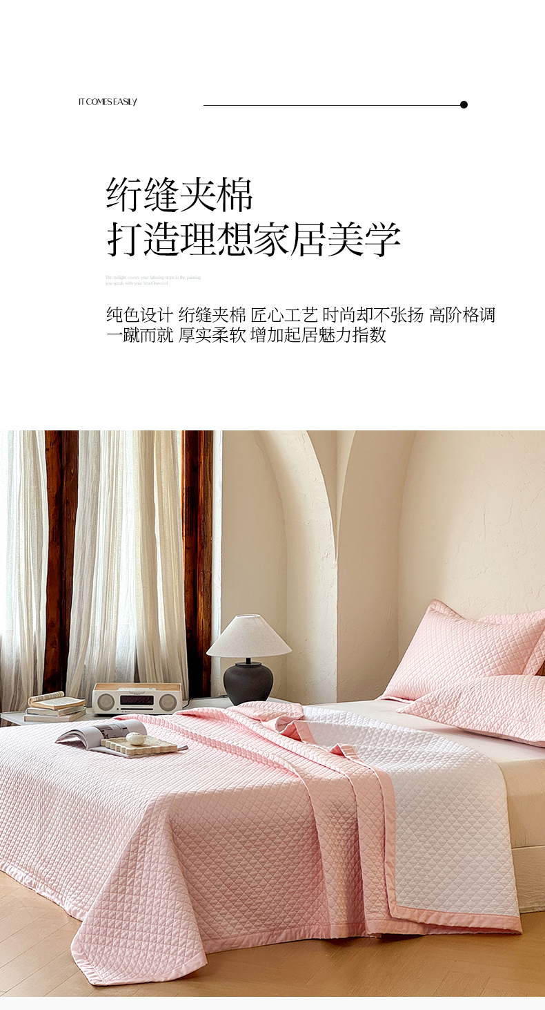 法芙娜家纺 2026新款100S长绒棉床盖三件套 浅粉