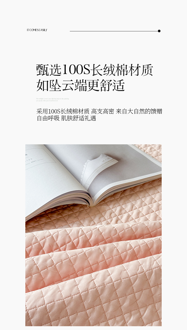 商品名称:法芙娜家纺 2026新款100S长绒棉床盖三件套 浅粉