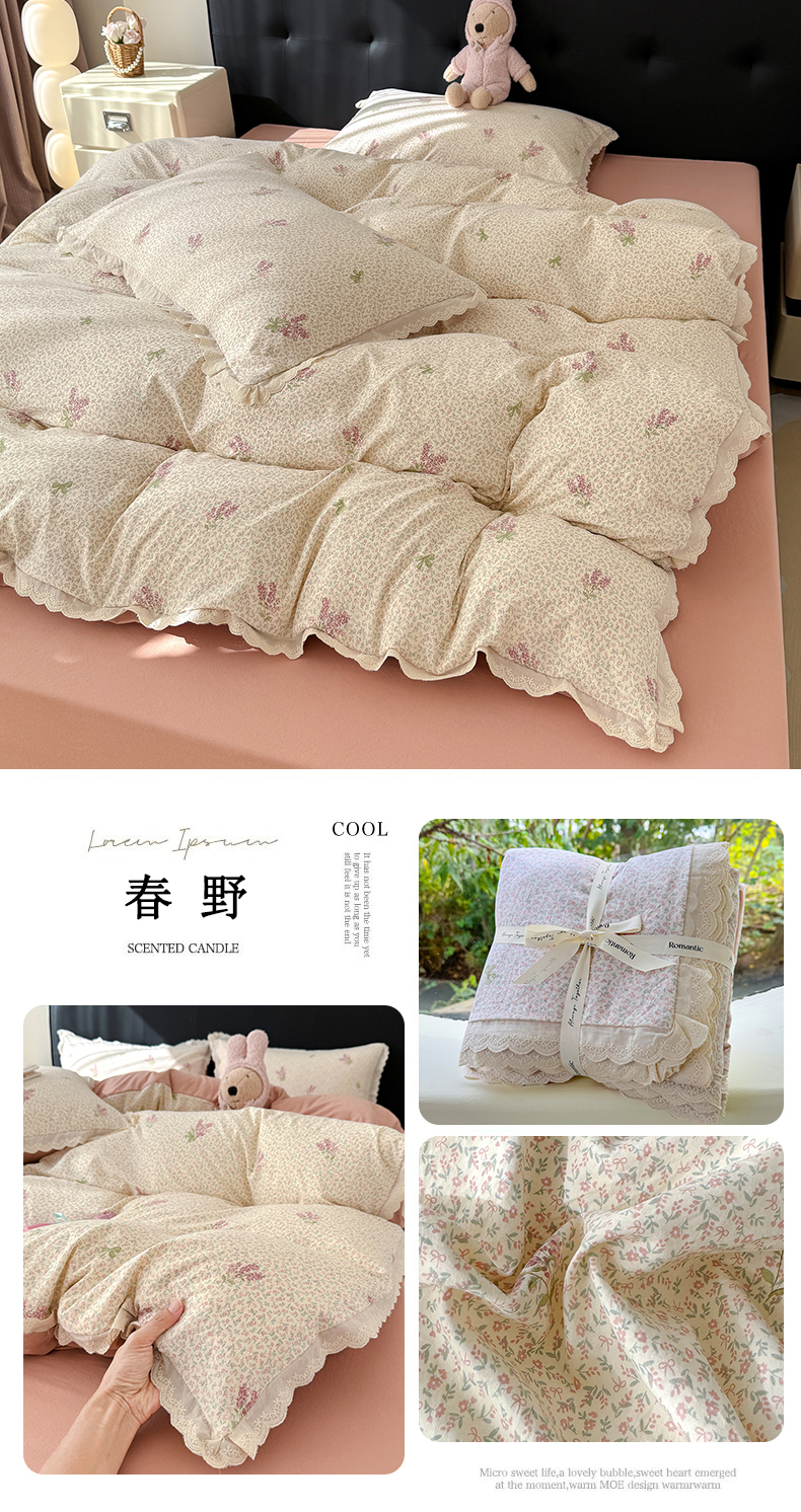 商品名称:(总)铺尚美家纺 2026新款田园韩版花边款小碎花古法水洗仿棉A类云感棉四件套