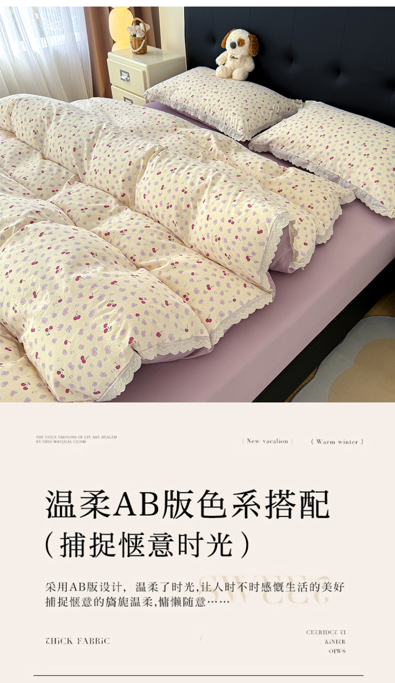 商品名称:铺尚美家纺 2026新款田园韩版花边款小碎花古法水洗仿棉A类云感棉四件套 花间梦