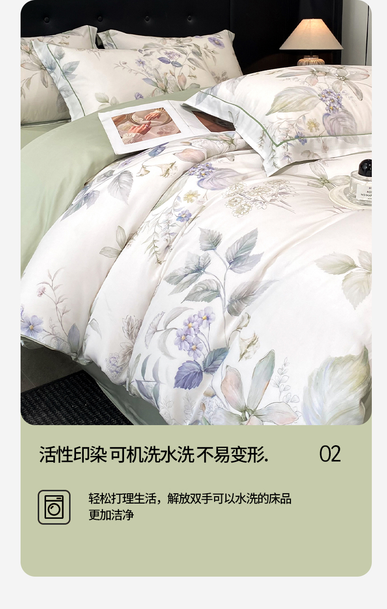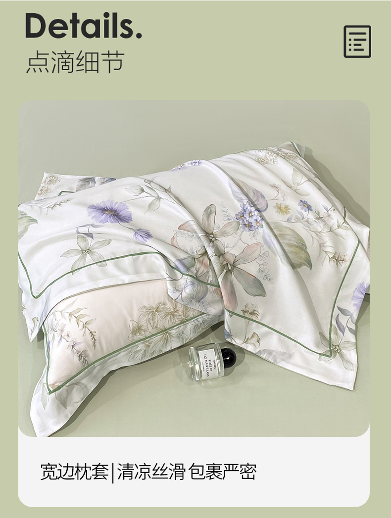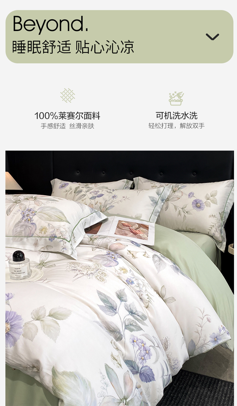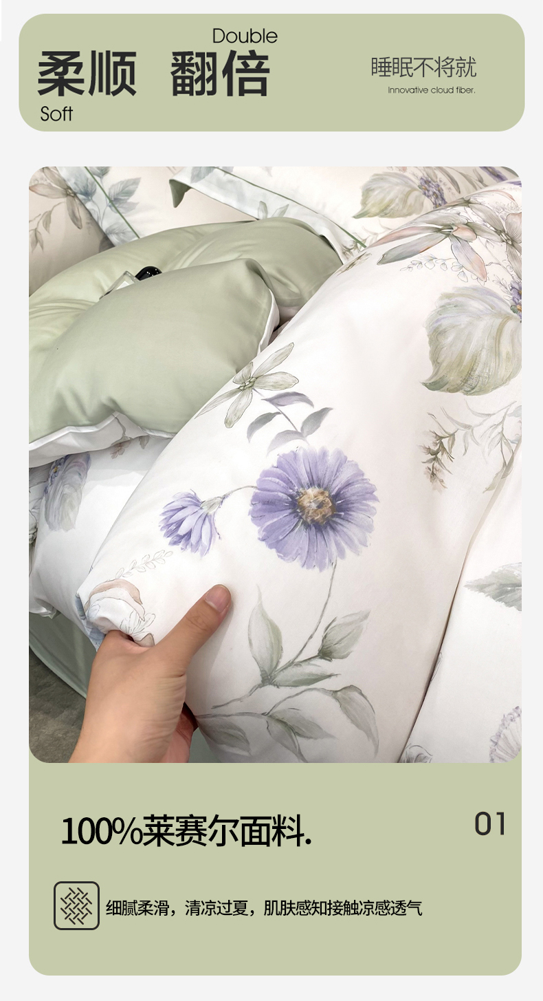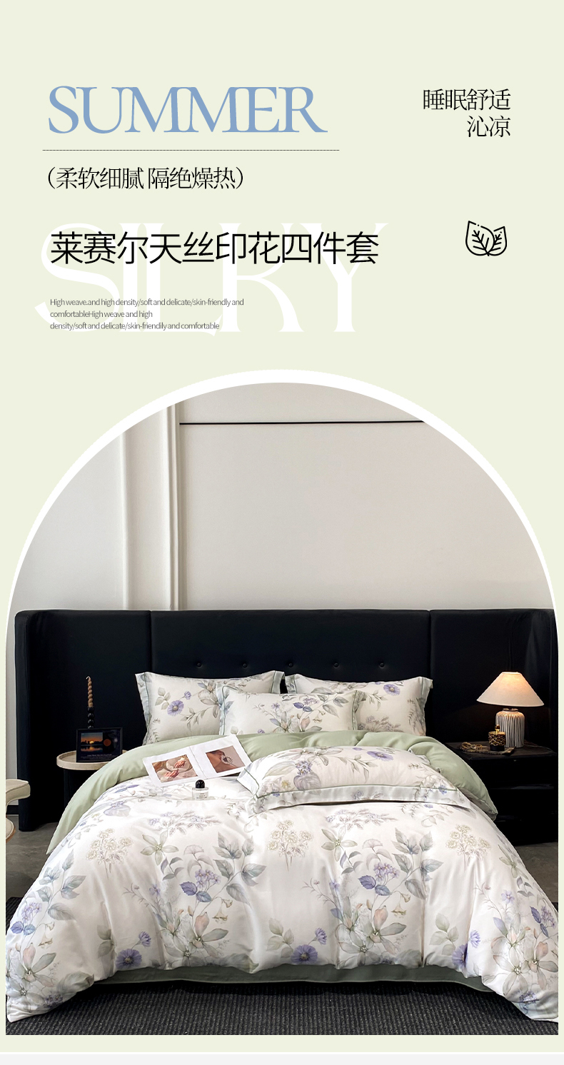 商品名称:启航家居 2026新款春夏天丝莱赛尔数码印花四件套 春溢然绿