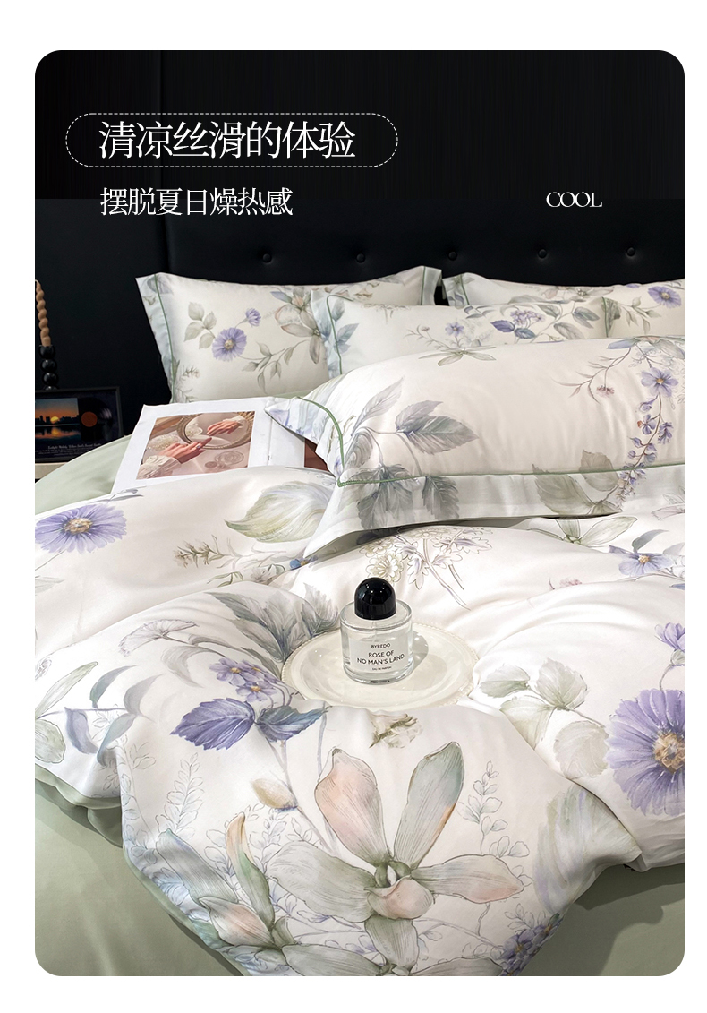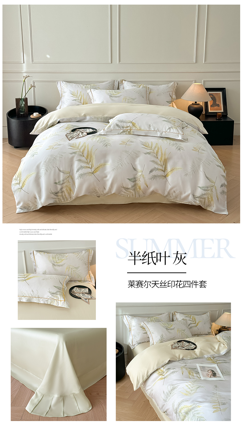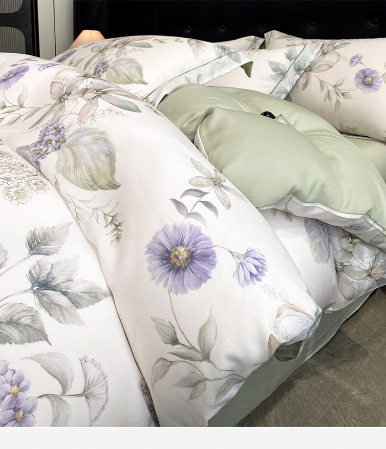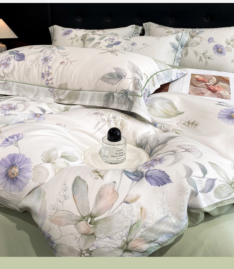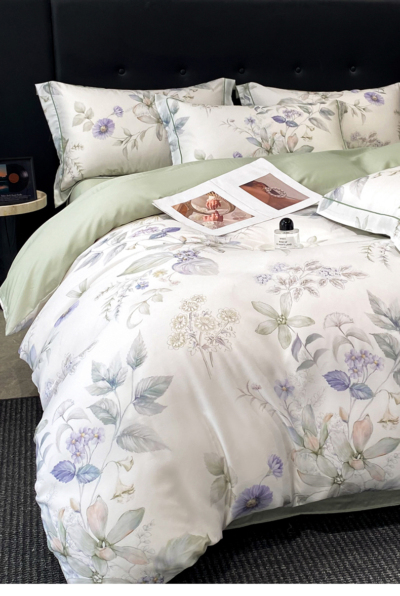 (总)启航家居 2026新款春夏天丝莱赛尔数码印花四件套,花颜外兰,半纸叶灰,池禾韵兰,春溢然兰,春溢然绿,花颜外粉,花园派对沙色,梦境之翼兰,梦境之翼绿,烟花间粉,烟花间绿,樱岛春漫粉,云间素语绿,云间素语紫,早春的树蓝,早春的树紫,栀花语粉,紫陌紫