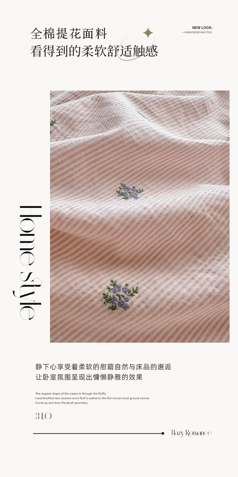 当前位置: 91家纺网 > 商品网购 > 床品套件 > 四件套 > 提花四件套 > 寐居家纺 2026新款舒适全棉水洗棉提花四件套 提花-铃兰粉