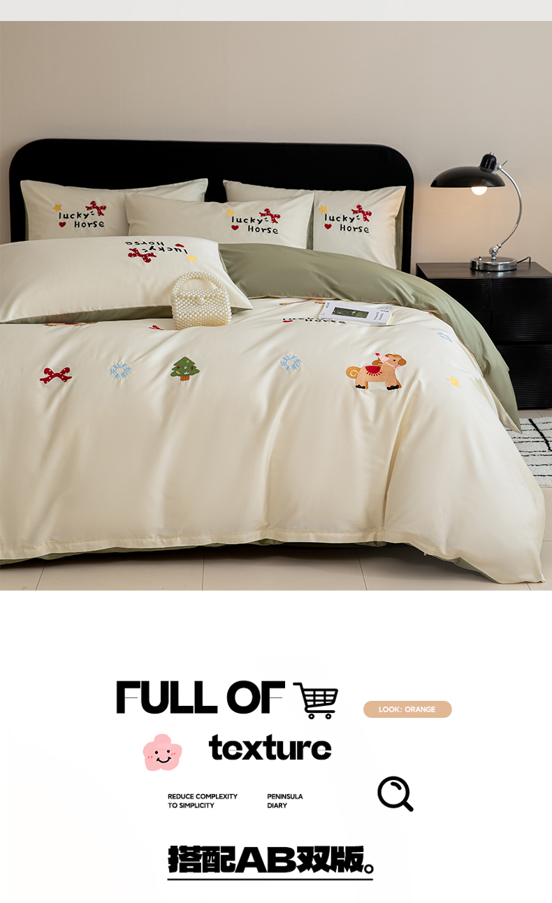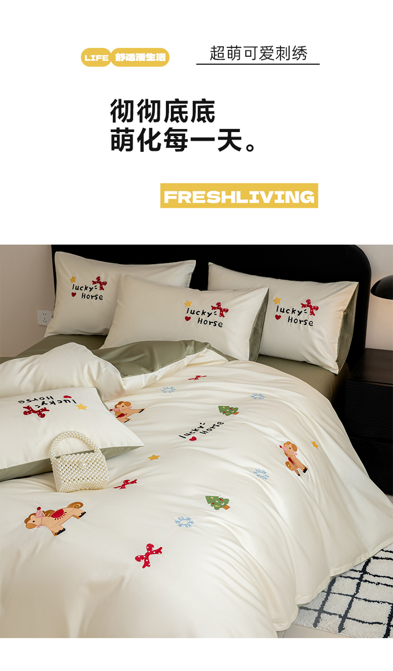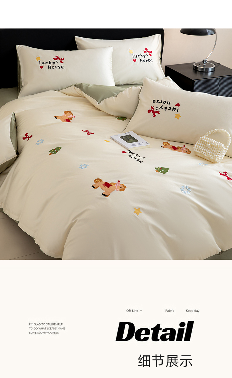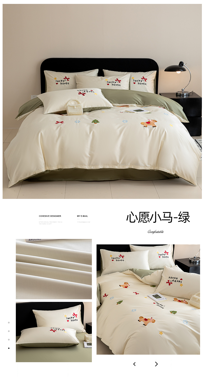 商品名称:沐辰 2026新款长绒棉50S纯棉满绣四件套 心愿小马-绿