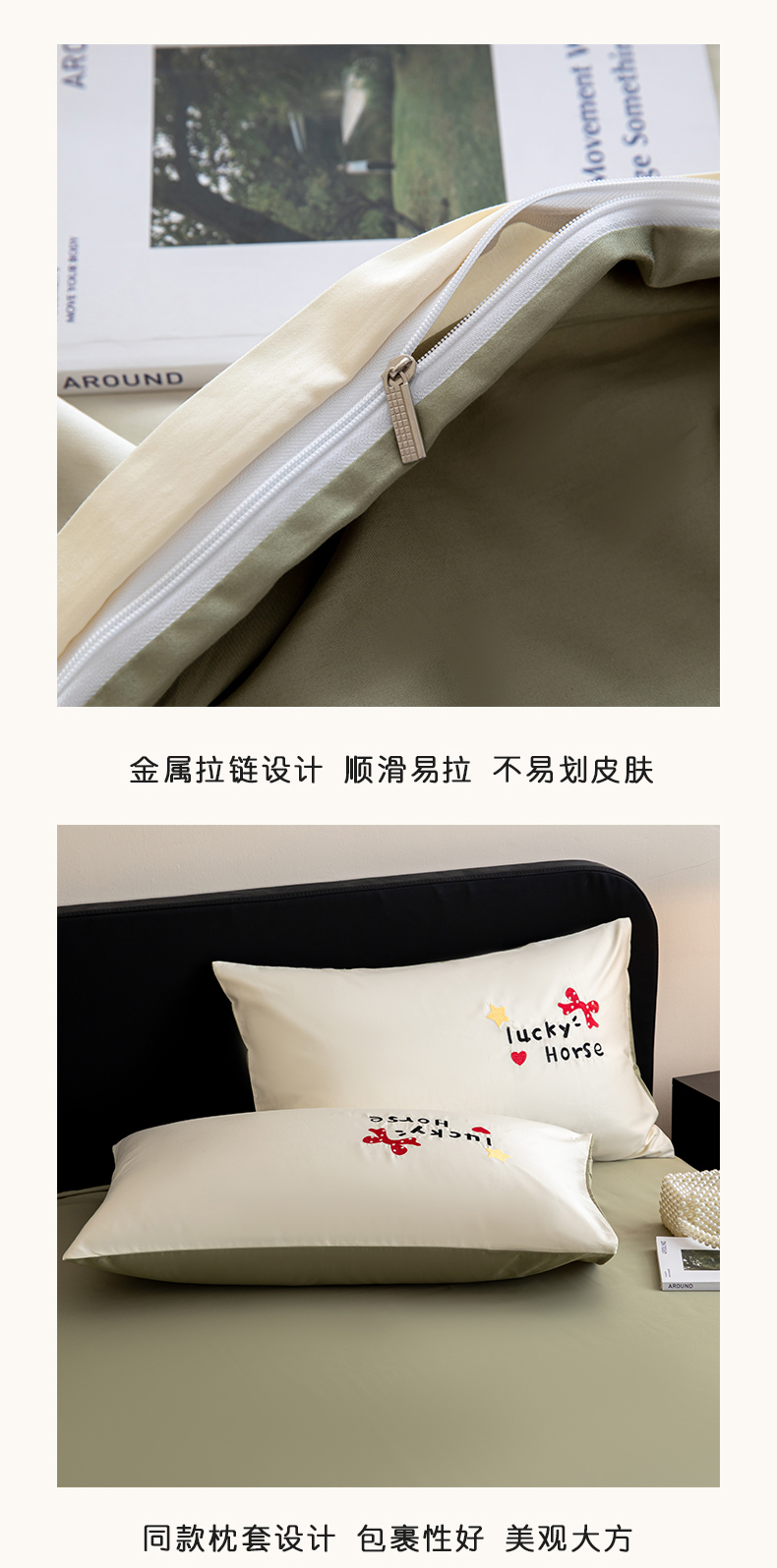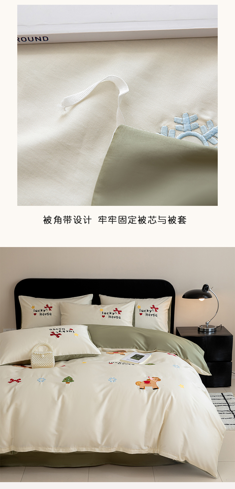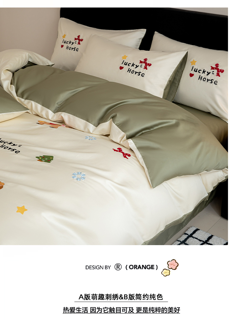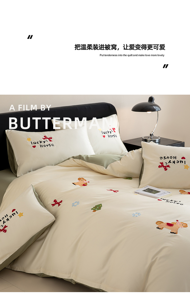 商品名称:沐辰 2026新款长绒棉50S纯棉满绣四件套 心愿小马-绿