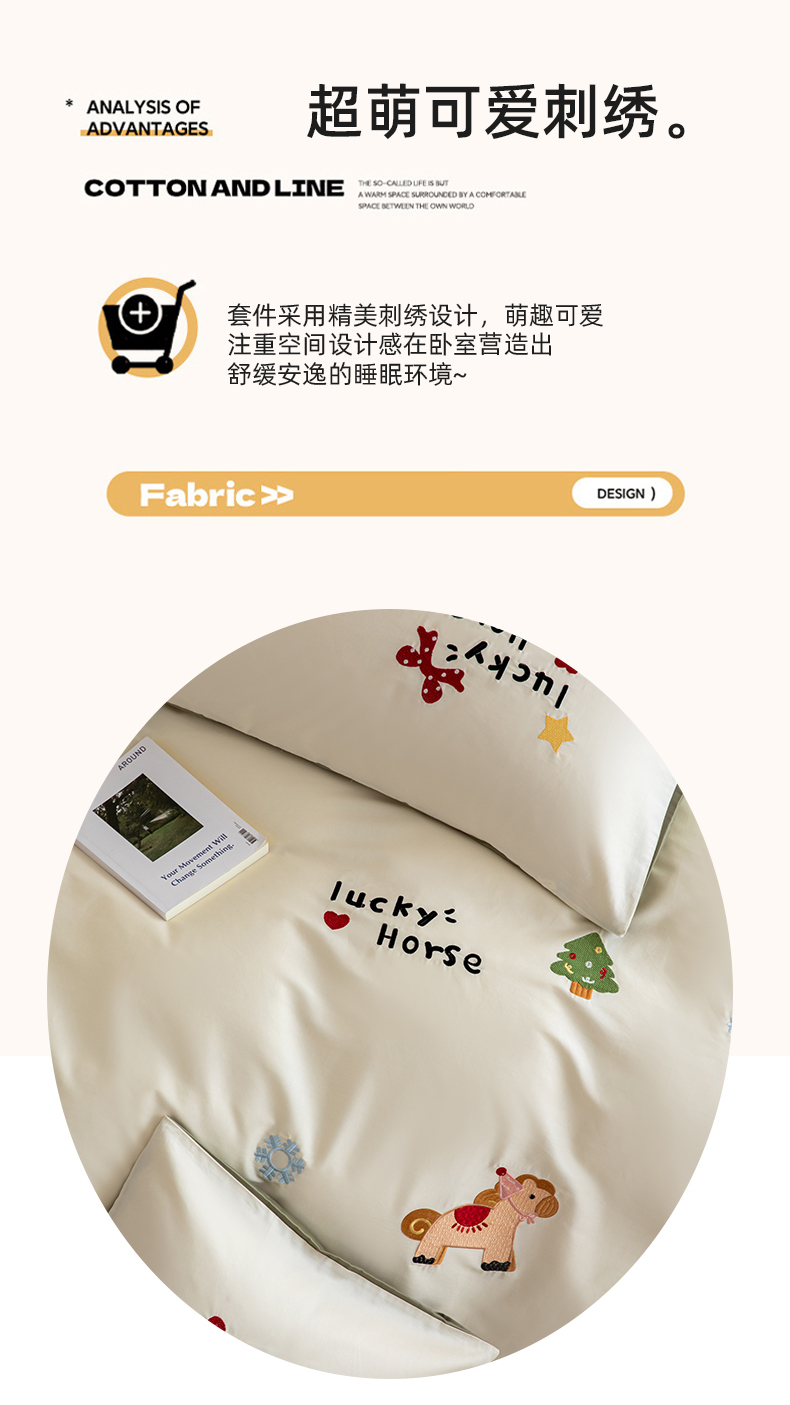 (总)沐辰 2026新款13070全棉纯棉印花四件套-萌趣,点点小马,动物城,好梦星星,伙伴,假日猫咪,开心马,马上有钱,小提琴兔兔