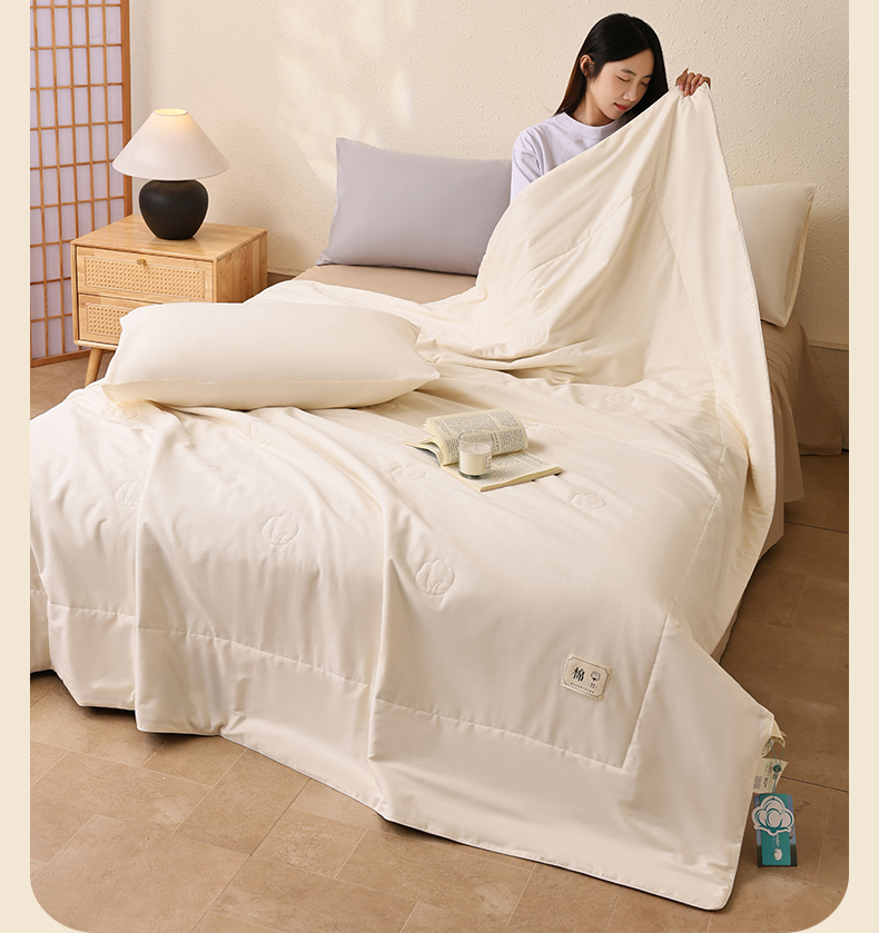 • 91家纺网 家纺一手货源 找家纺 (总)盛凡家纺 2026新款A类全棉双层纱大豆被四季款被子被芯冬被,白色