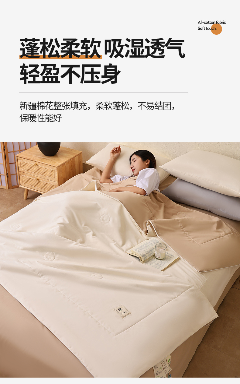当前位置: 91家纺网 > 商品网购 > 被子 > 夏被 > 盛凡家纺 2026新款A类133*72里外全棉100%棉花夏被四件套夏凉被空调被子被芯 茶白+奶咖