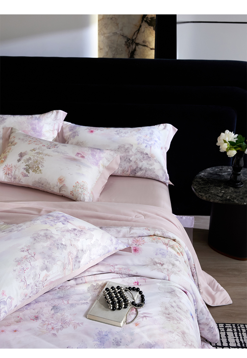 • 91家纺网 家纺一手货源 找家纺 慕梵家居 2026春夏新款100%莱赛尔天丝夏被空调被夏凉被四件套 早春的树-紫