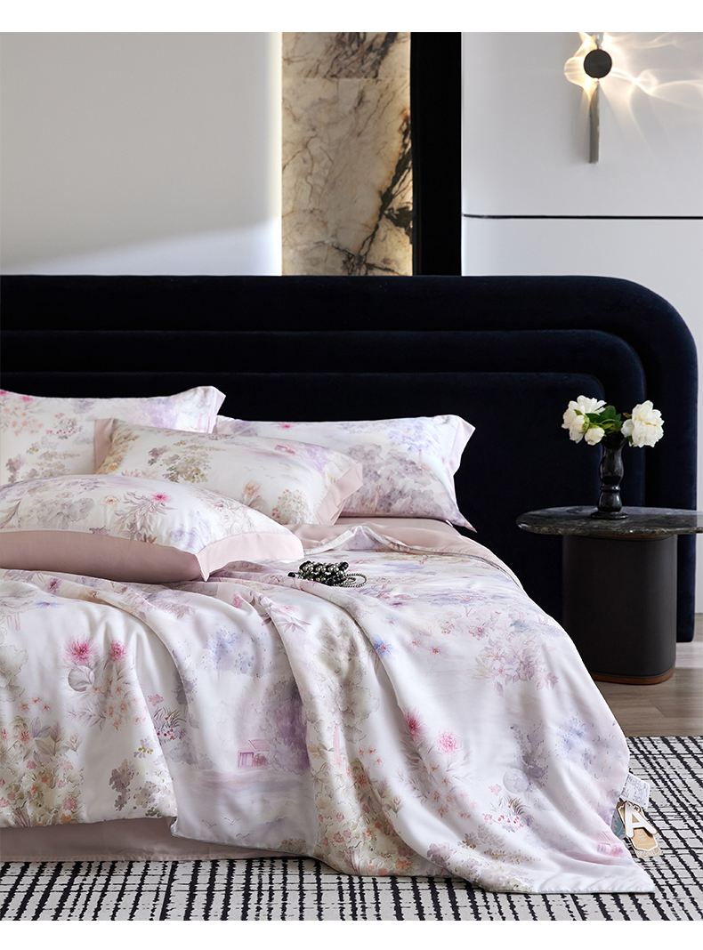 • 91家纺网 家纺一手货源 找家纺 (总)慕梵家居 2026春夏新款100%莱赛尔天丝夏被空调被夏凉被四件套,春溢然,赫扬,花絮蔓,花颜外,卉颜,经典灰,沐初,念池花粉,清枝雅絮,诗序,雾蝶花,悠然绿,早春的树-绿,早春的树-紫,珍珠腮红