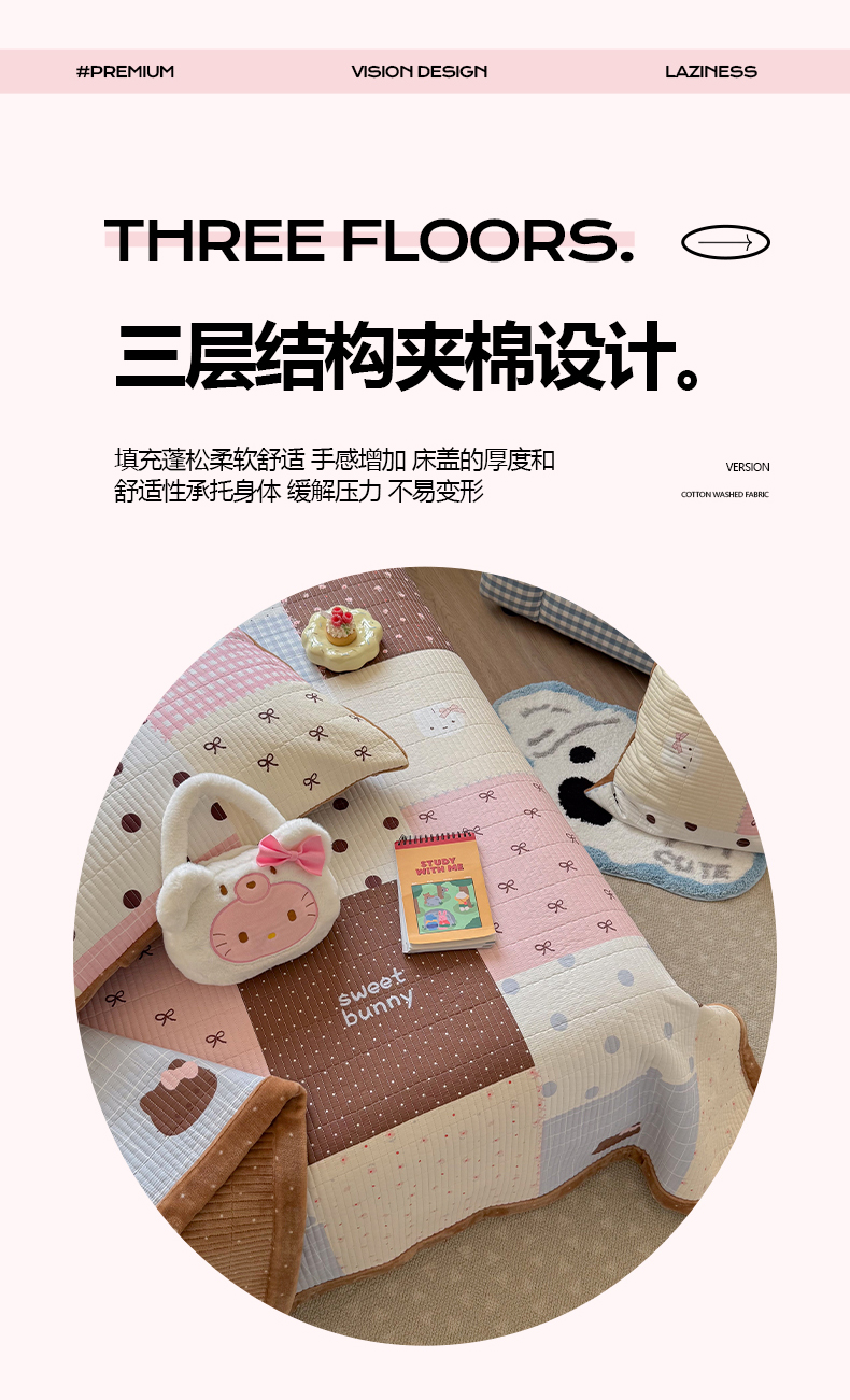 商品名称:暖生活 2026新款a版全棉水洗棉b版230g牛奶绒印花床盖单品床盖单件三件套 红格凯蒂