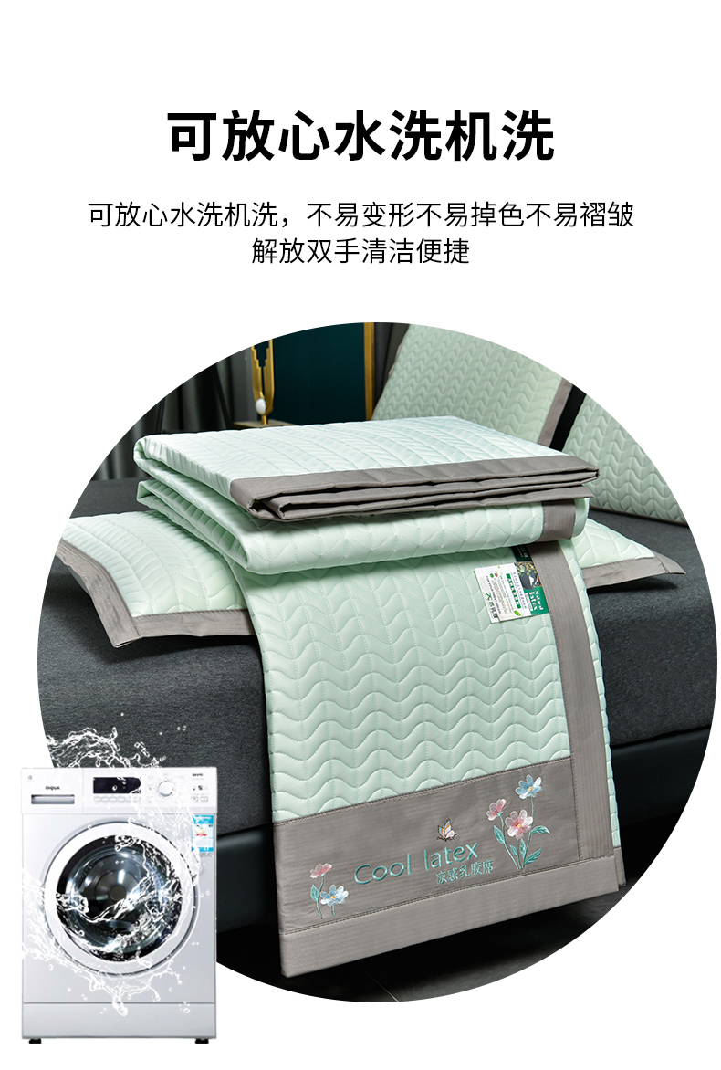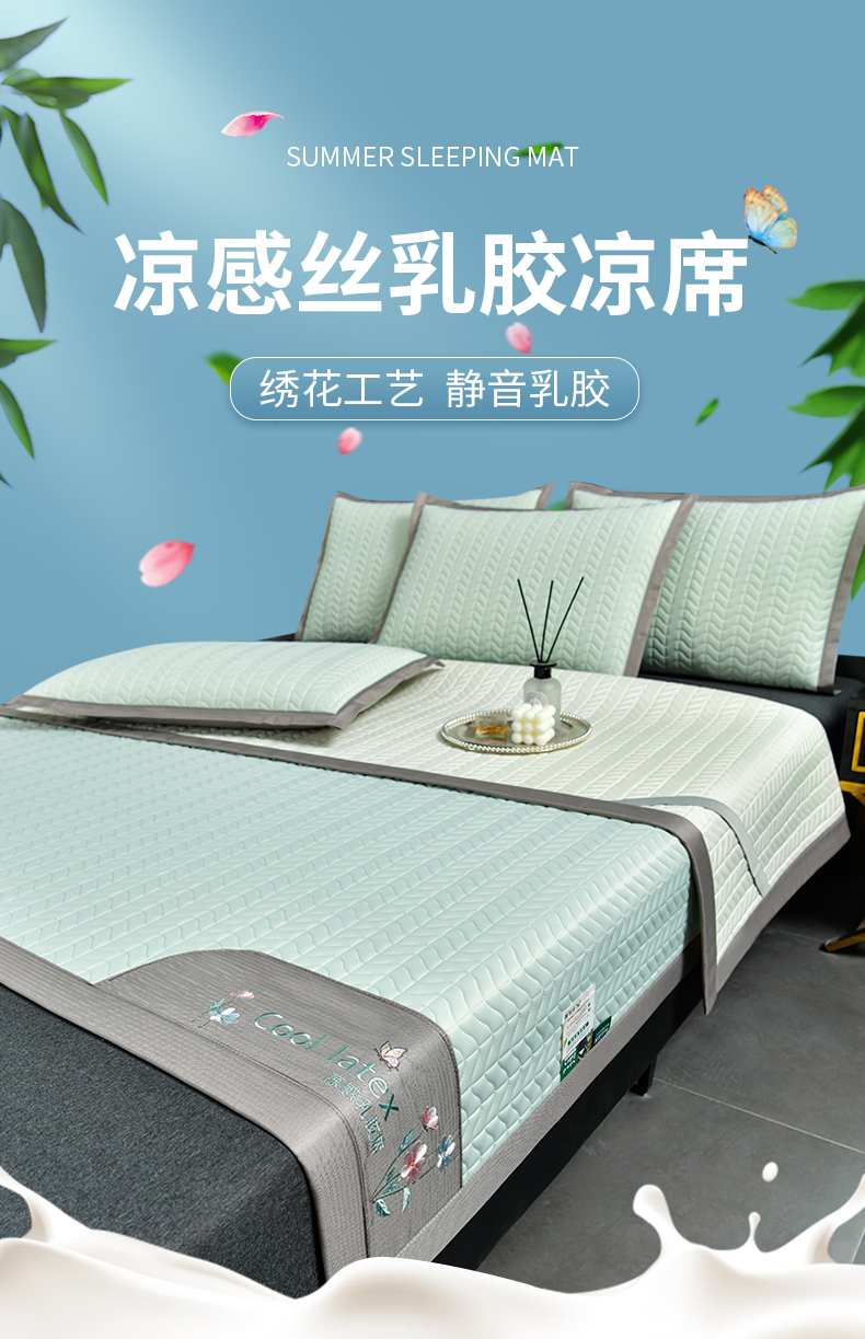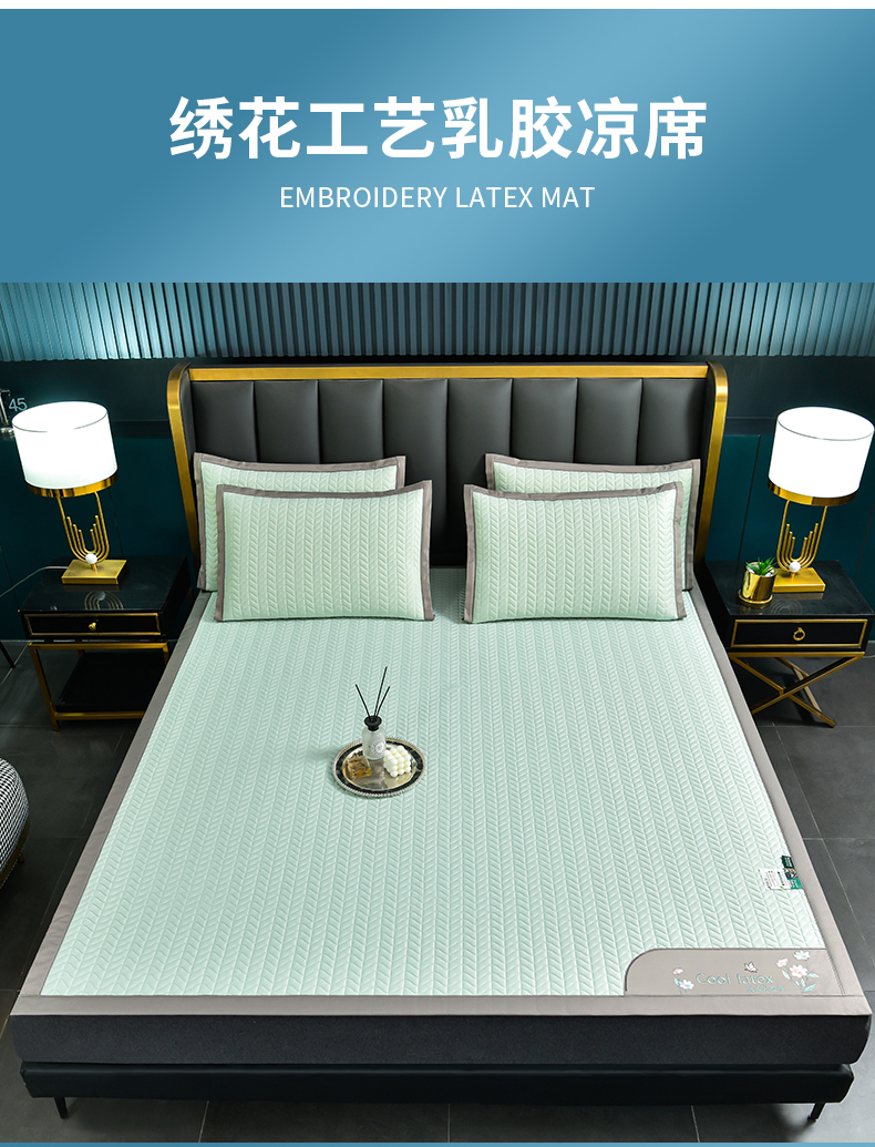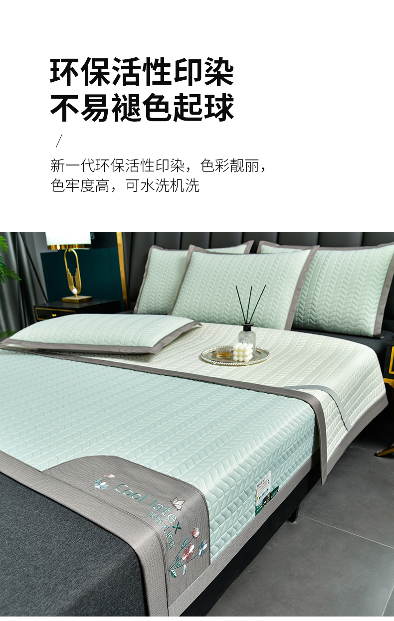 小牛席业 2026新款凉感乳胶席系列-凉席藤席冰藤席竹席空调席草席冰丝席豆豆席乳胶席三件套 凉感乳胶席(水绿)