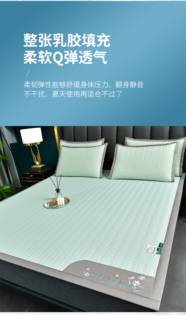 商品名称:小牛席业 2026新款凉感乳胶席系列-凉席藤席冰藤席竹席空调席草席冰丝席豆豆席乳胶席三件套 凉感乳胶席(水绿)